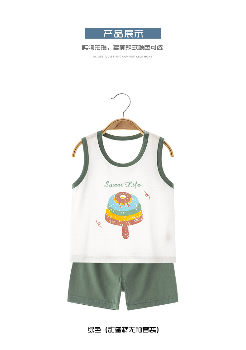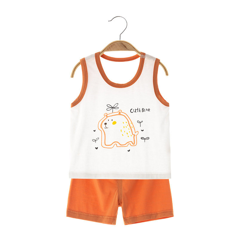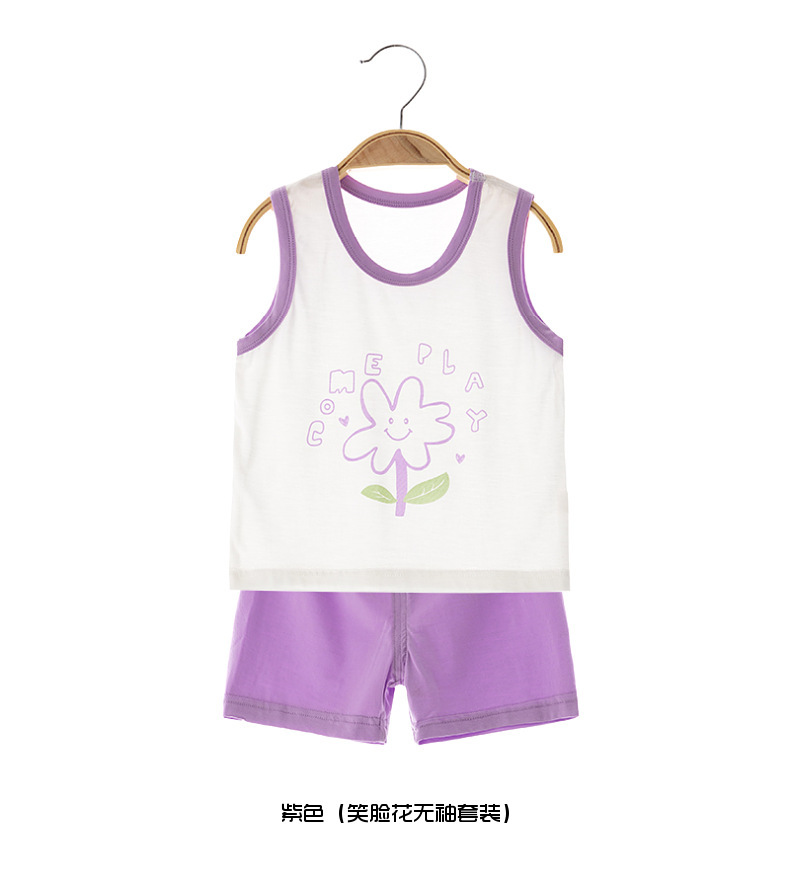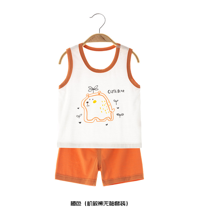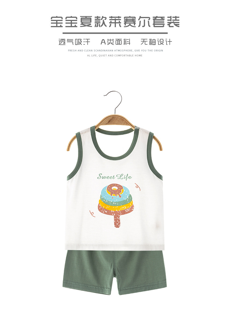 아기 얇은 조끼 세트 초박형 Lyocell 파자마 여름 어린이 반바지 느슨한 아기 에어컨 스님 세트스토어 가기