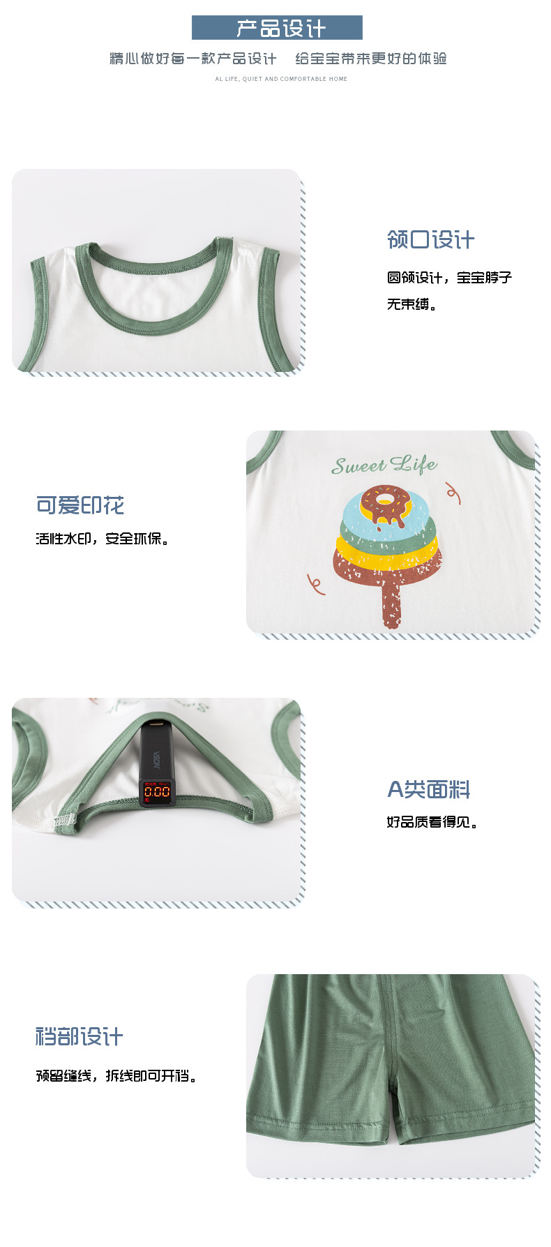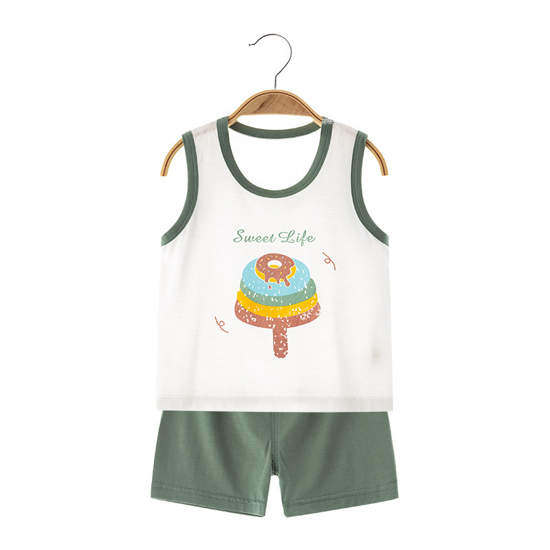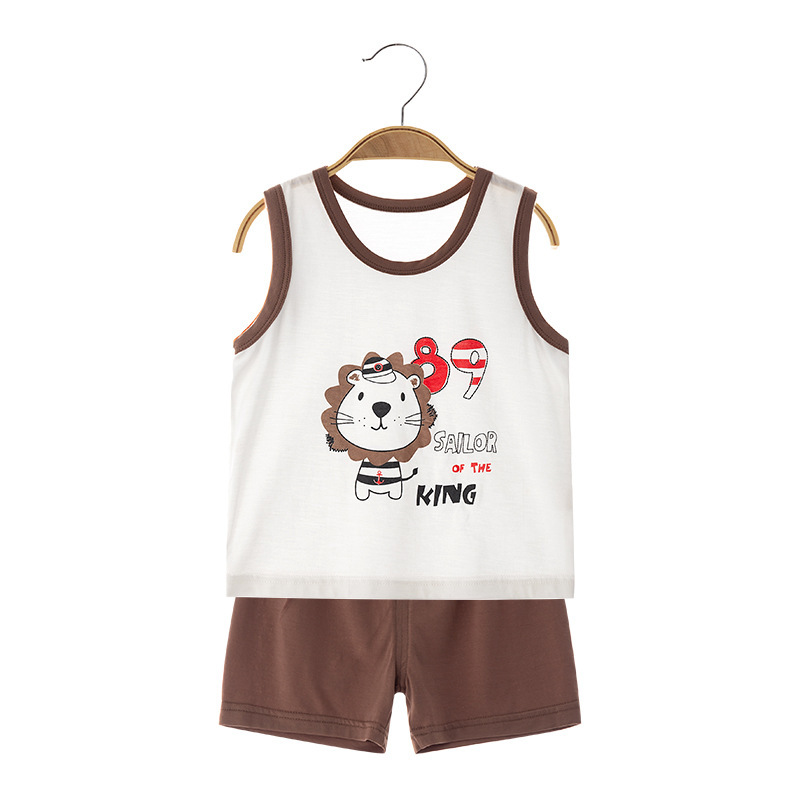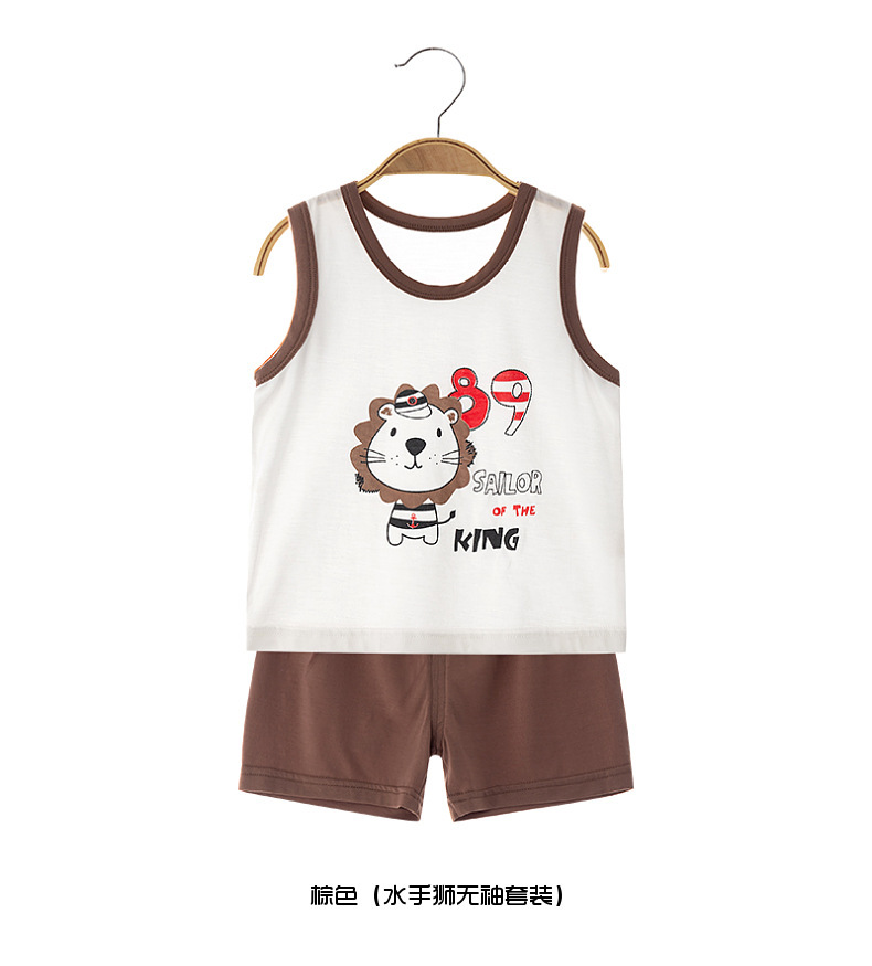 아기 얇은 조끼 세트 초박형 Lyocell 파자마 여름 어린이 반바지 느슨한 아기 에어컨 스님 세트스토어 가기