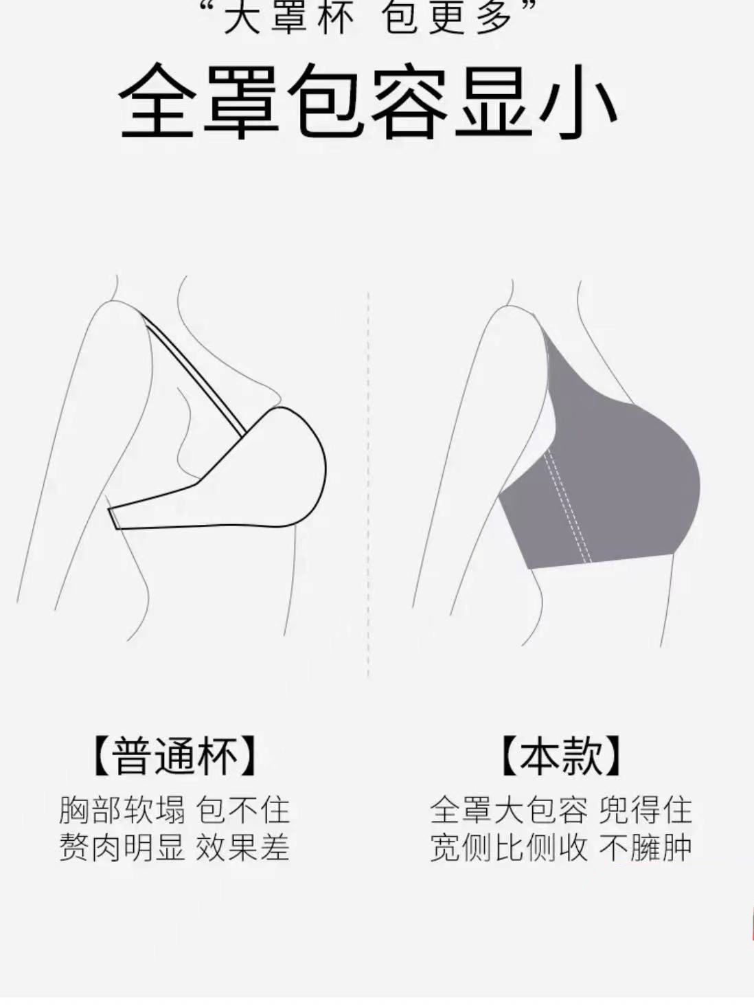 비 추적 속옷 여성의 큰 가슴은 작은 아름다운 백 풀 컵 얇은 브래지어 안티 처짐 플러스 사이즈 브라스토어 가기