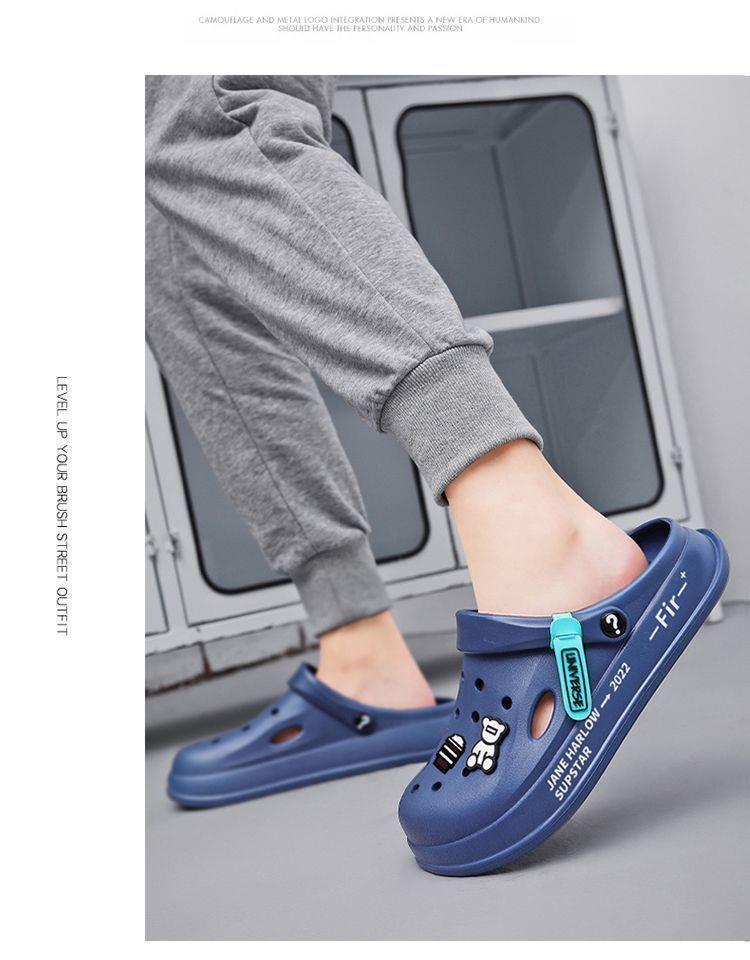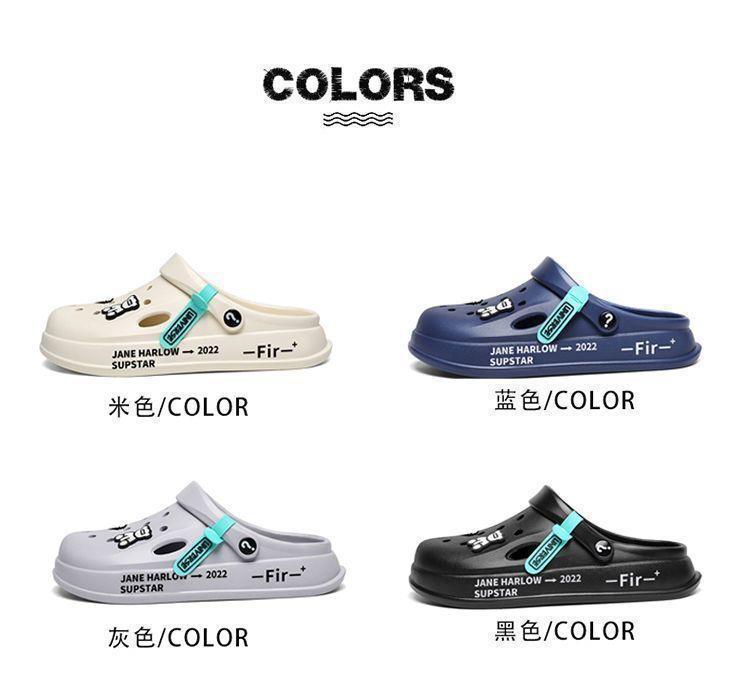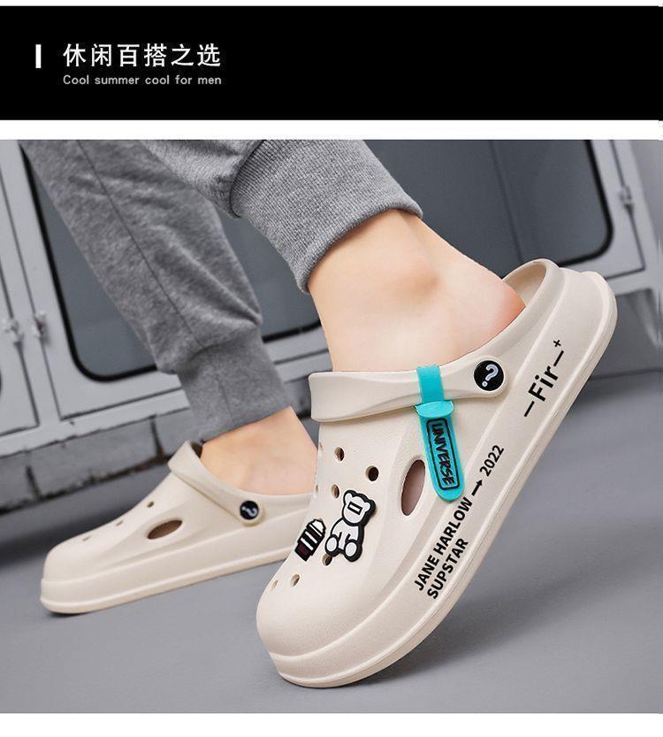슬리퍼 하프 팩, 남성용 소프트 아우터 비치 미끄럼 방지 바오 터우 느낌 캐주얼 용 구멍이있는 쿨 투웨어 여름 신발