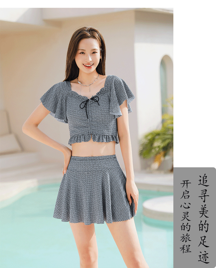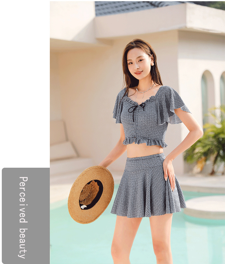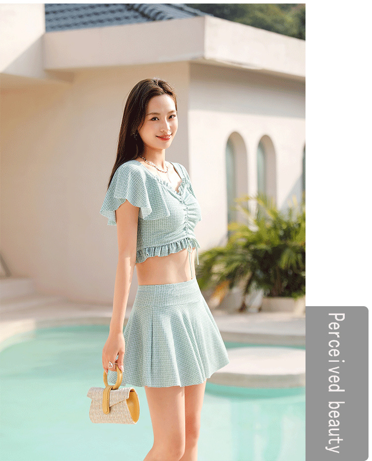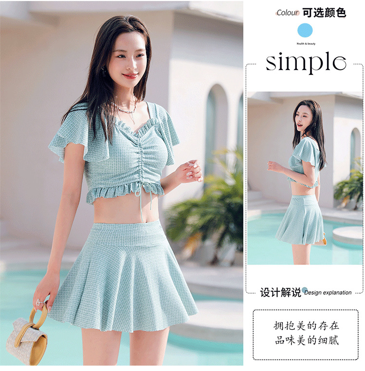 투피스 세트 보수적 슬리밍 2024 새로운 수영복 여성 분할 배꼽 커버 섹시한 신선한 스타일 학생 온천 영원히스토어 가기