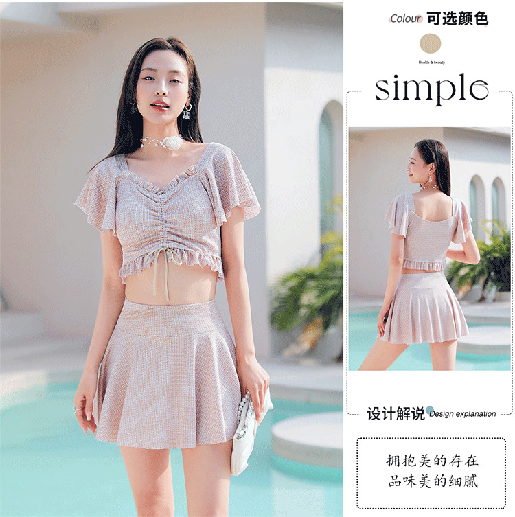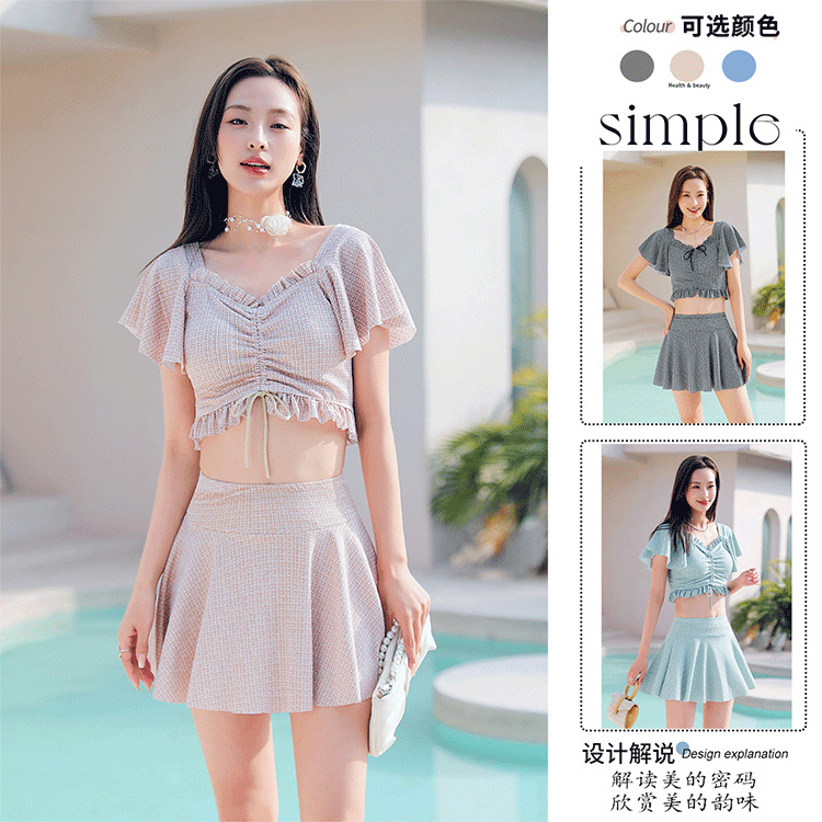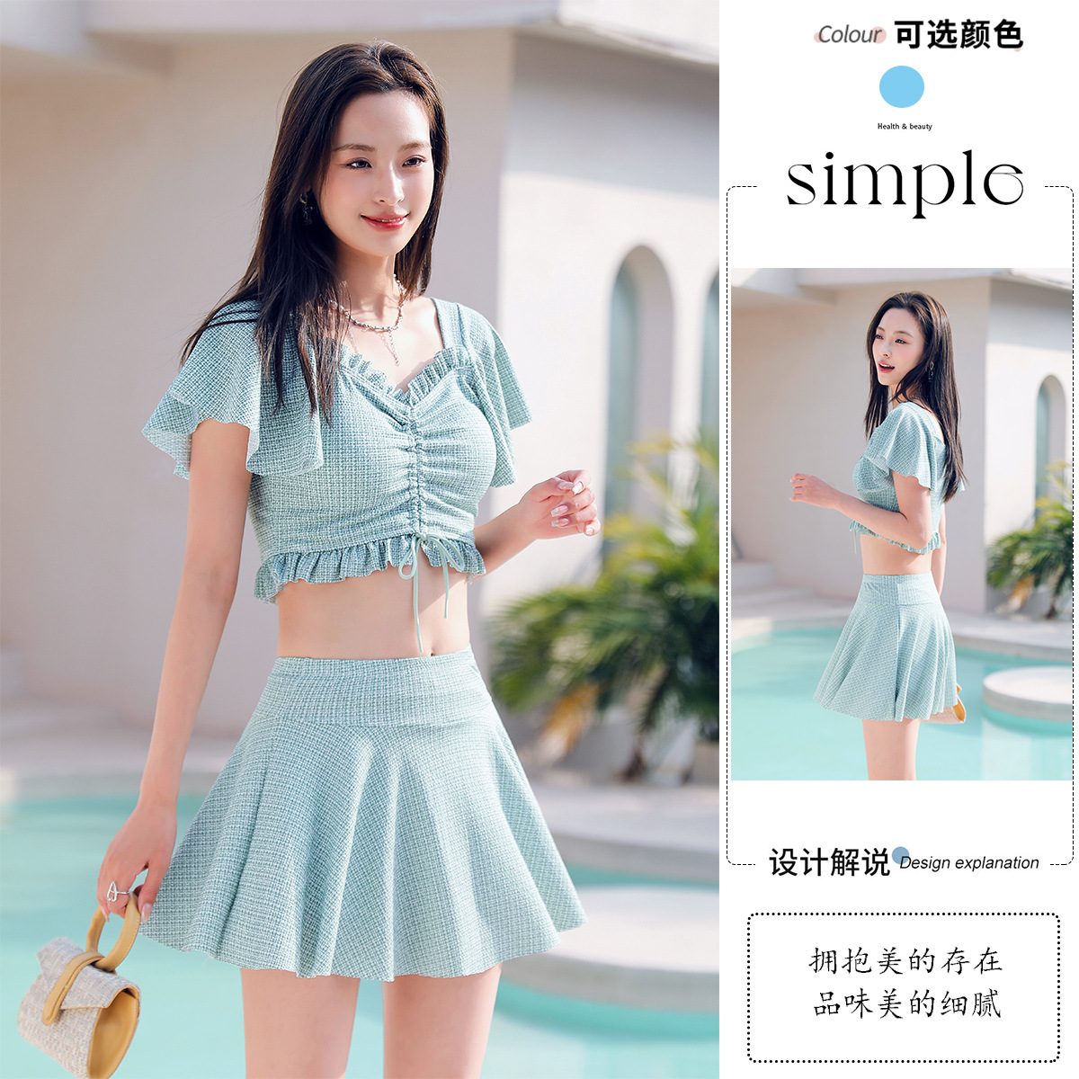 투피스 세트 보수적 슬리밍 2024 새로운 수영복 여성 분할 배꼽 커버 섹시한 신선한 스타일 학생 온천 영원히