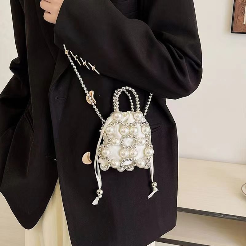 진주 미니 수제 가방 체인 짠 새로운 구슬 휴대용 패션 틈새 크로스 백 진주 가방