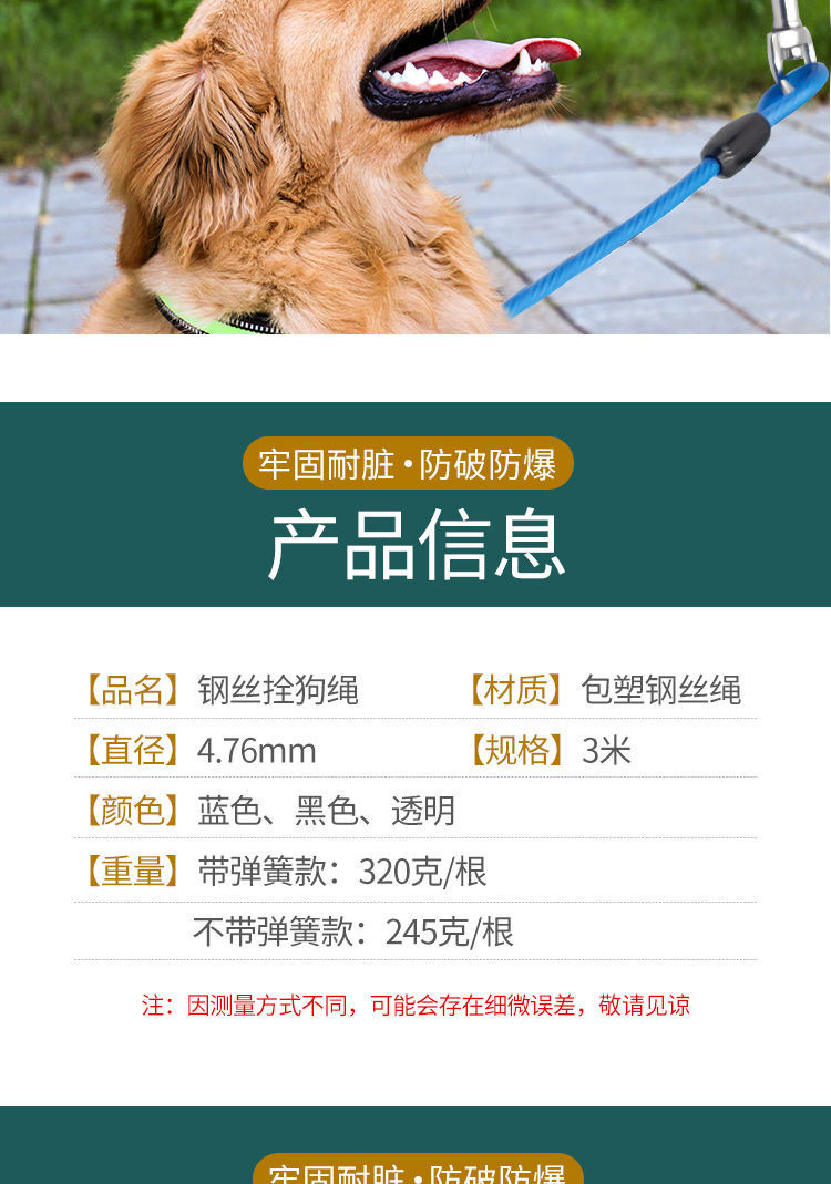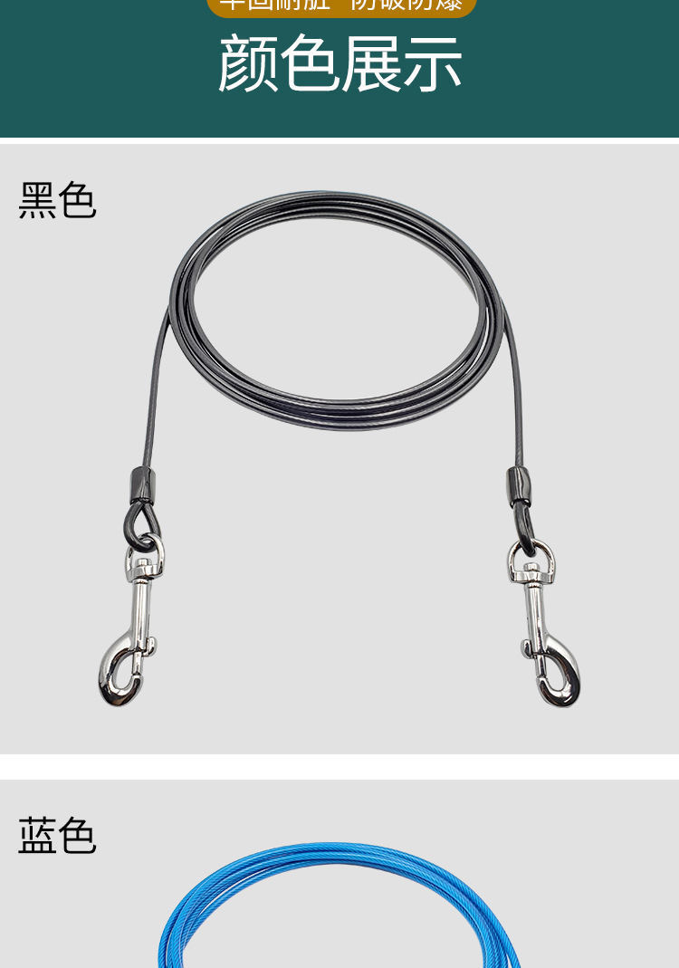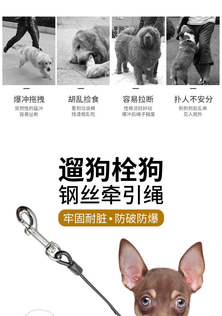 양조 개 견인 로프 3 미터 5 미터 10 미터 강철 와이어 로프 야외 개 체인 대담한 안티 바이트 더러운 개 로프