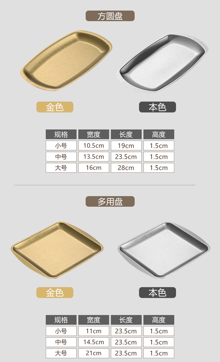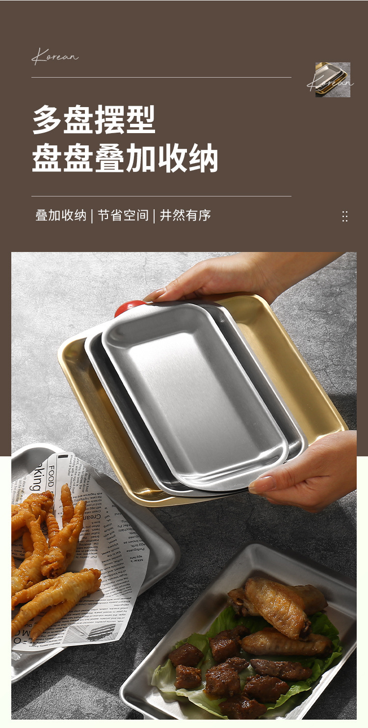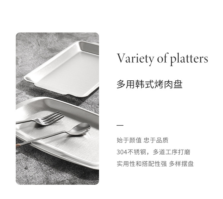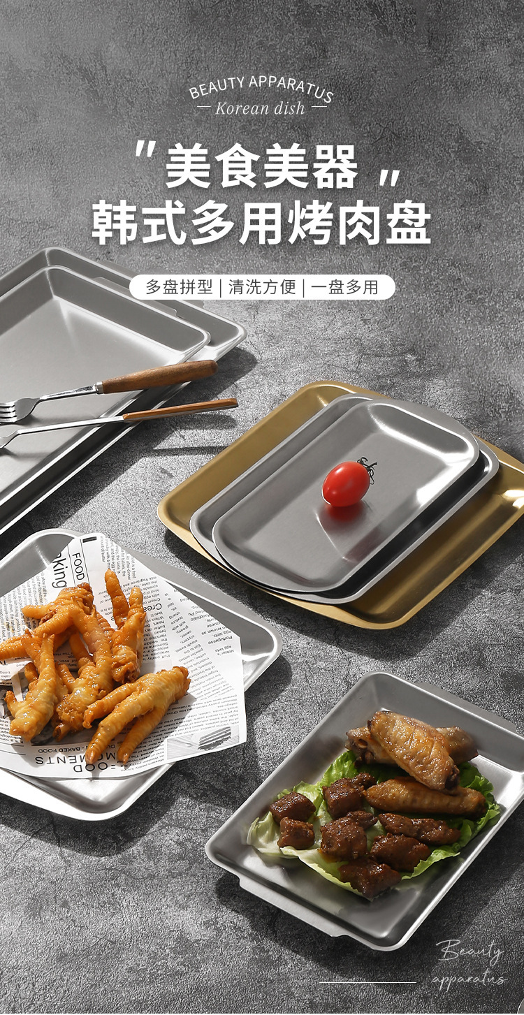 한국식 304 스테인레스 스틸 바비큐 플레이트 직사각형 플레이트 황금 트레이 장식품 바베큐 접시 식기 사각형 플레이트스토어 가기