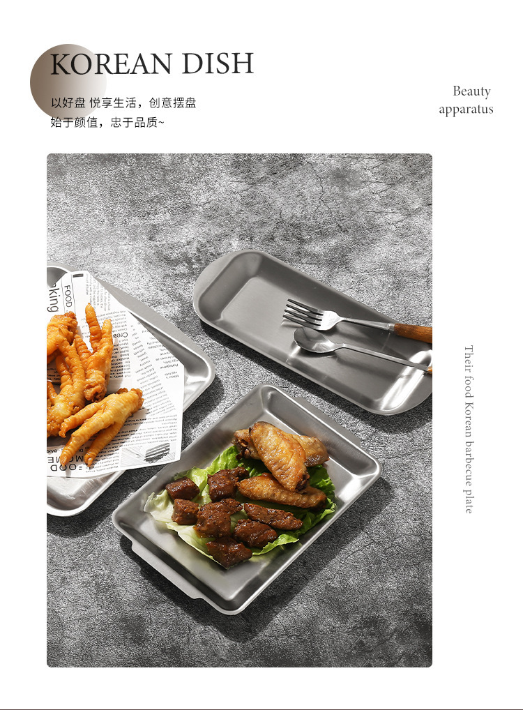 한국식 304 스테인레스 스틸 바비큐 플레이트 직사각형 플레이트 황금 트레이 장식품 바베큐 접시 식기 사각형 플레이트