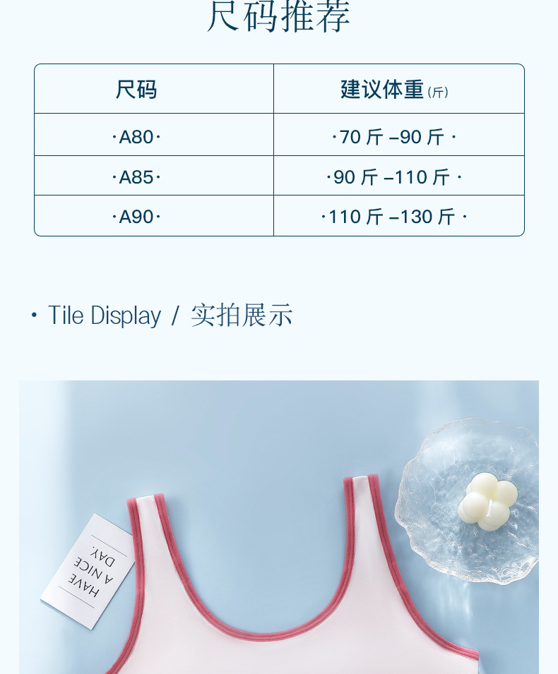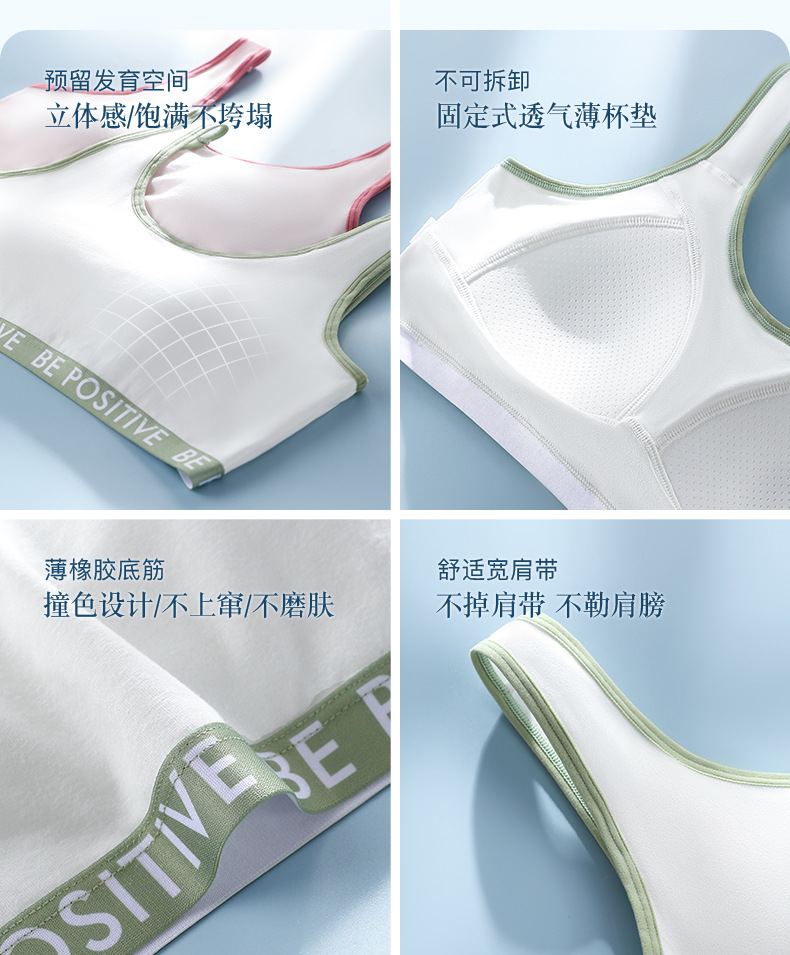여름 신제품 개발 여자 스포츠 속옷 중학생 고등학생 고정 컵 면화 여자 조끼 브래지어