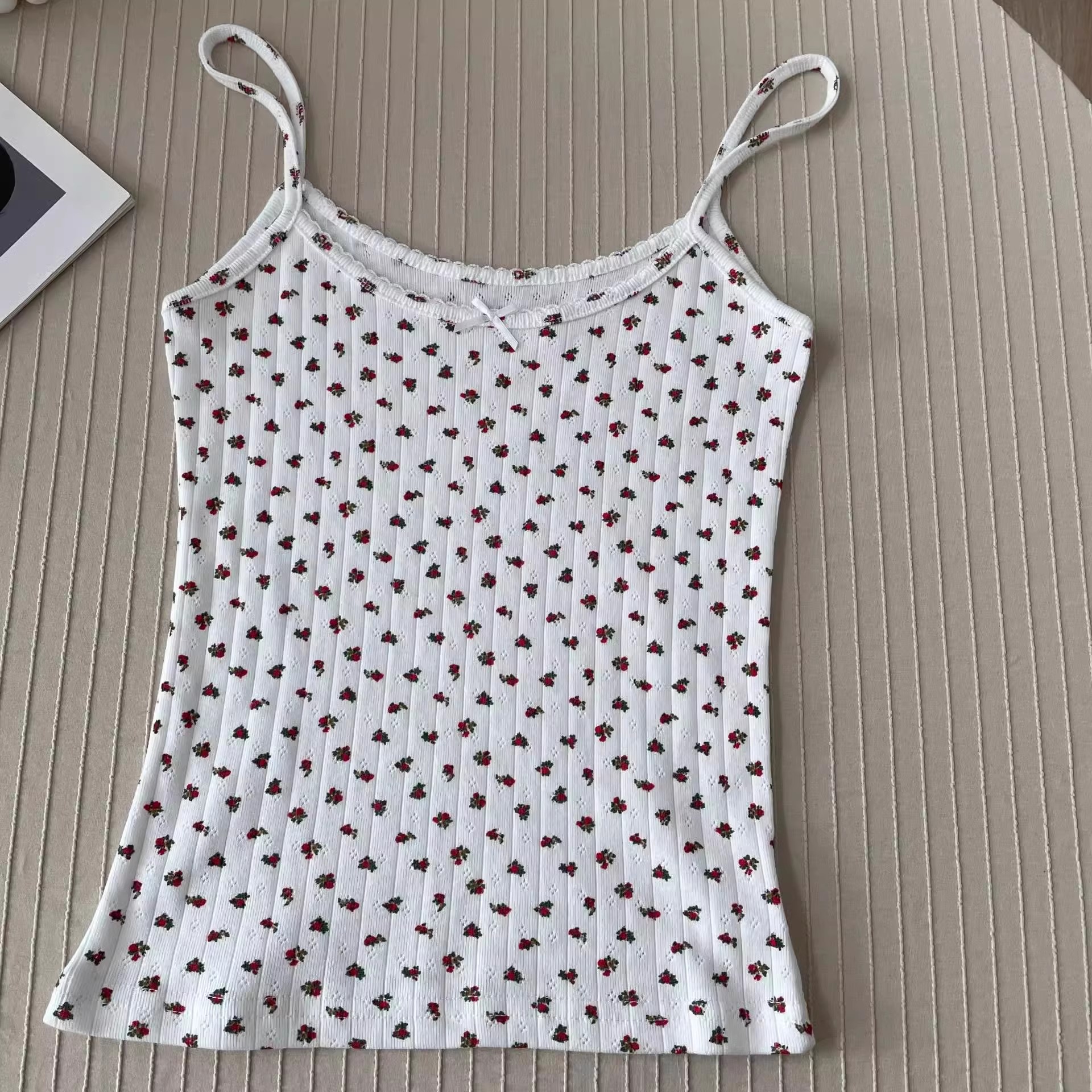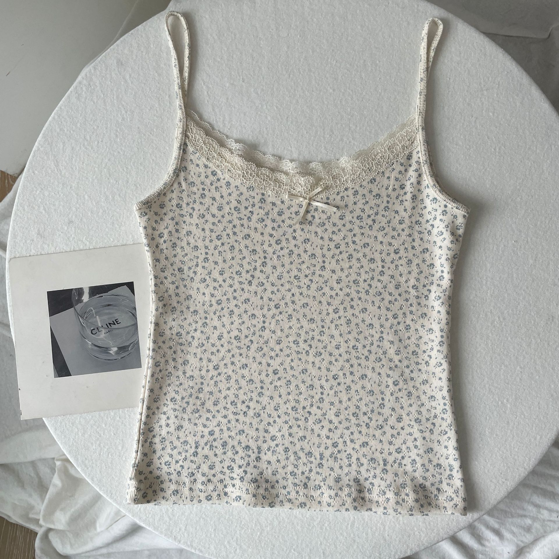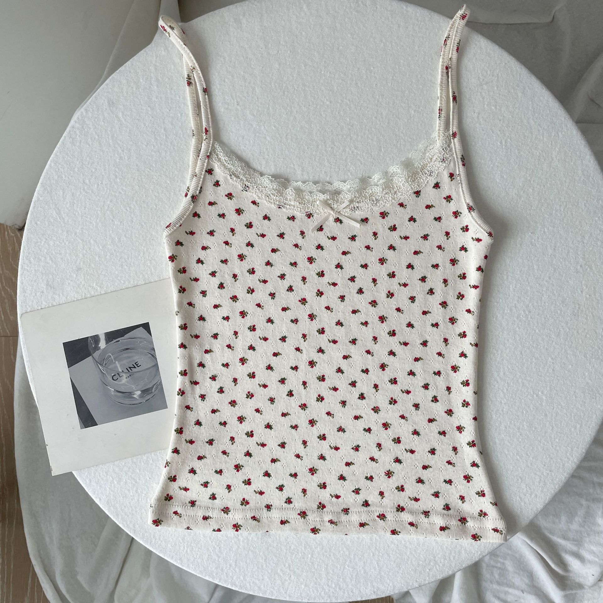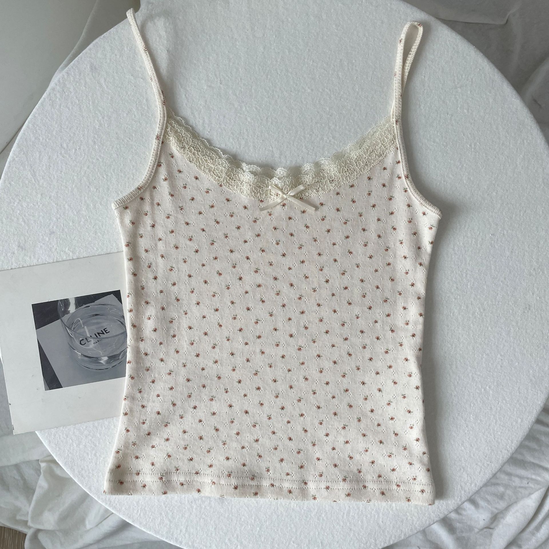 BM 여름 순수한 욕망 섹시한 꽃 레이스 보우 캐미솔 여성 패션 슬림 피트 이너 탑