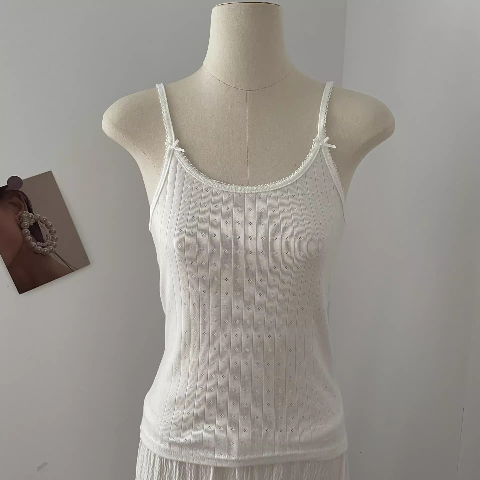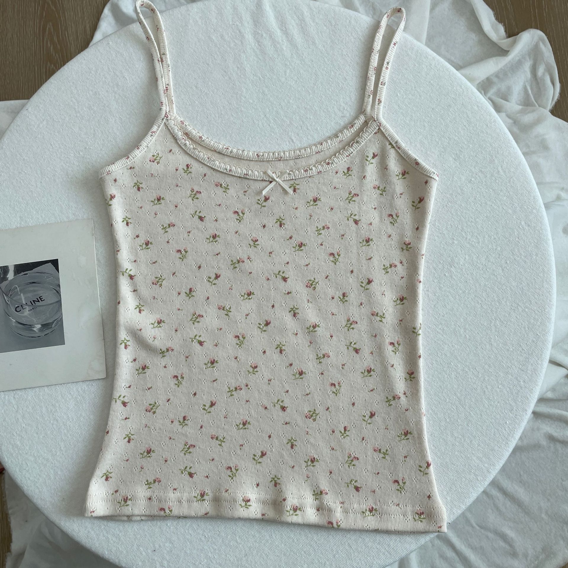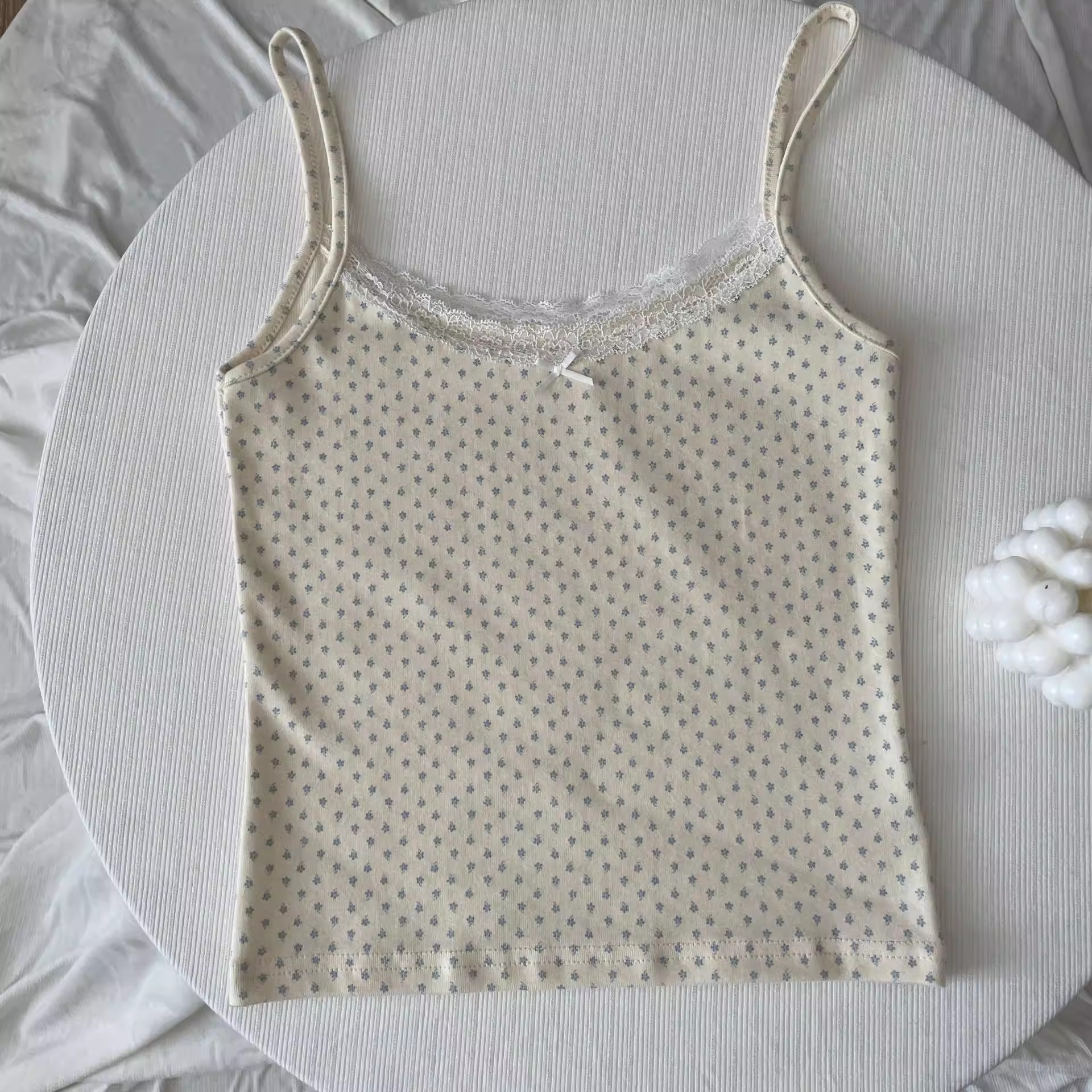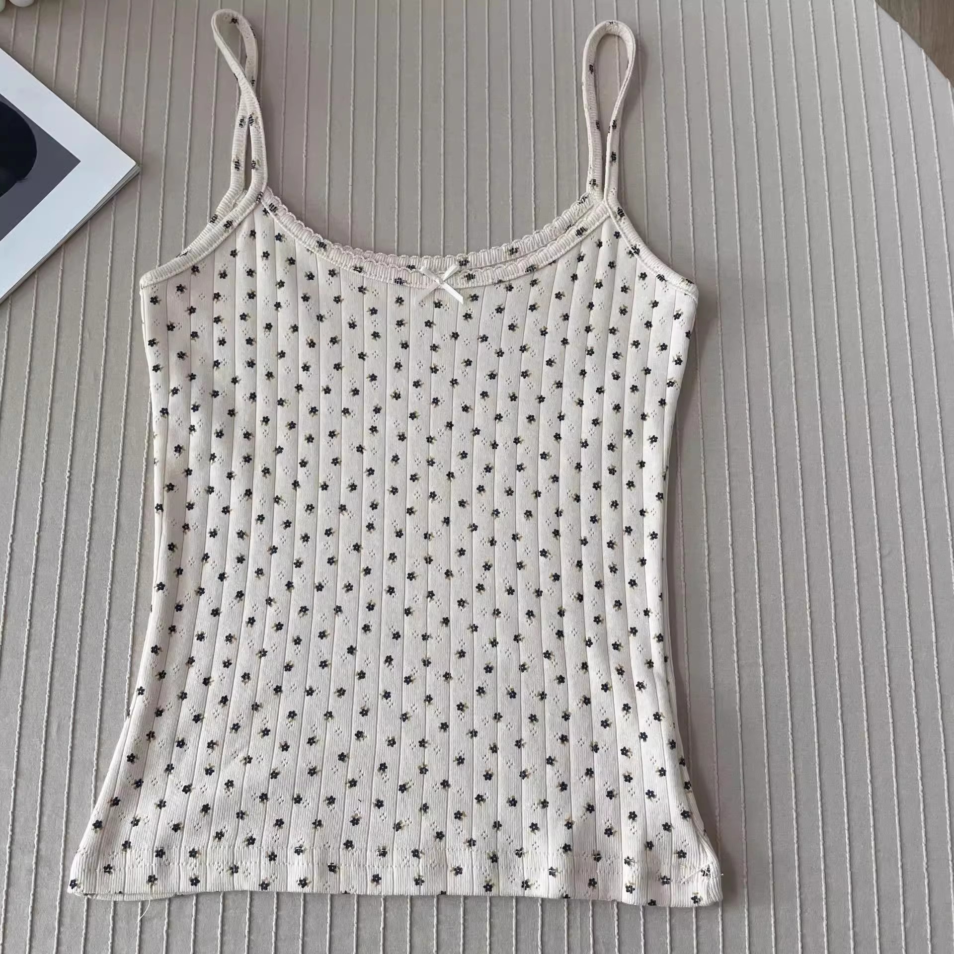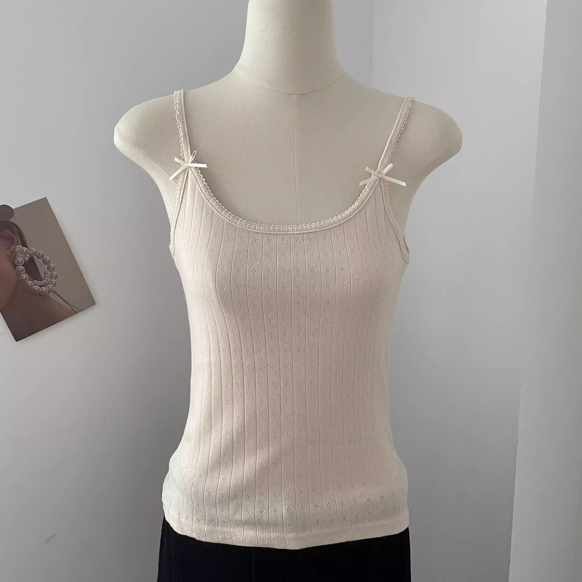 BM 여름 순수한 욕망 섹시한 꽃 레이스 보우 캐미솔 여성 패션 슬림 피트 이너 탑
