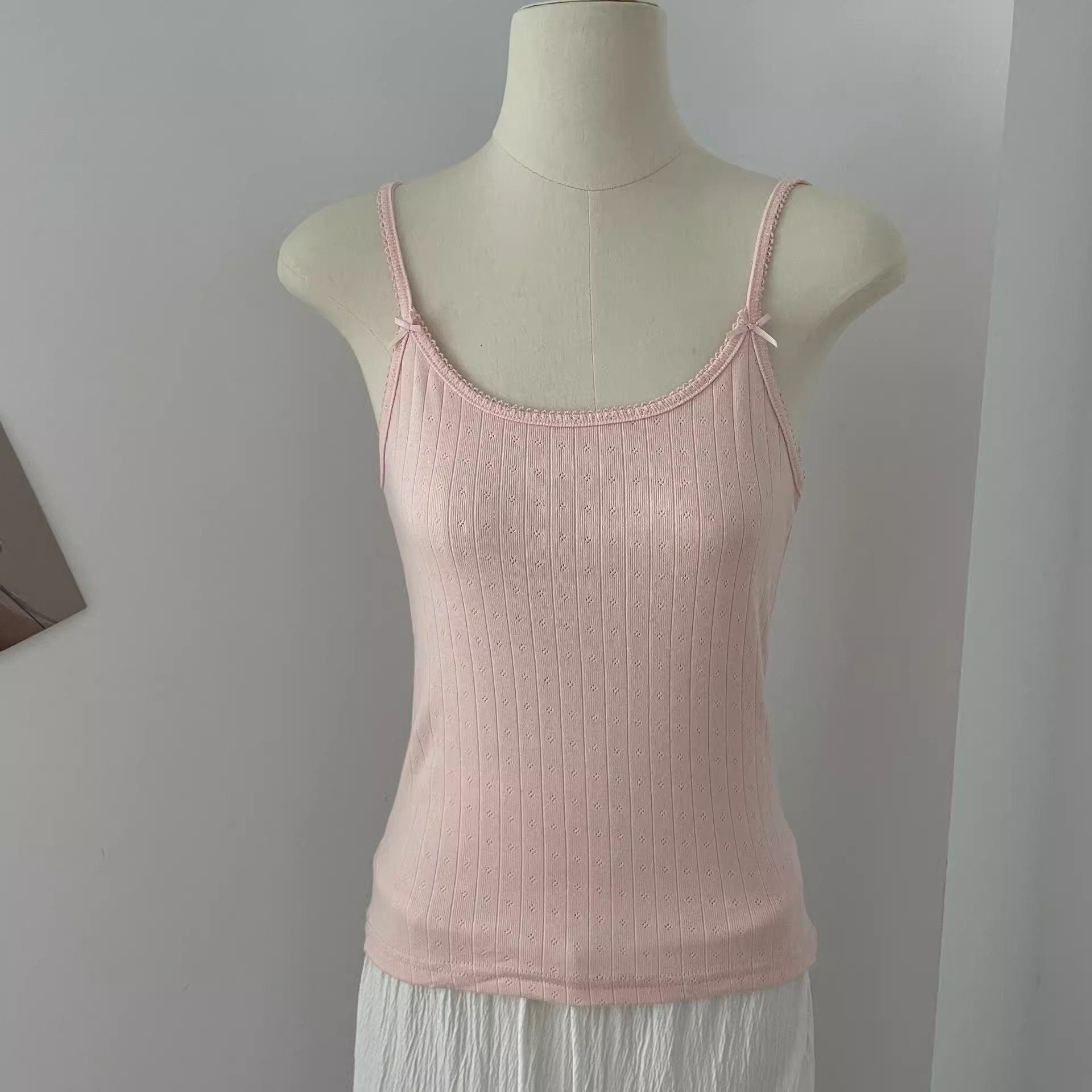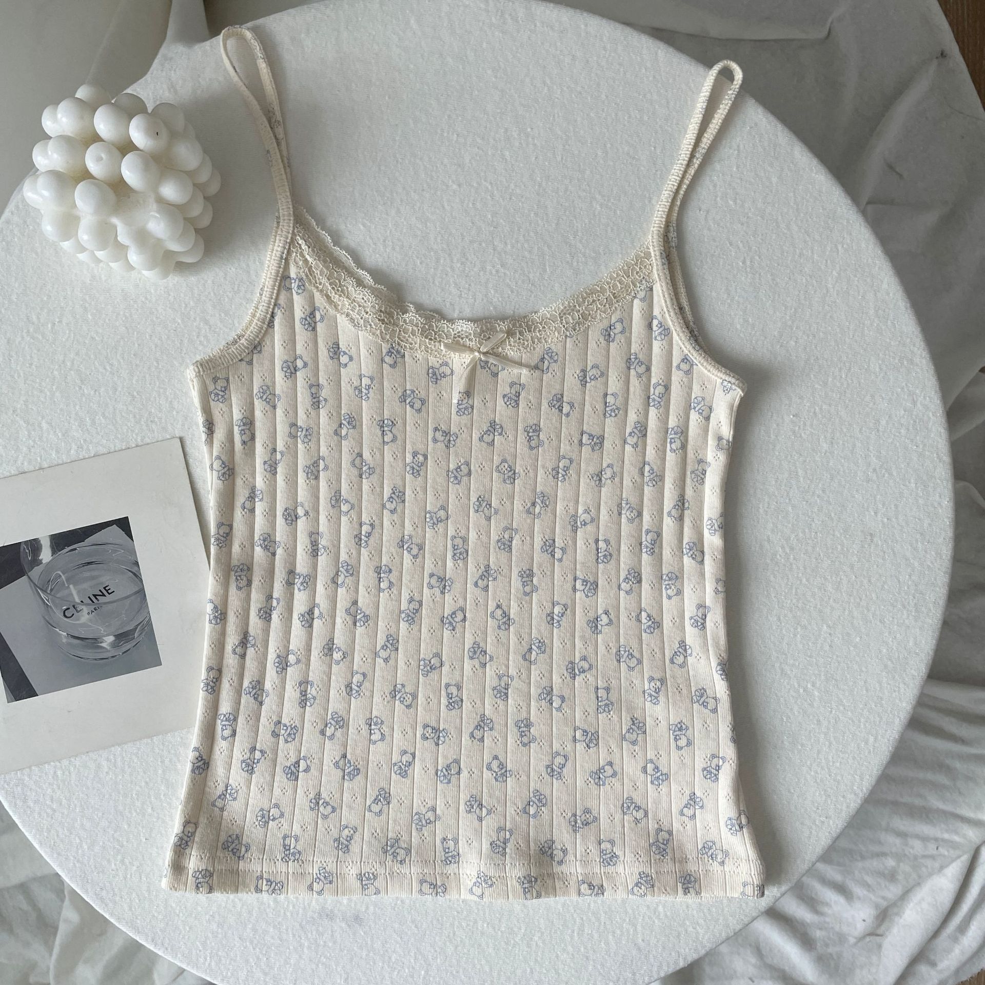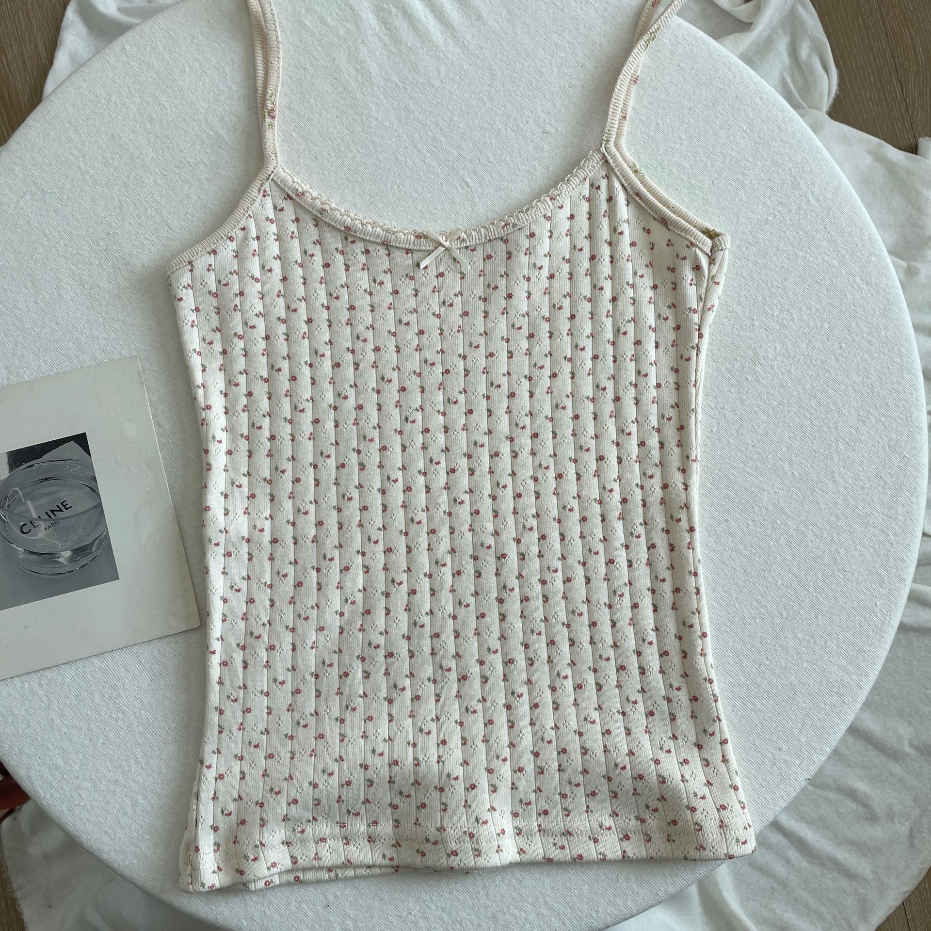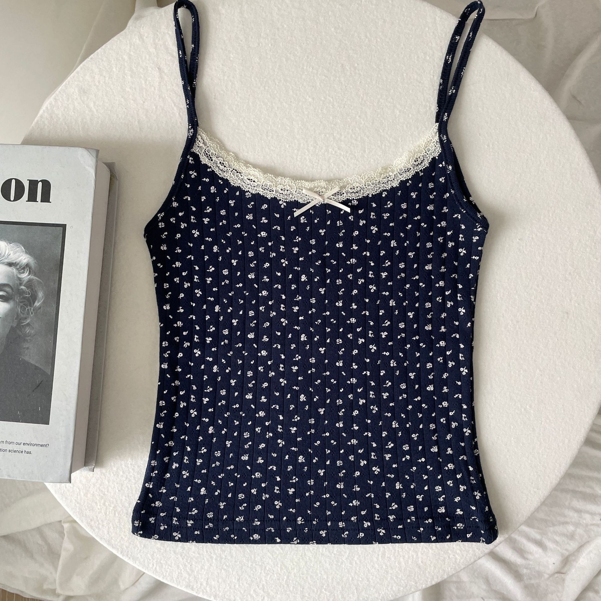 BM 여름 순수한 욕망 섹시한 꽃 레이스 보우 캐미솔 여성 패션 슬림 피트 이너 탑
