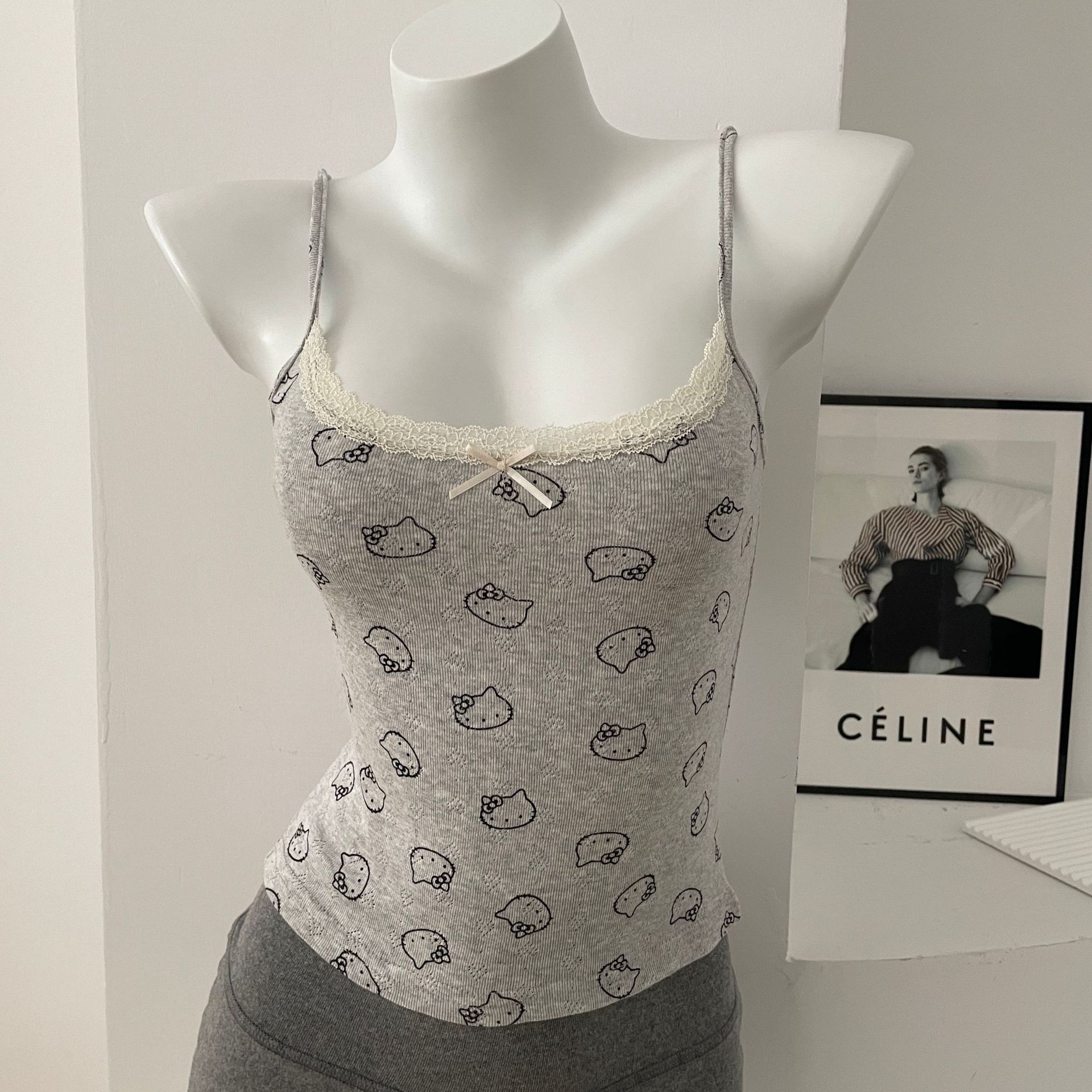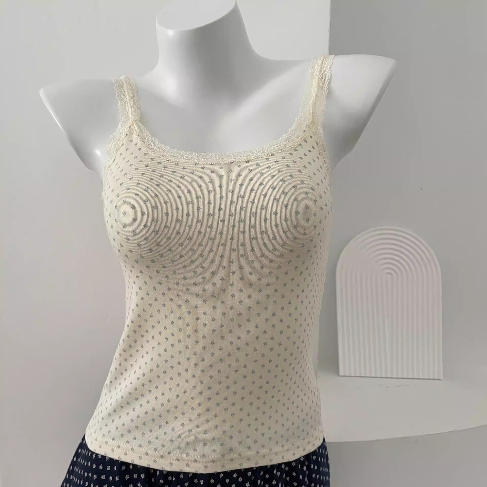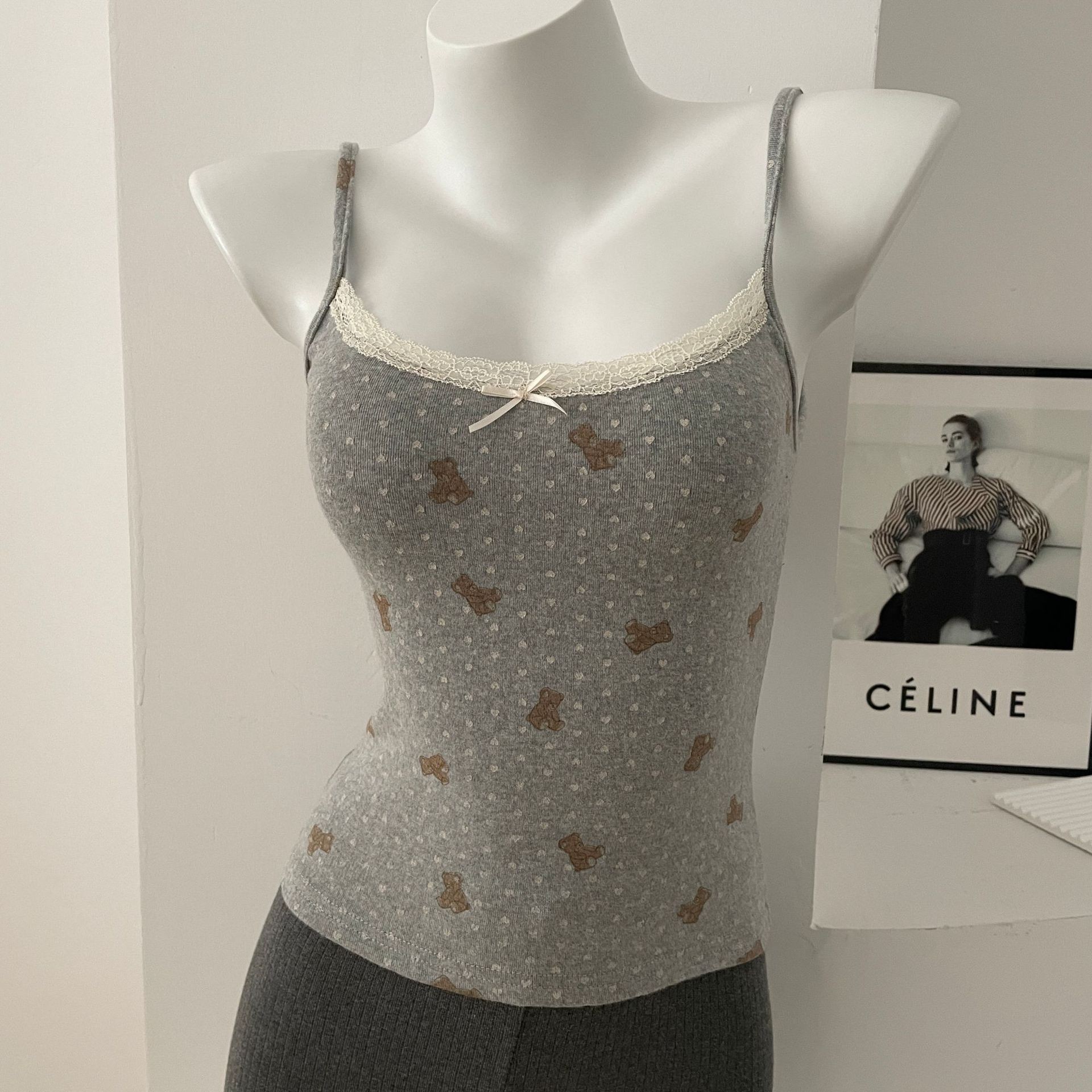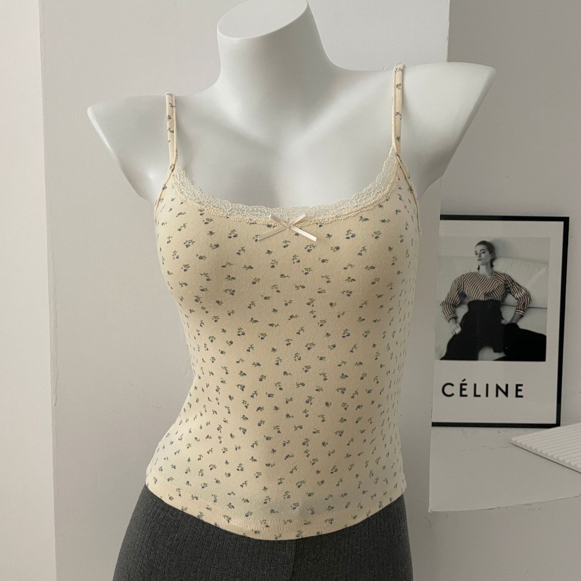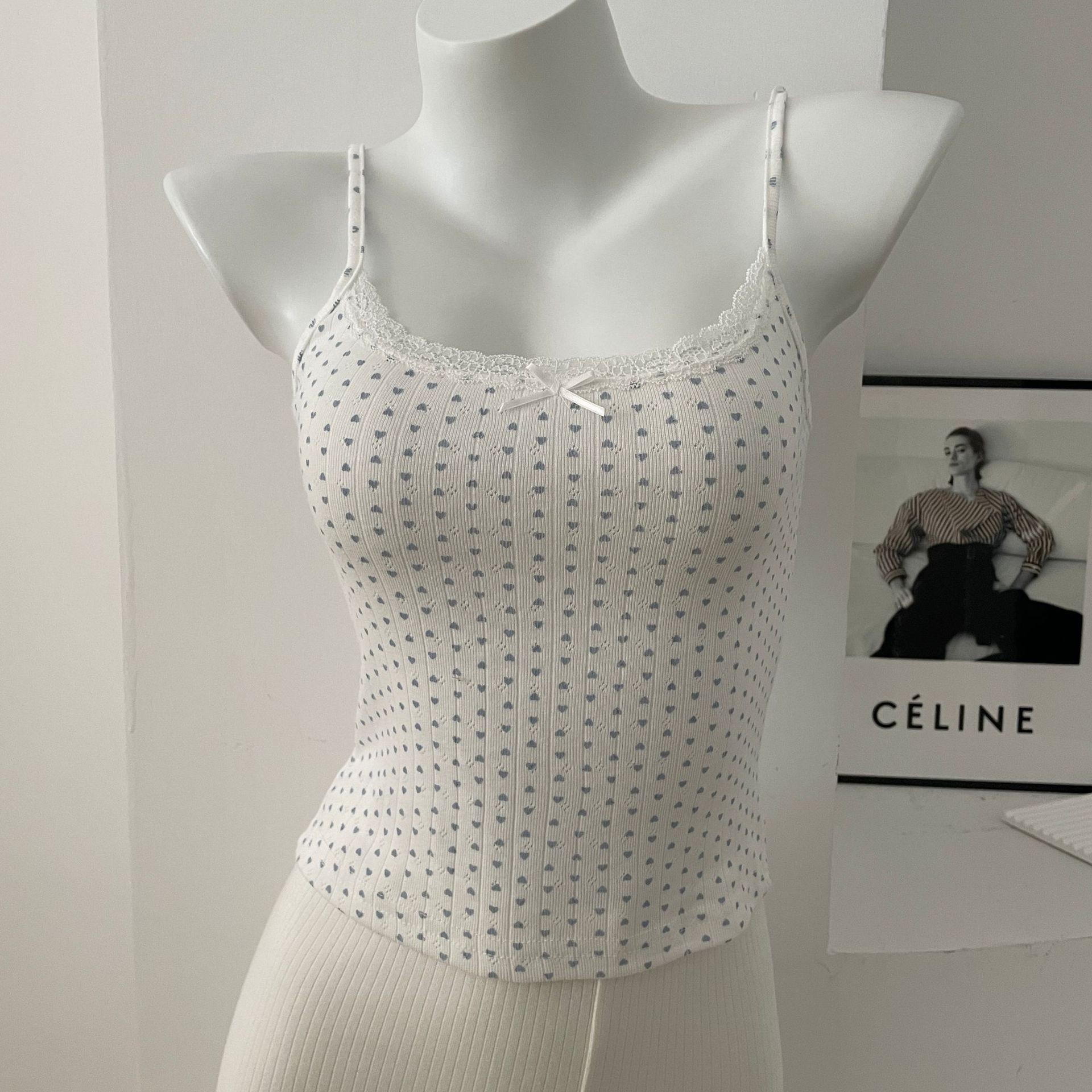 BM 여름 순수한 욕망 섹시한 꽃 레이스 보우 캐미솔 여성 패션 슬림 피트 이너 탑