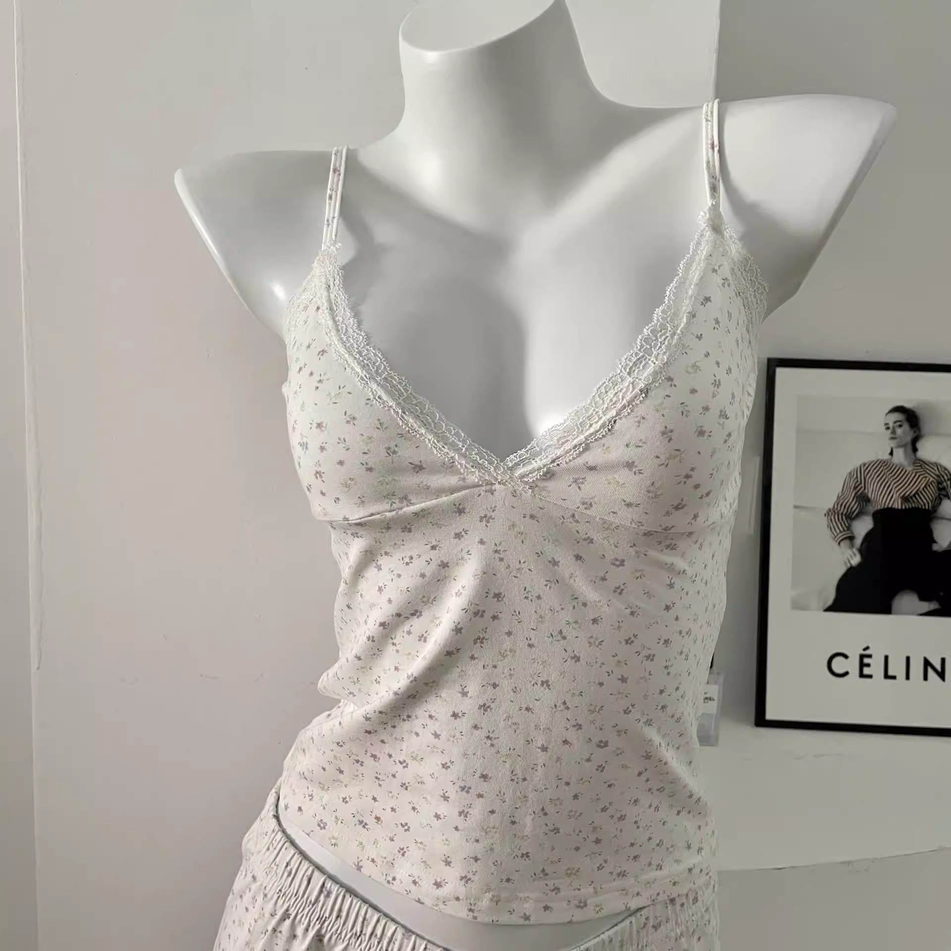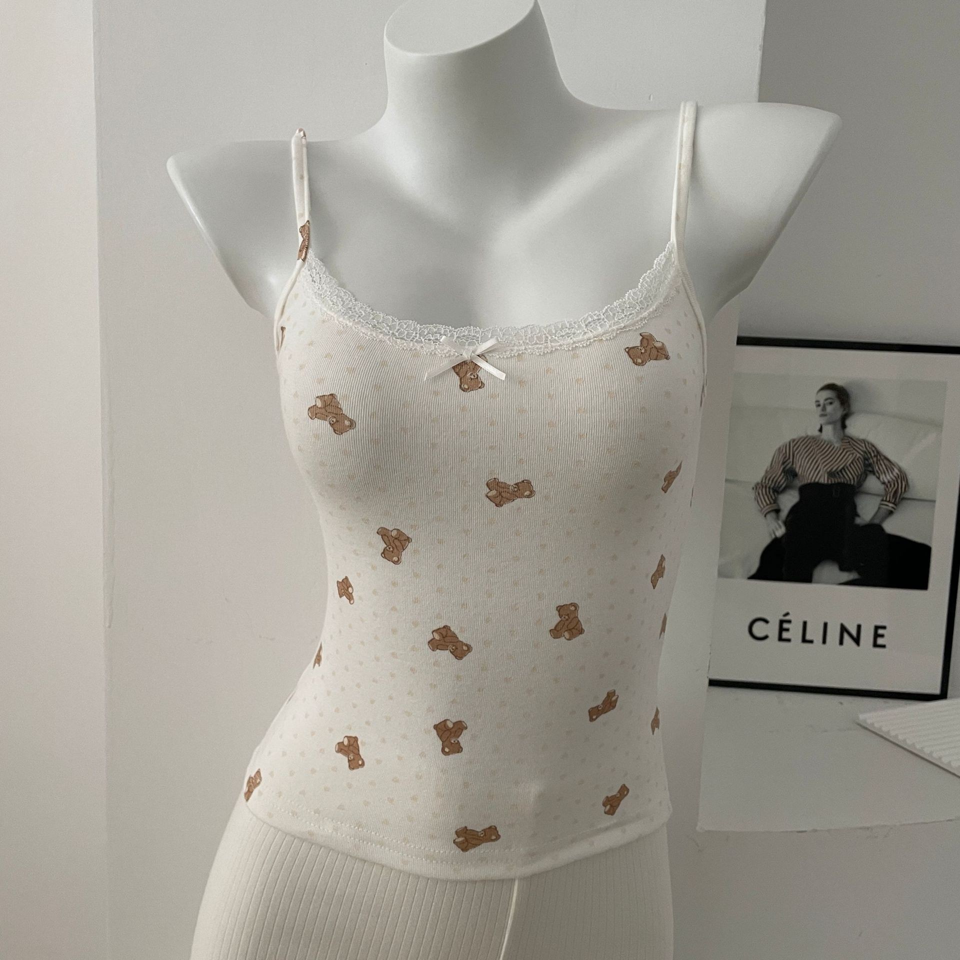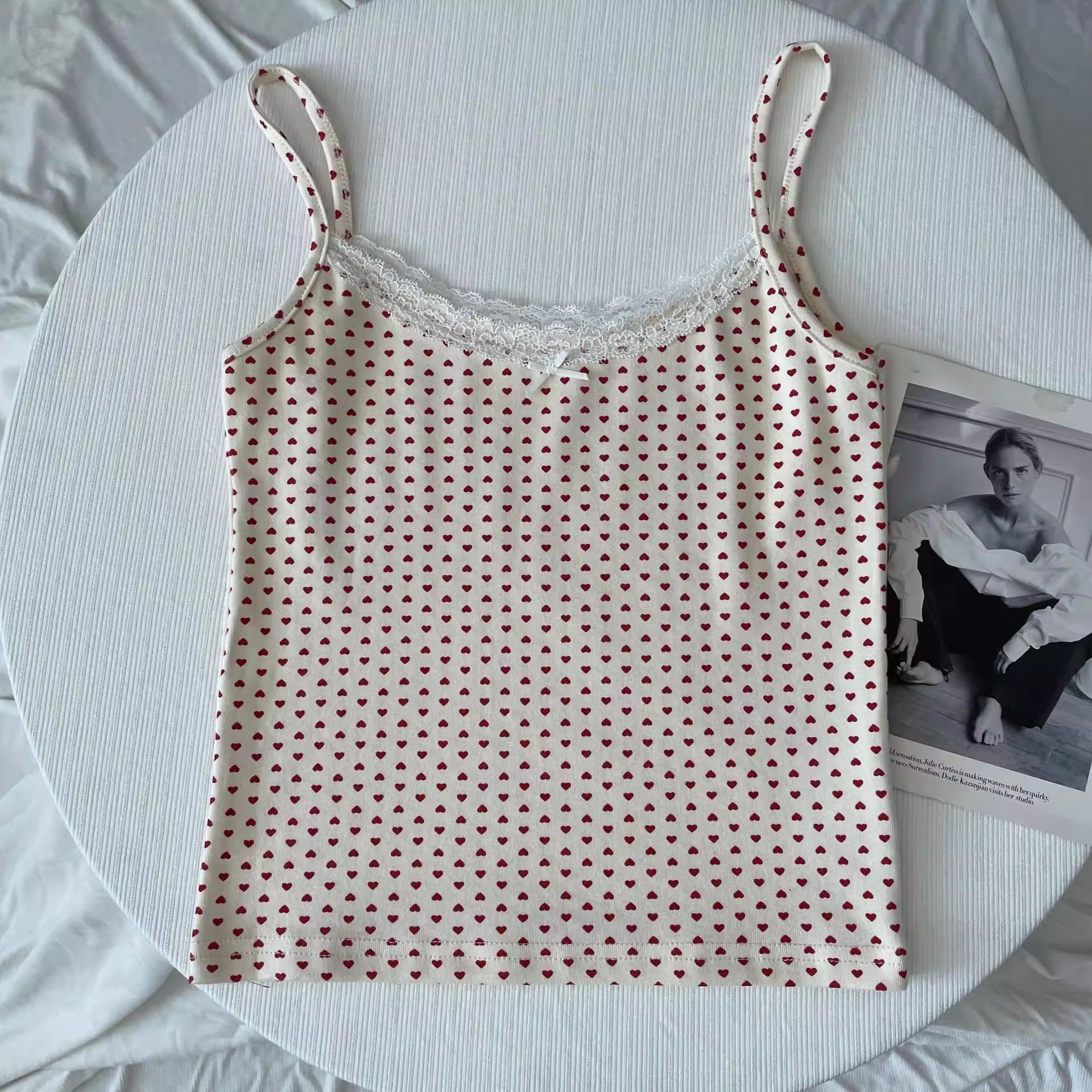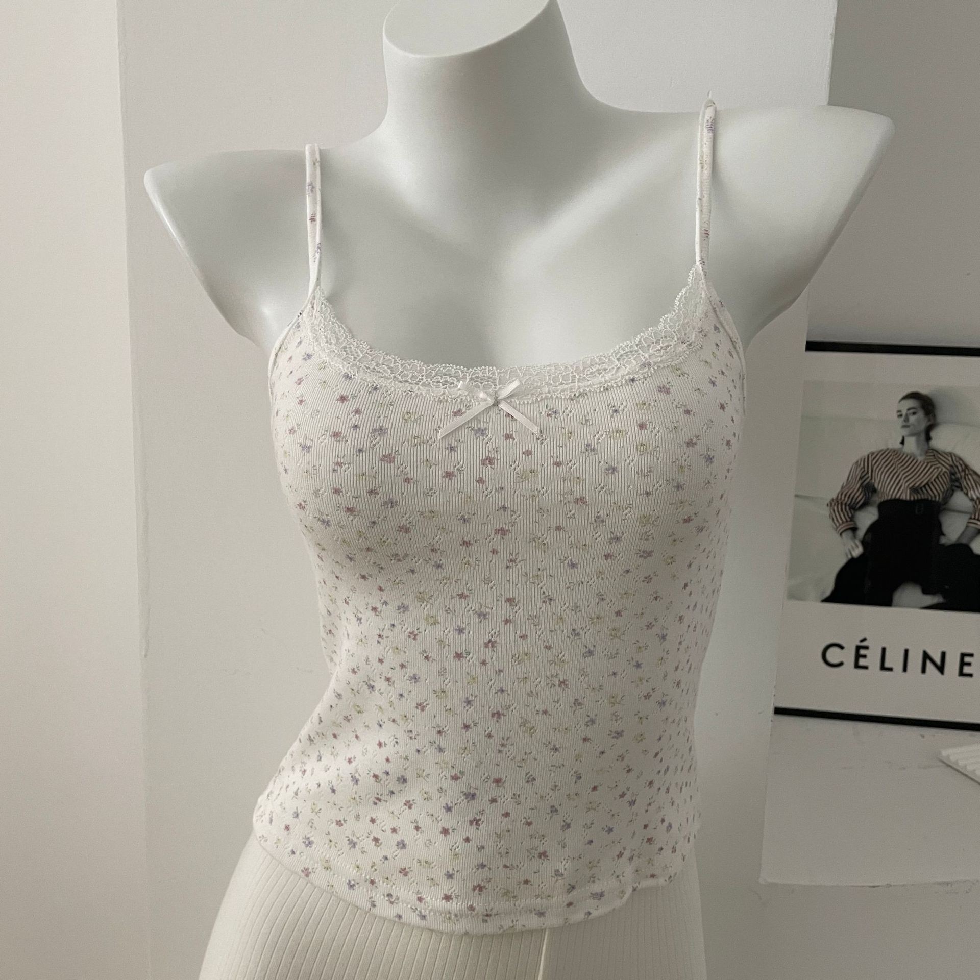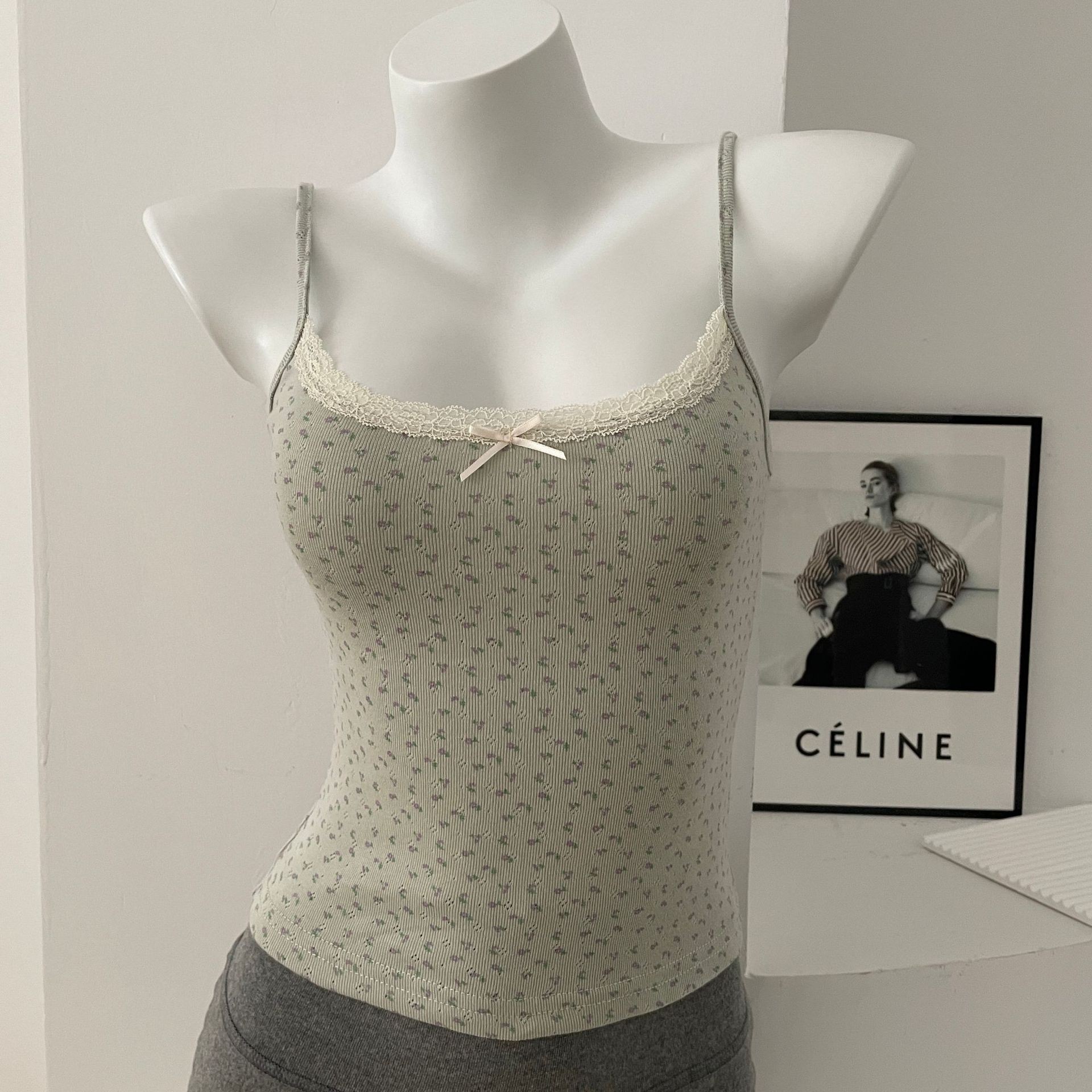 BM 여름 순수한 욕망 섹시한 꽃 레이스 보우 캐미솔 여성 패션 슬림 피트 이너 탑스토어 가기