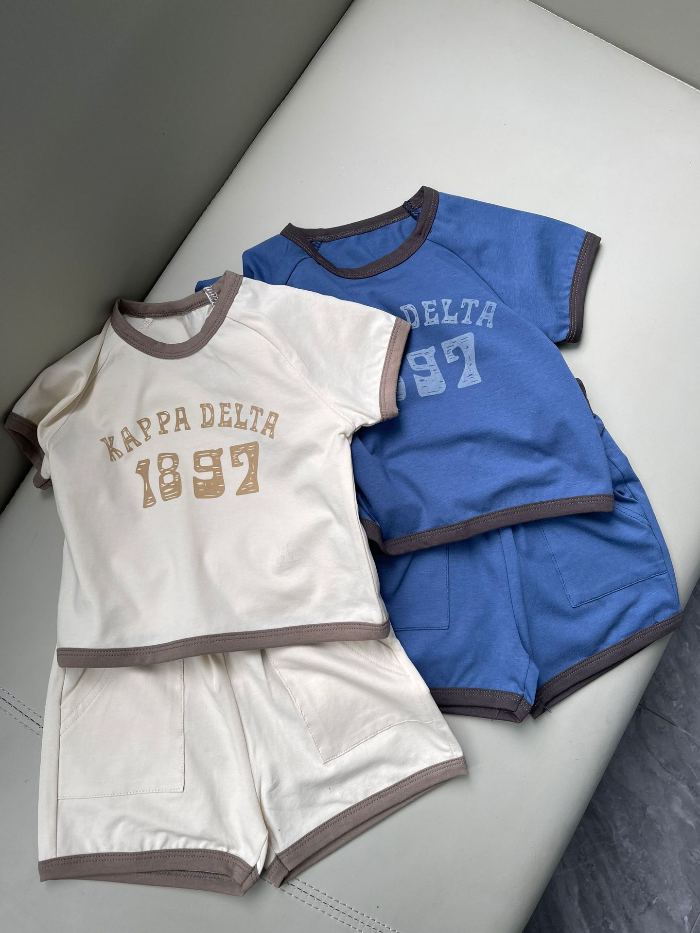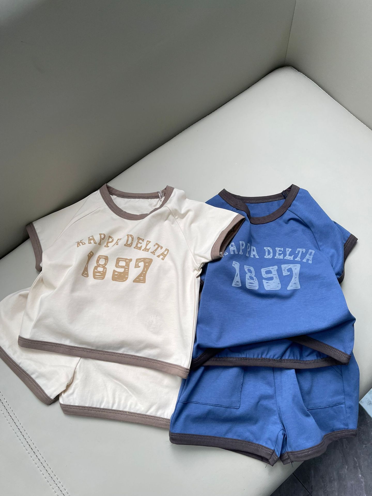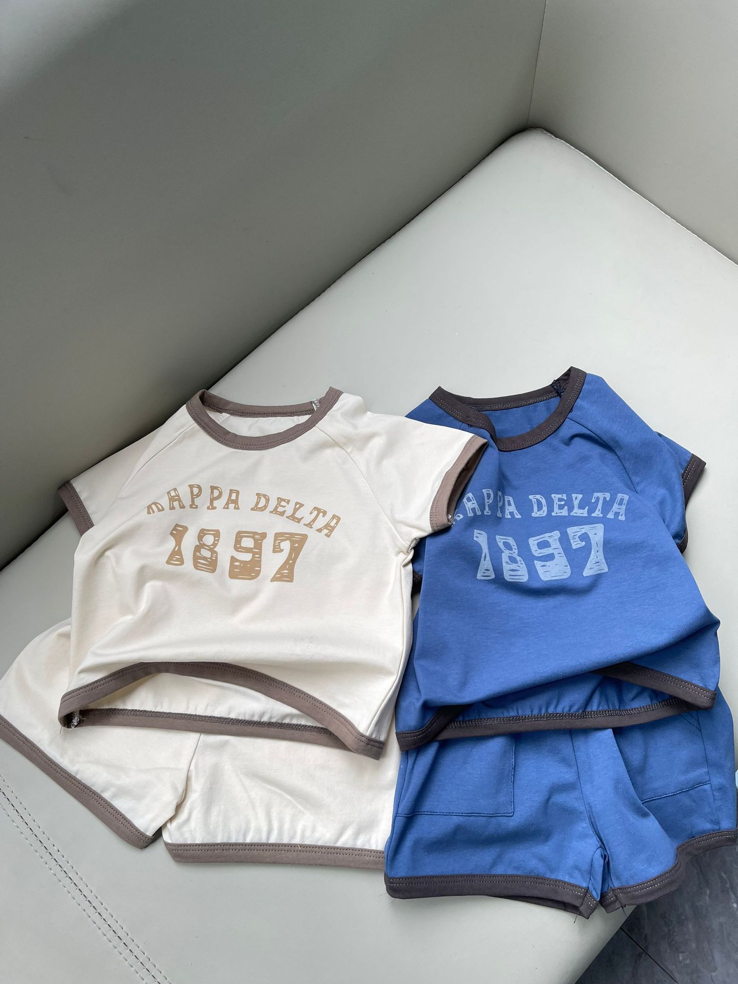 남학생과 여학생을위한 한국식 짧은 소매 반바지 1897 세트 디지털 올매치 여름 컬러 매칭 목화 통기성 커버스토어 가기