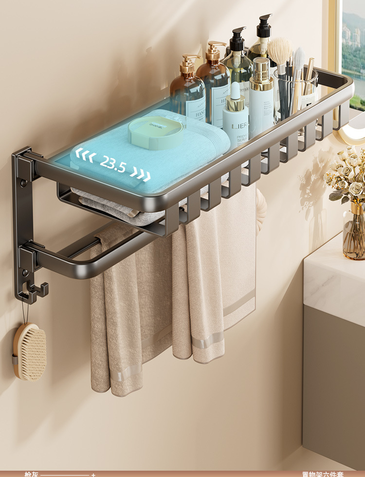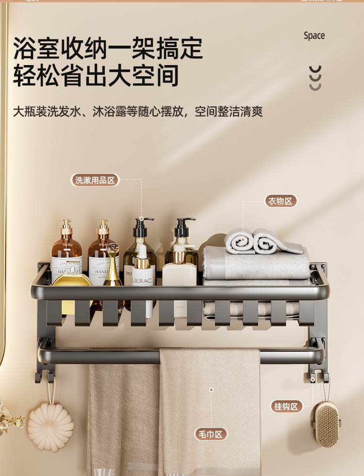 수건 랙 화장실 저장 랙 펀치-무료 욕실 선반 통합 옷걸이 화장실 벽 교수형 공간 알루미늄 목욕 타월 랙