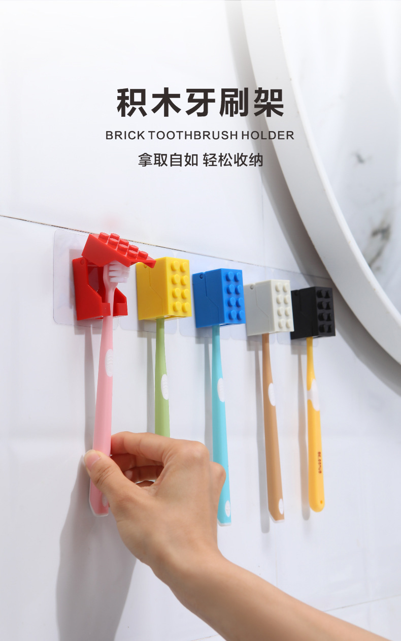 빌딩 블록 칫솔 스토리지 랙 벽걸이 형 방진 전동 칫솔 스토리지 랙 펀치 프리 화장실 벽 랙스토어 가기