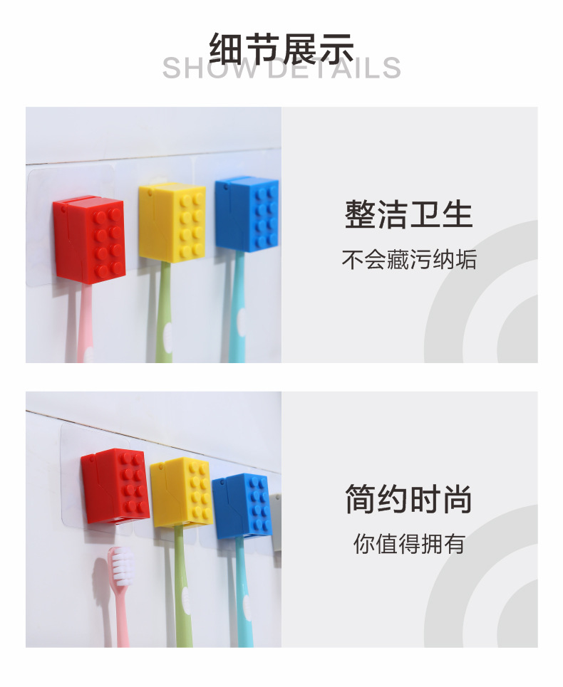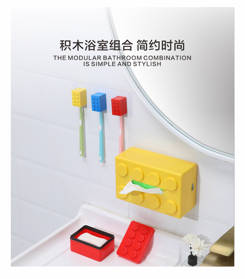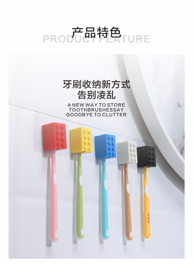 • 商品名称:无痕壁挂积木牙刷架 U型卡槽牙刷收纳架--黄色