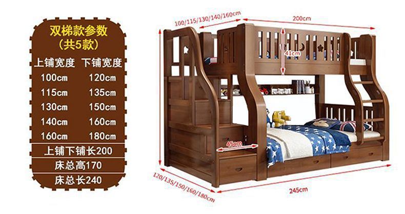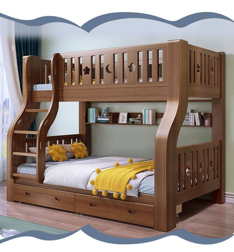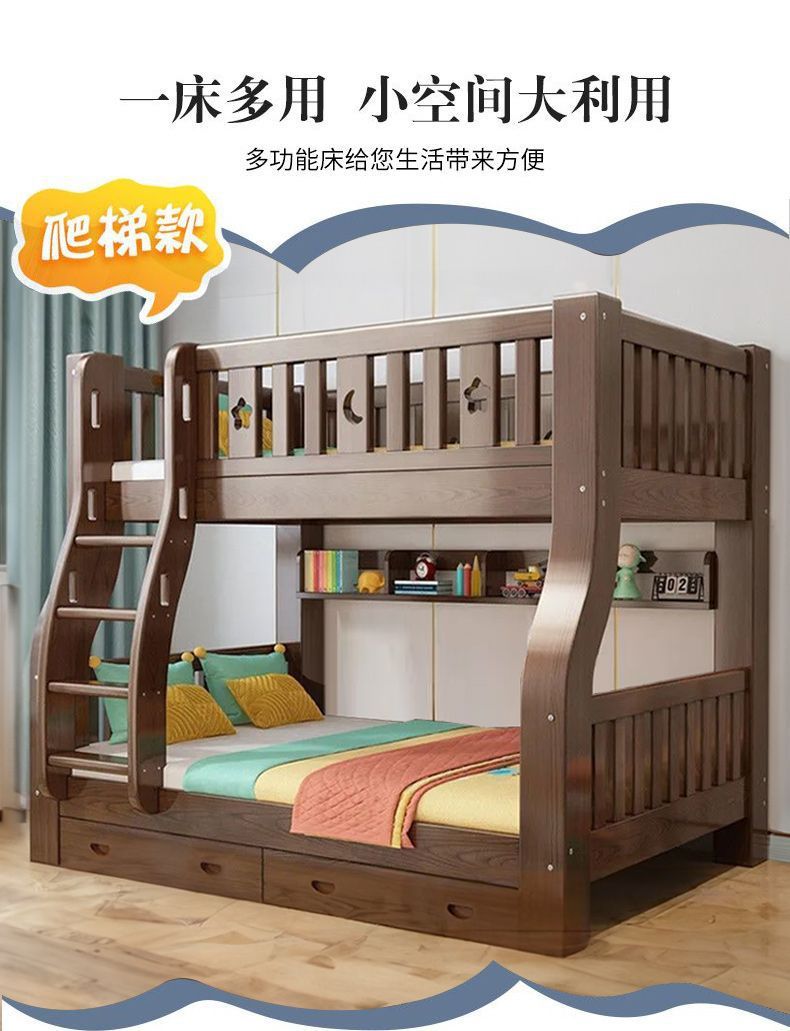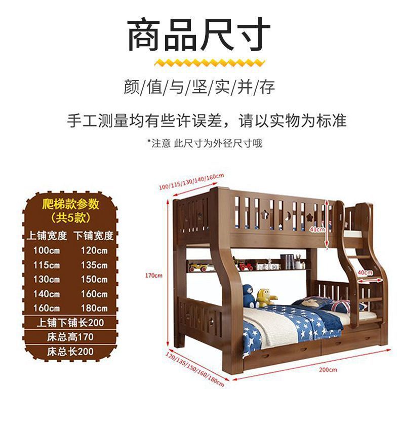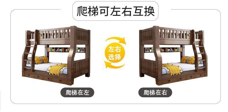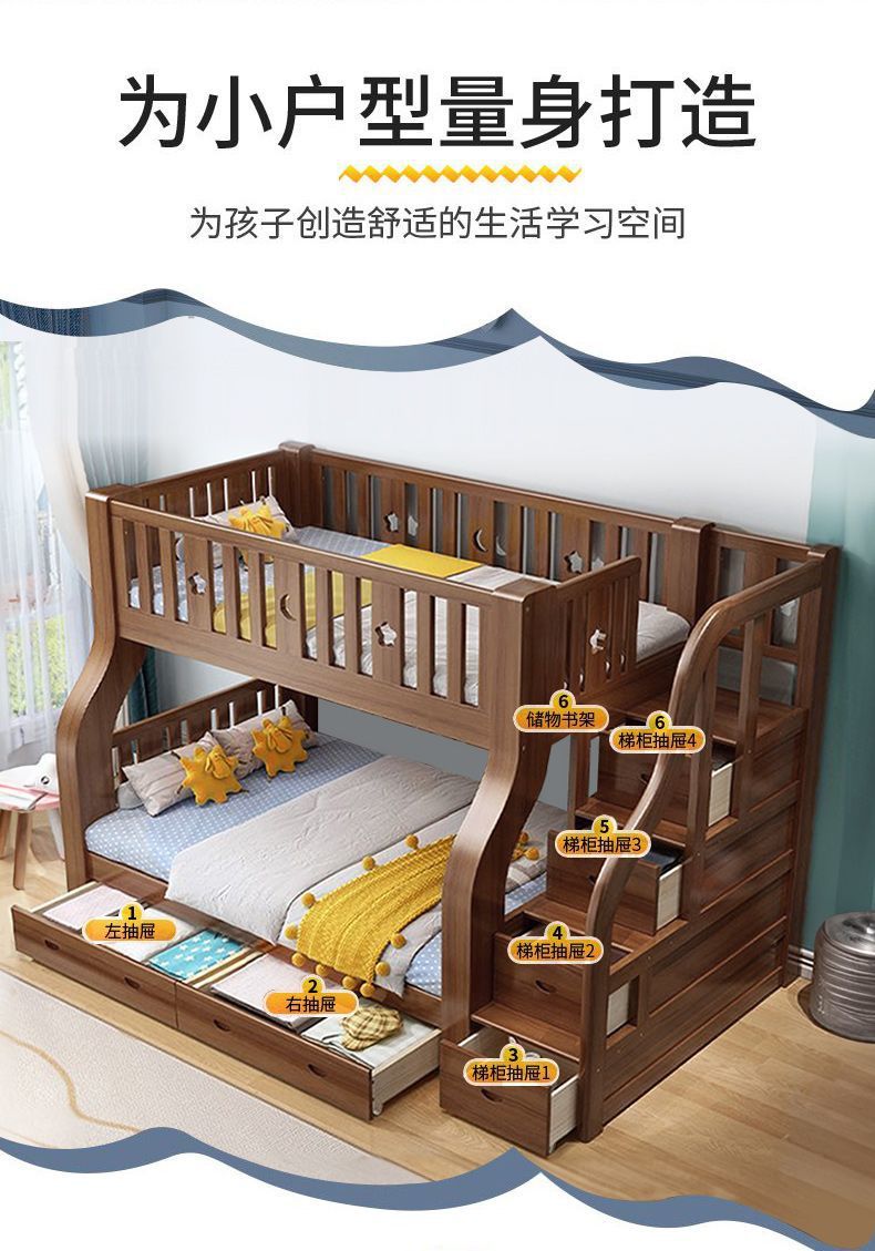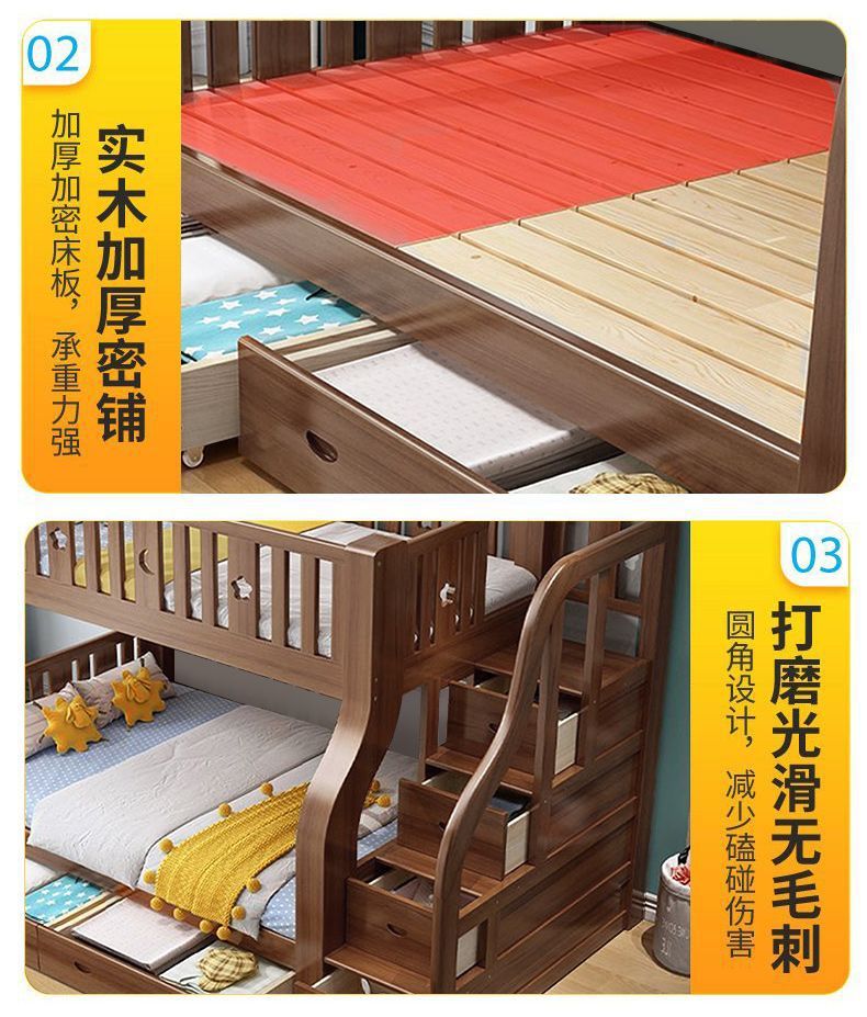 호두 모든 단단한 나무 어린이 침대 아이들의 높고 낮은 침대 벙크 침대 2 층 저장 다기능 상부 및 하부 벙크 나무 침대