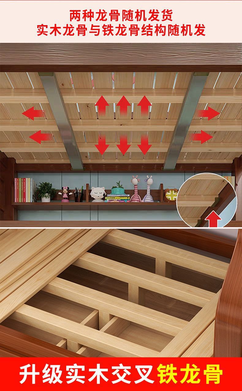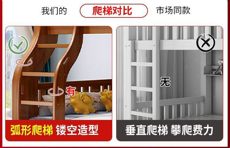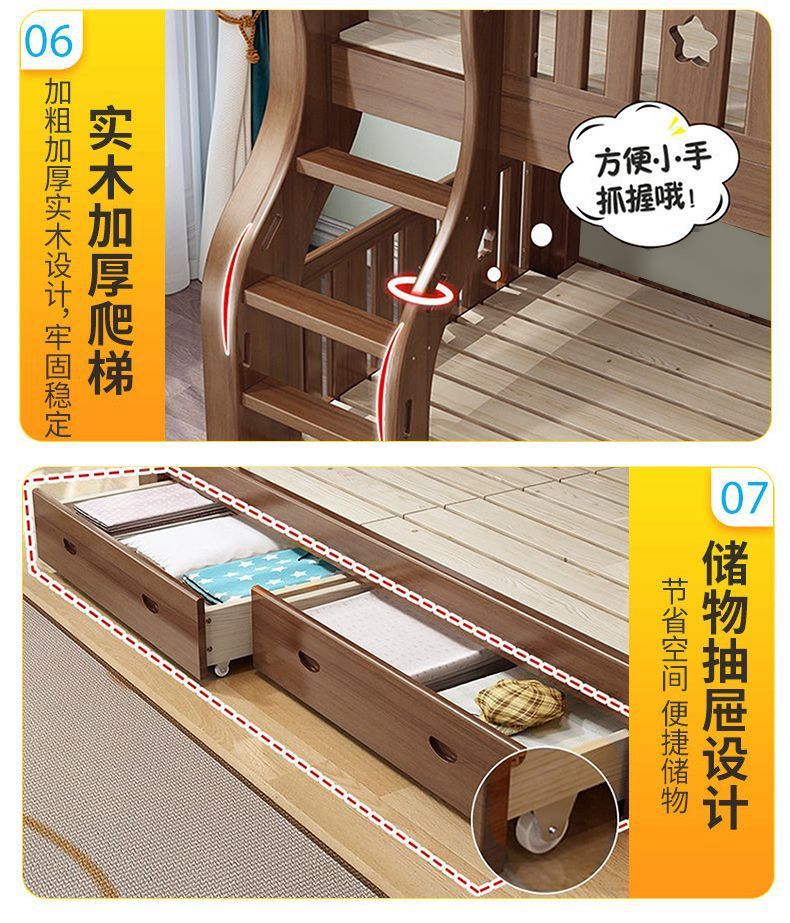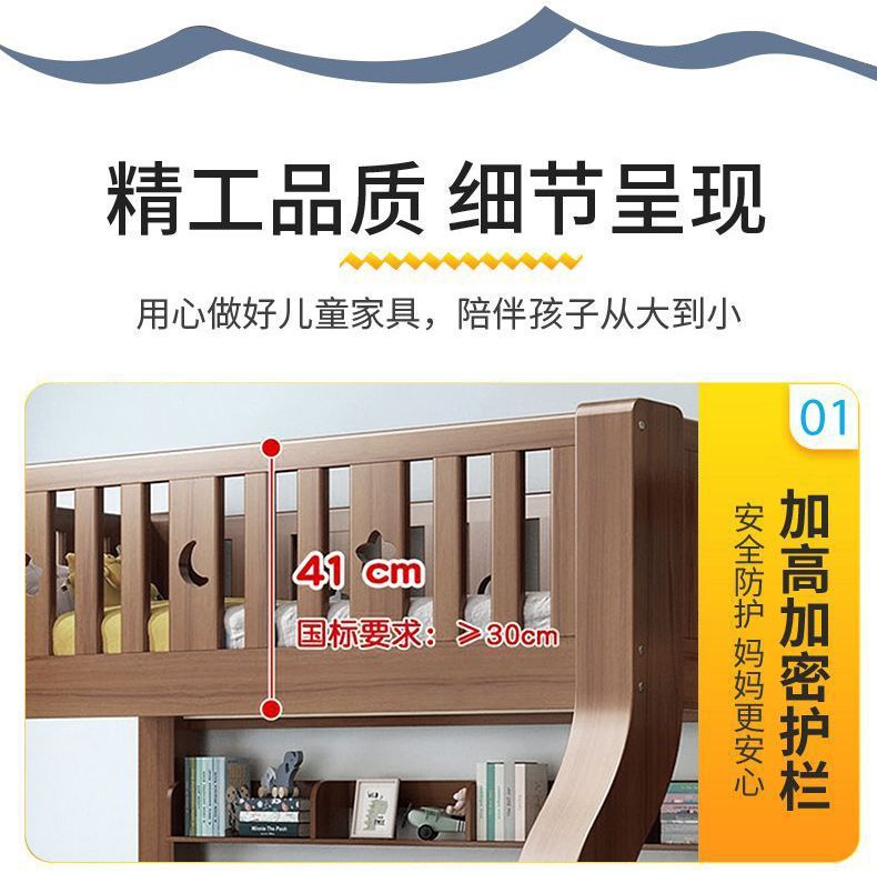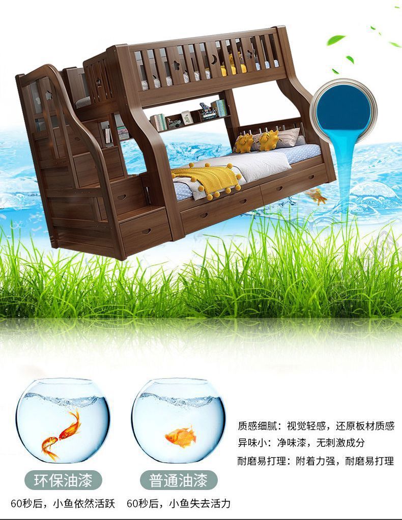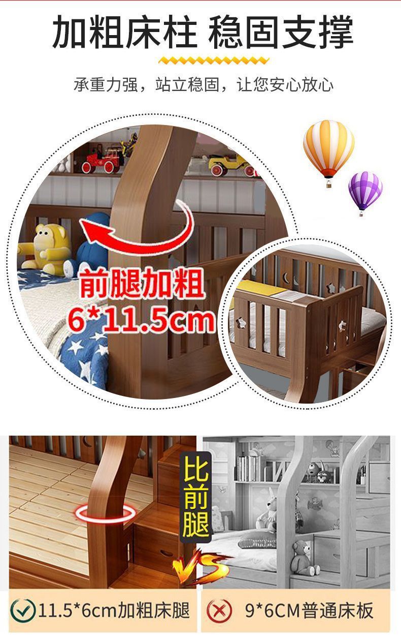 호두 모든 단단한 나무 어린이 침대 아이들의 높고 낮은 침대 벙크 침대 2 층 저장 다기능 상부 및 하부 벙크 나무 침대