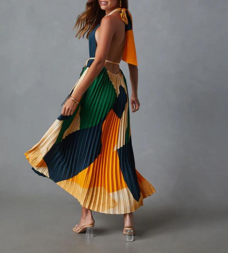 국경 2024 봄과 여름 유럽과 미국 아마존 독립 역 새로운 백리스 스트랩 프레스 접힌 인쇄 기관 주름 원피스