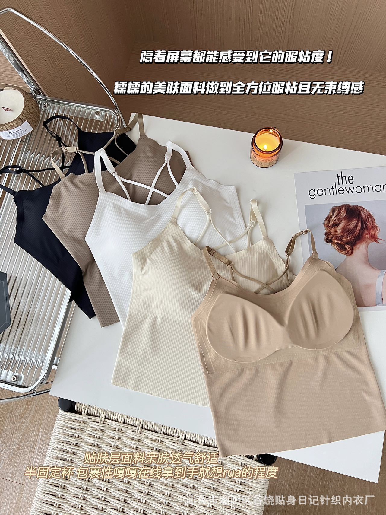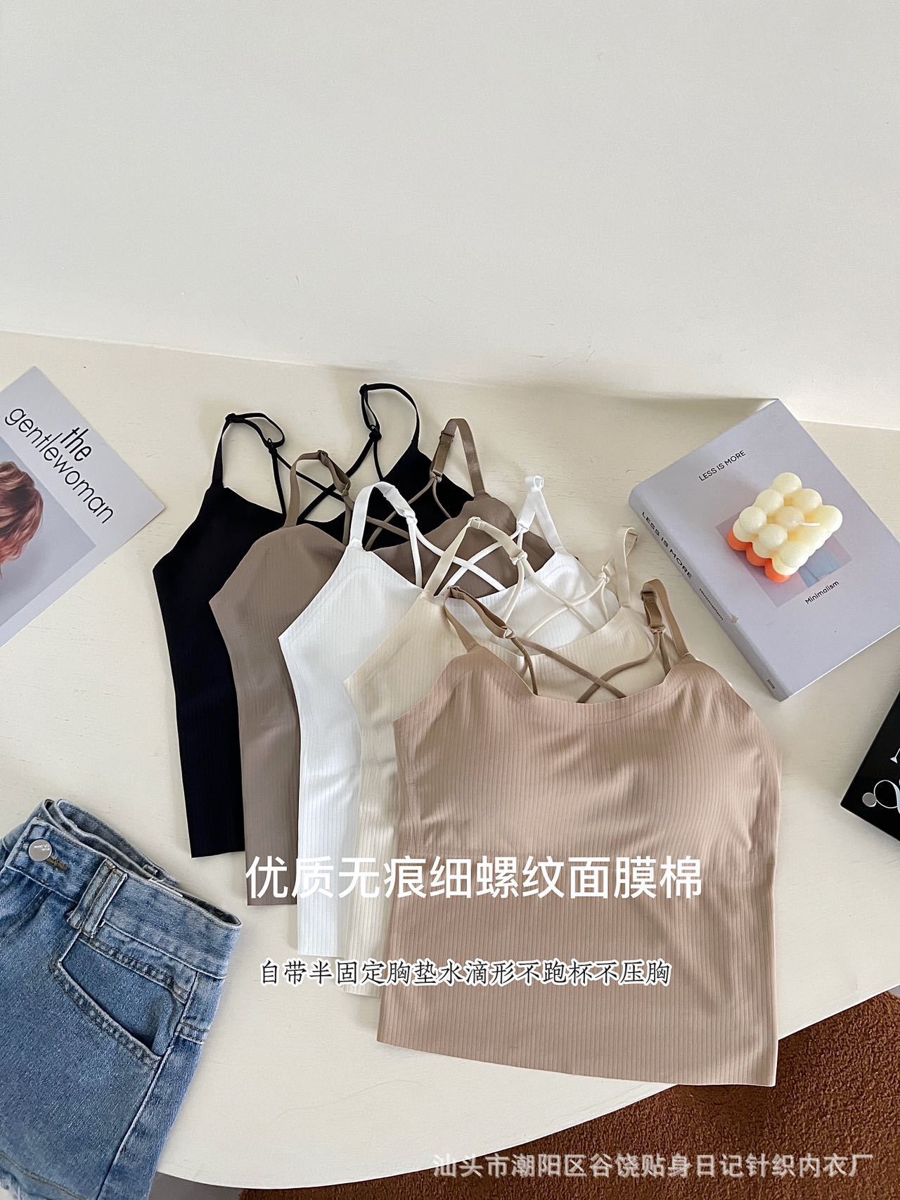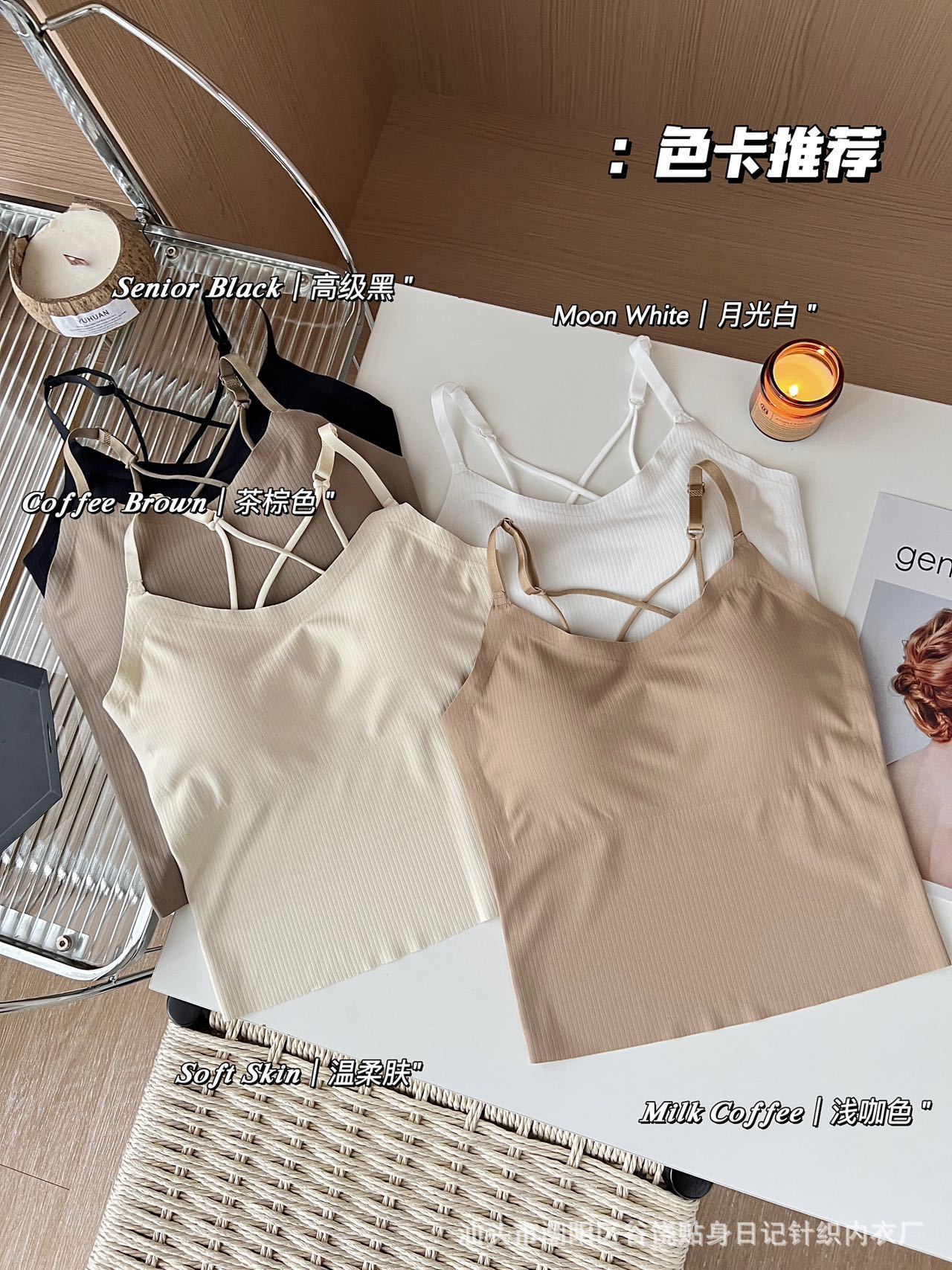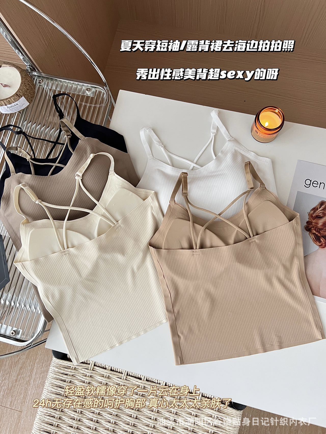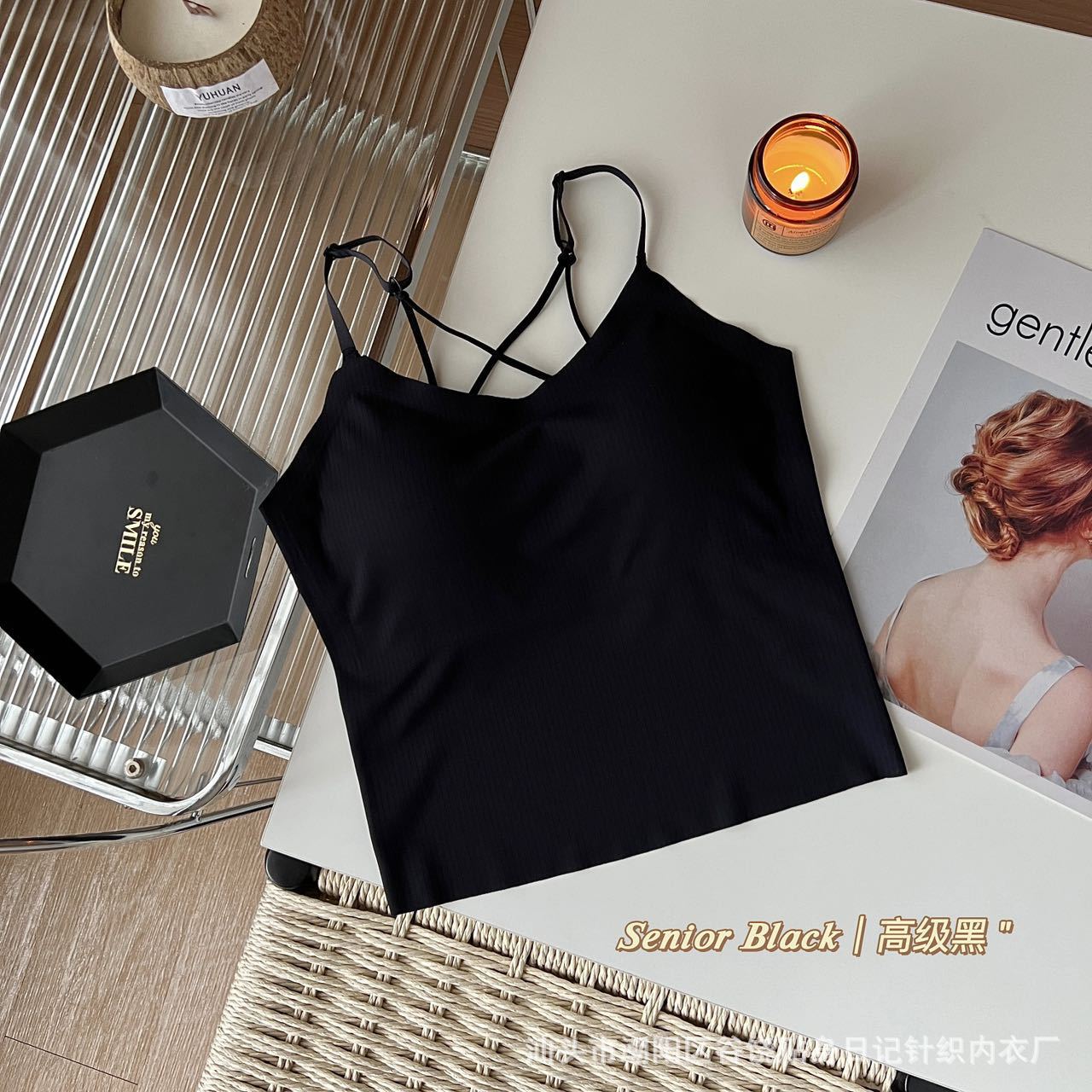 여름 스파이스 걸스 아름 다운 백 카미솔 조끼 브래지어 무료 원피스 속옷 얇은 퓨어 코튼 내부 입고 외부 패드
