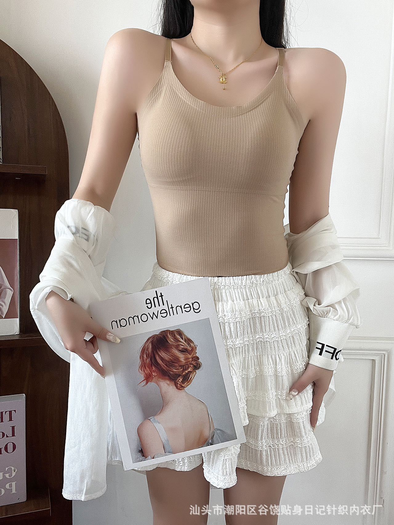 여름 스파이스 걸스 아름 다운 백 카미솔 조끼 브래지어 무료 원피스 속옷 얇은 퓨어 코튼 내부 입고 외부 패드스토어 가기