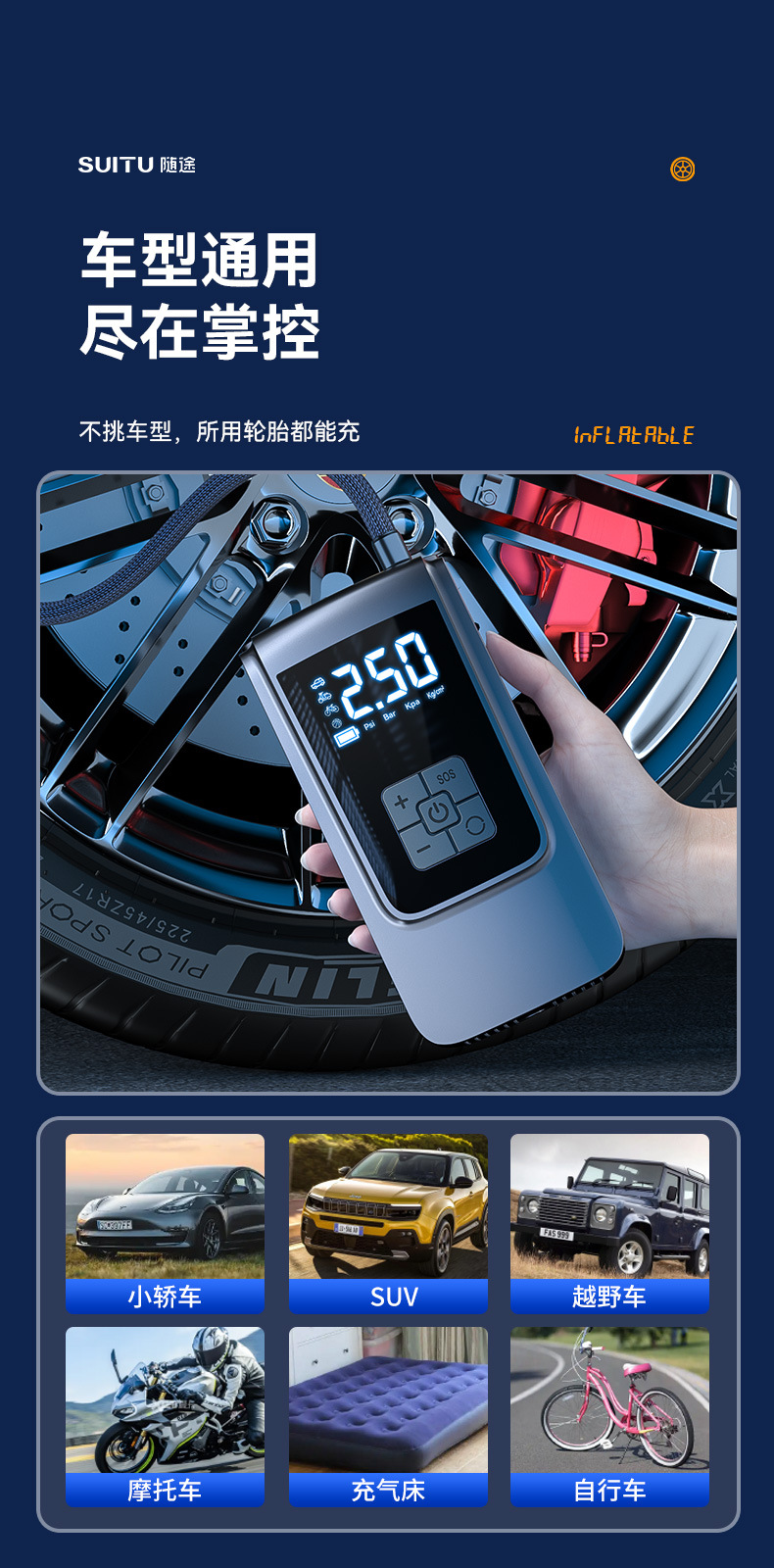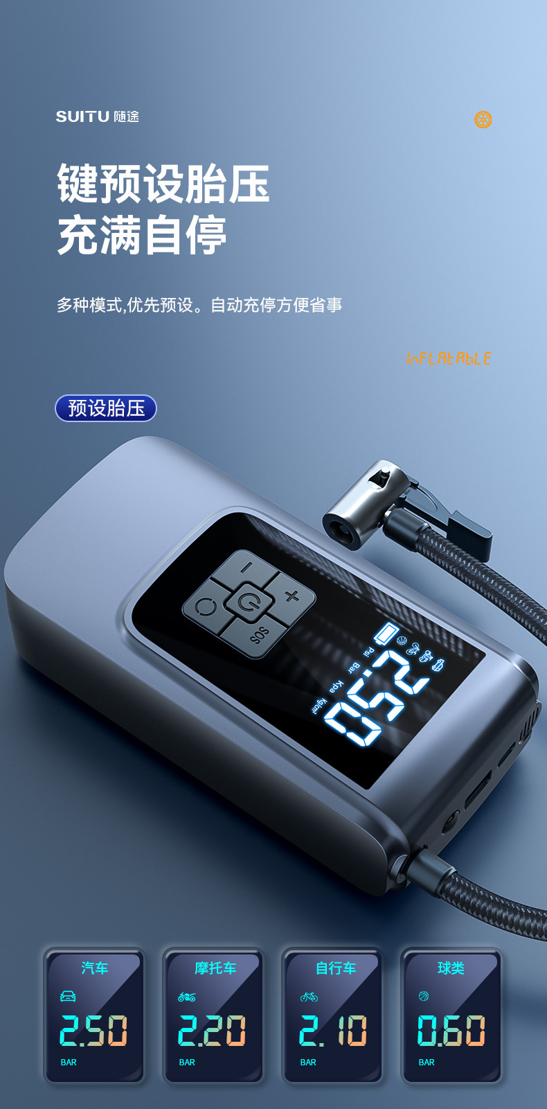 【产品名称】:7.4v/12v双电压 无线充气泵