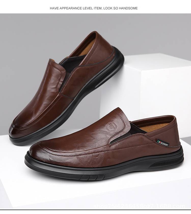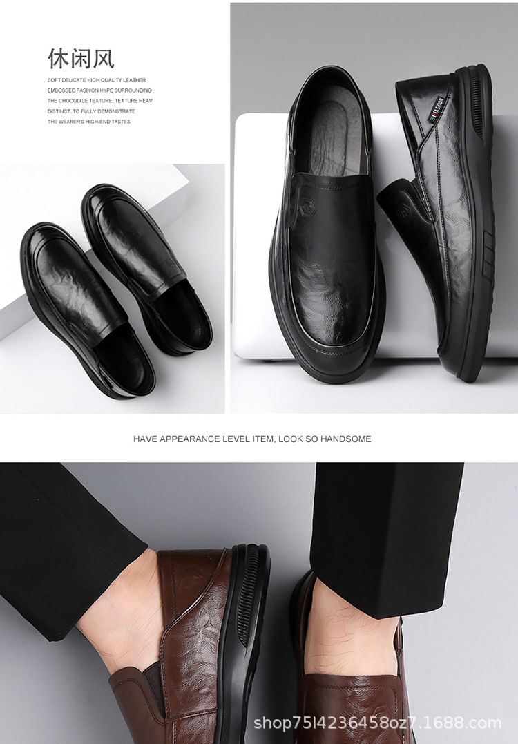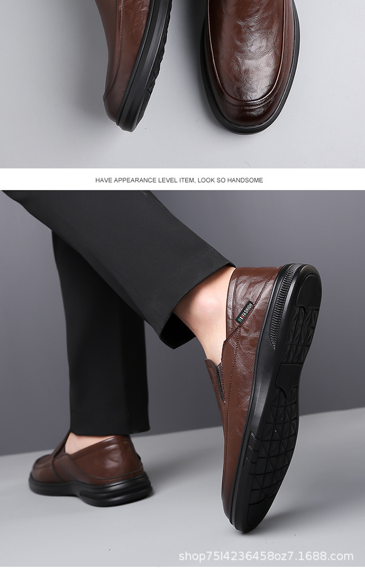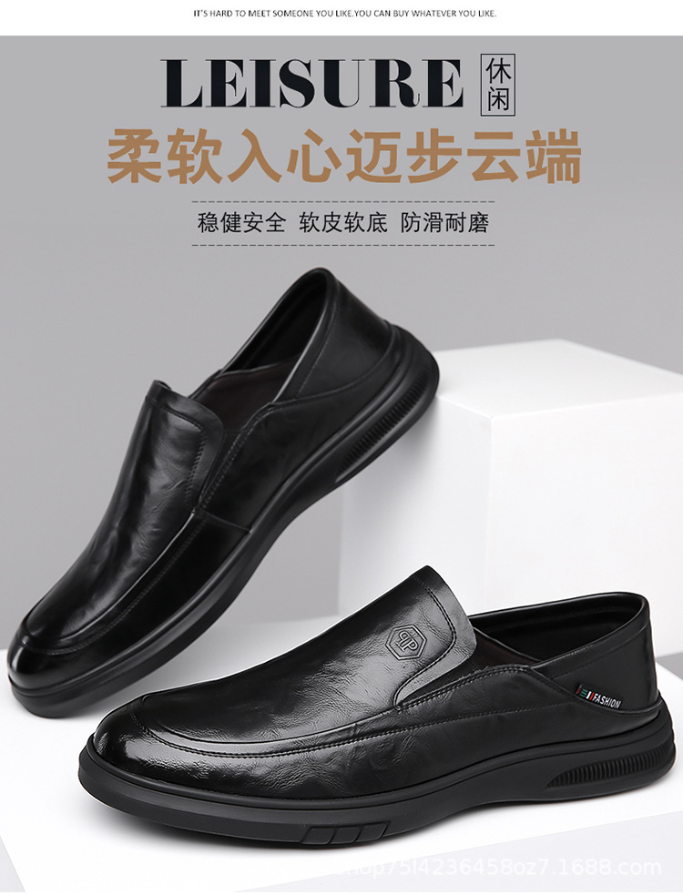 남성 신발 봄과 가을 2024 새로운 남성 비즈니스 캐주얼 가죽 신발 가죽 소프트 단독 슬립-인 소프트 가죽 미끄럼 방지 아빠 신발스토어 가기