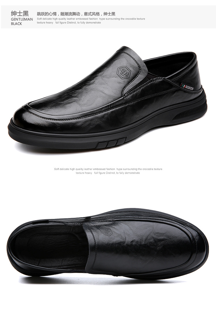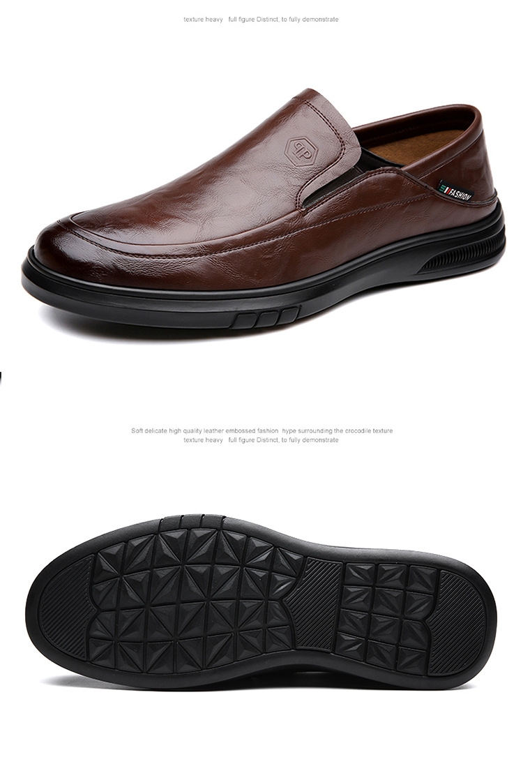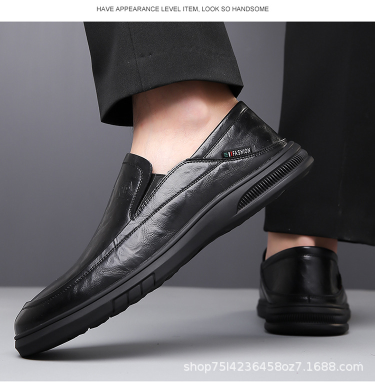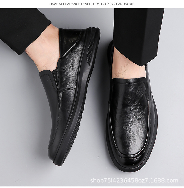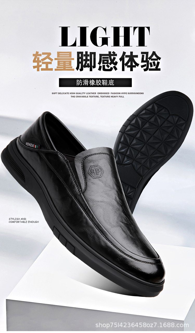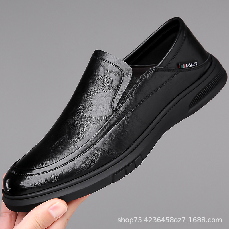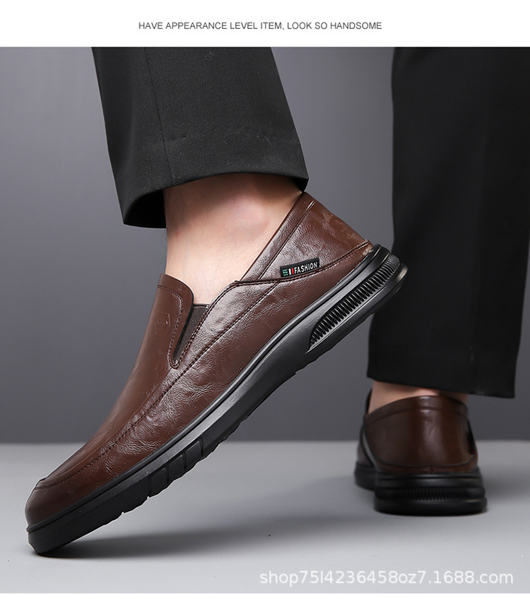 남성 신발 봄과 가을 2024 새로운 남성 비즈니스 캐주얼 가죽 신발 가죽 소프트 단독 슬립-인 소프트 가죽 미끄럼 방지 아빠 신발