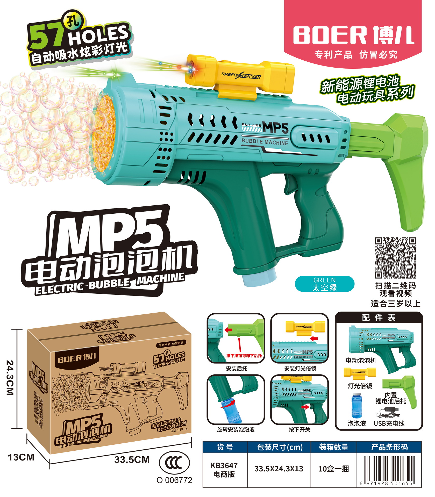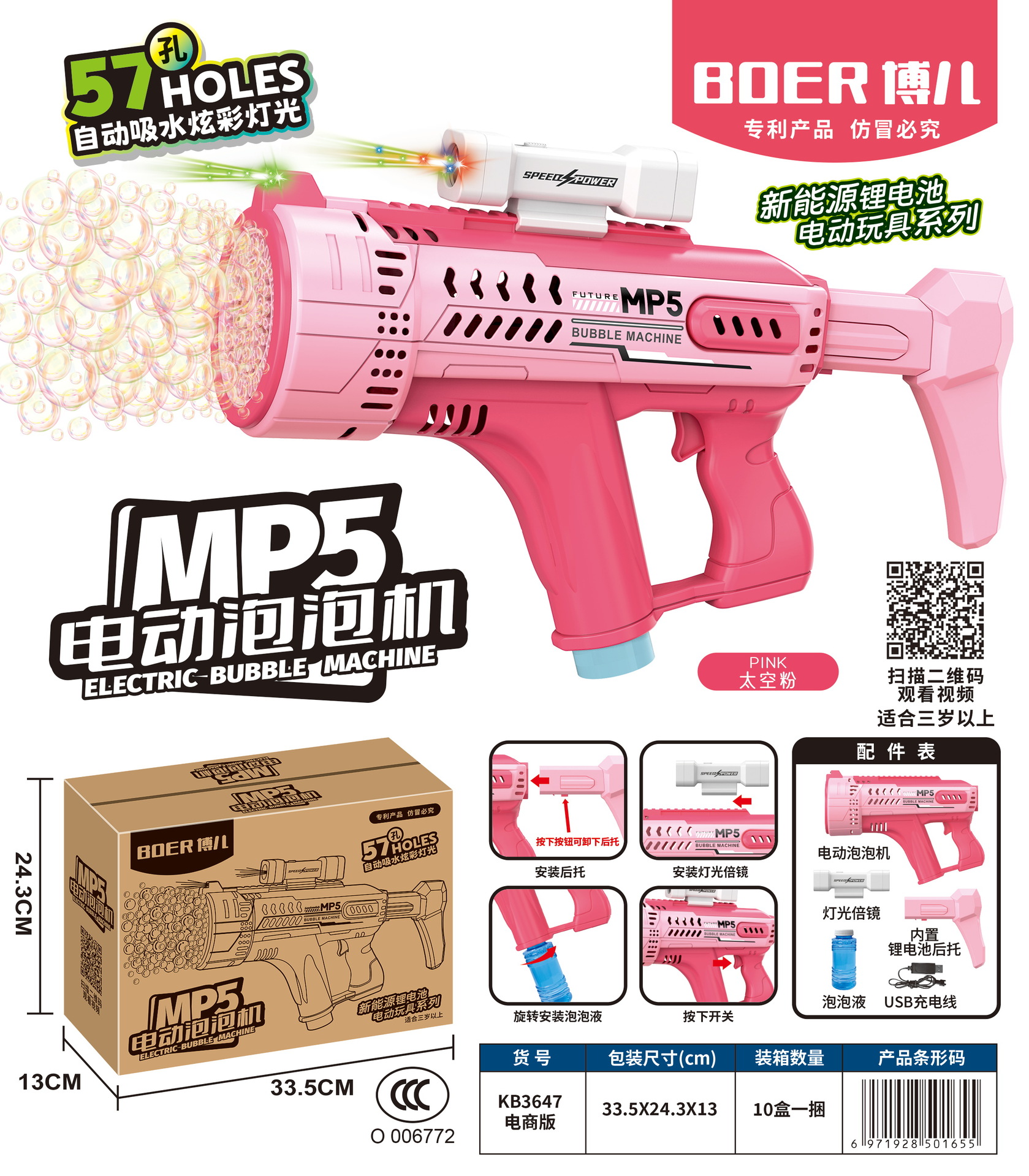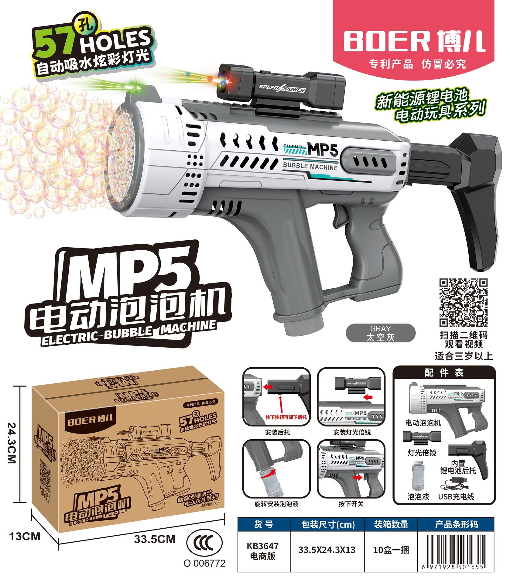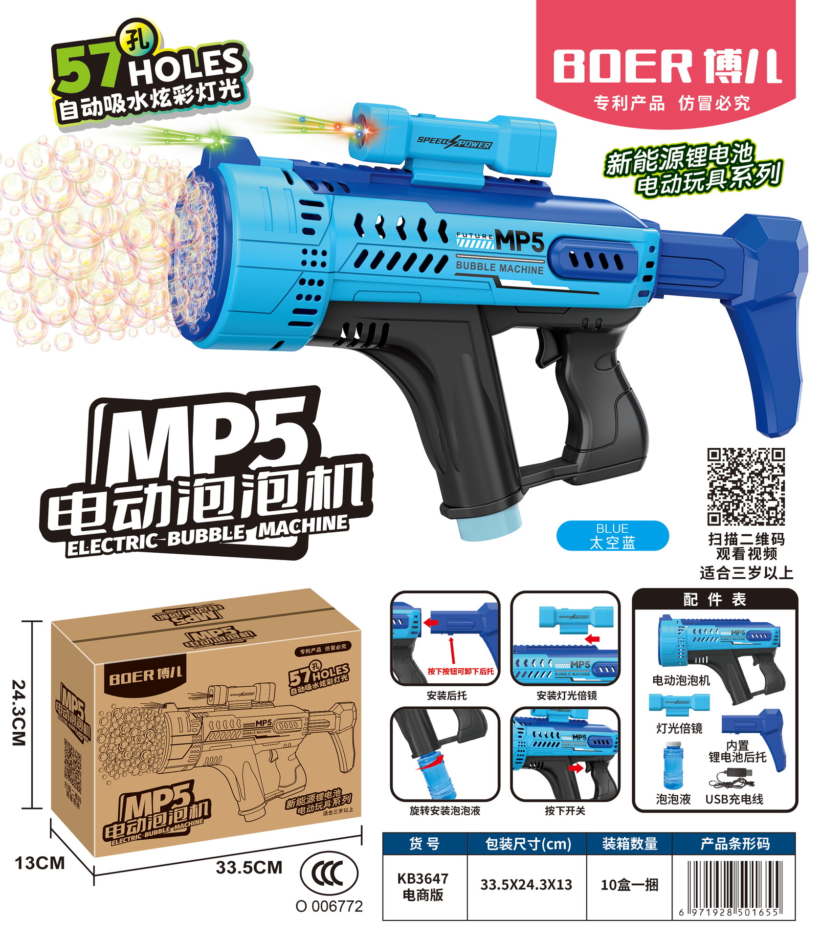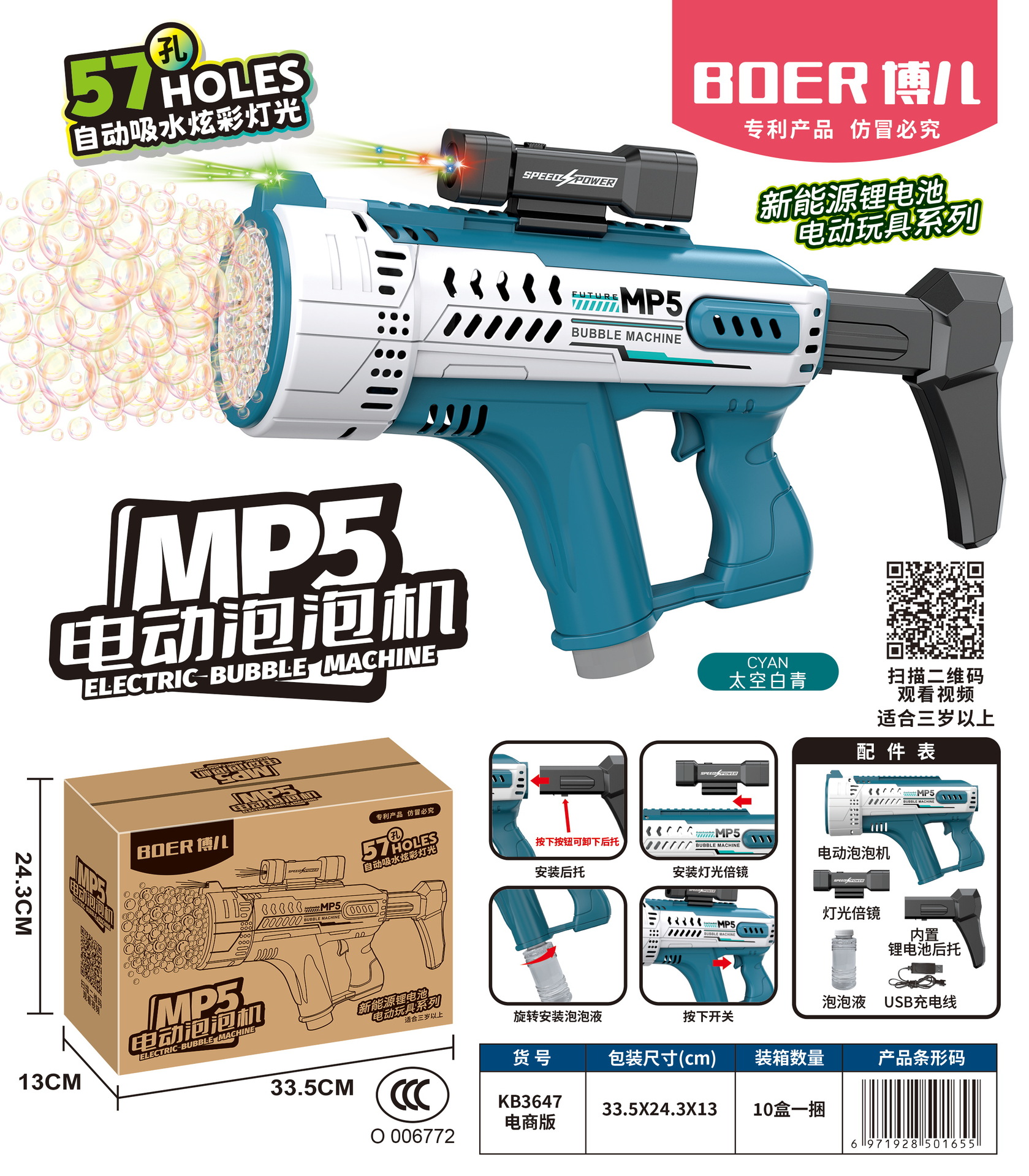 새로운 57 홀 MP5 다채로운 빛 자동 거품 휴대용 거품 기계 어린이 야외 장난감 머리카락 세대스토어 가기