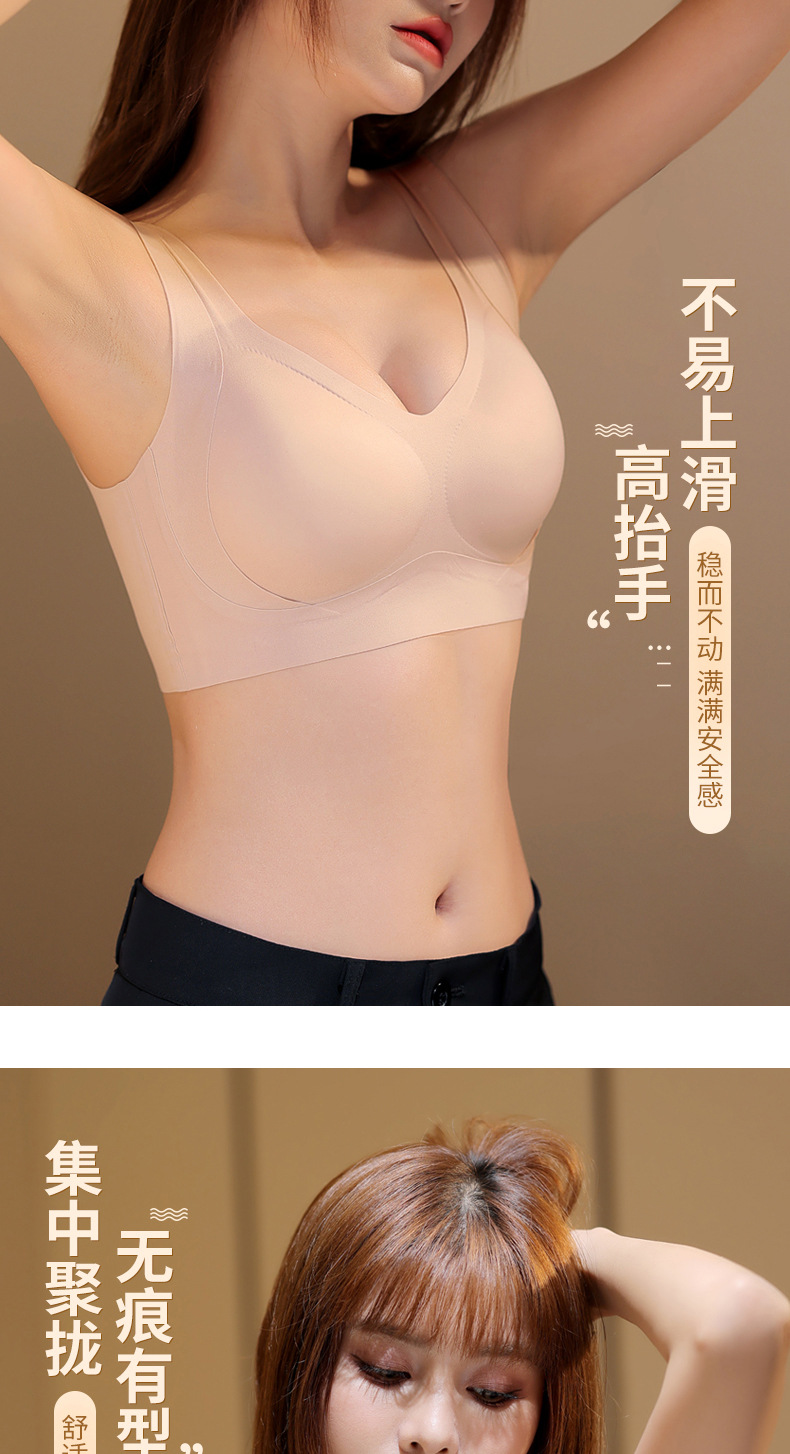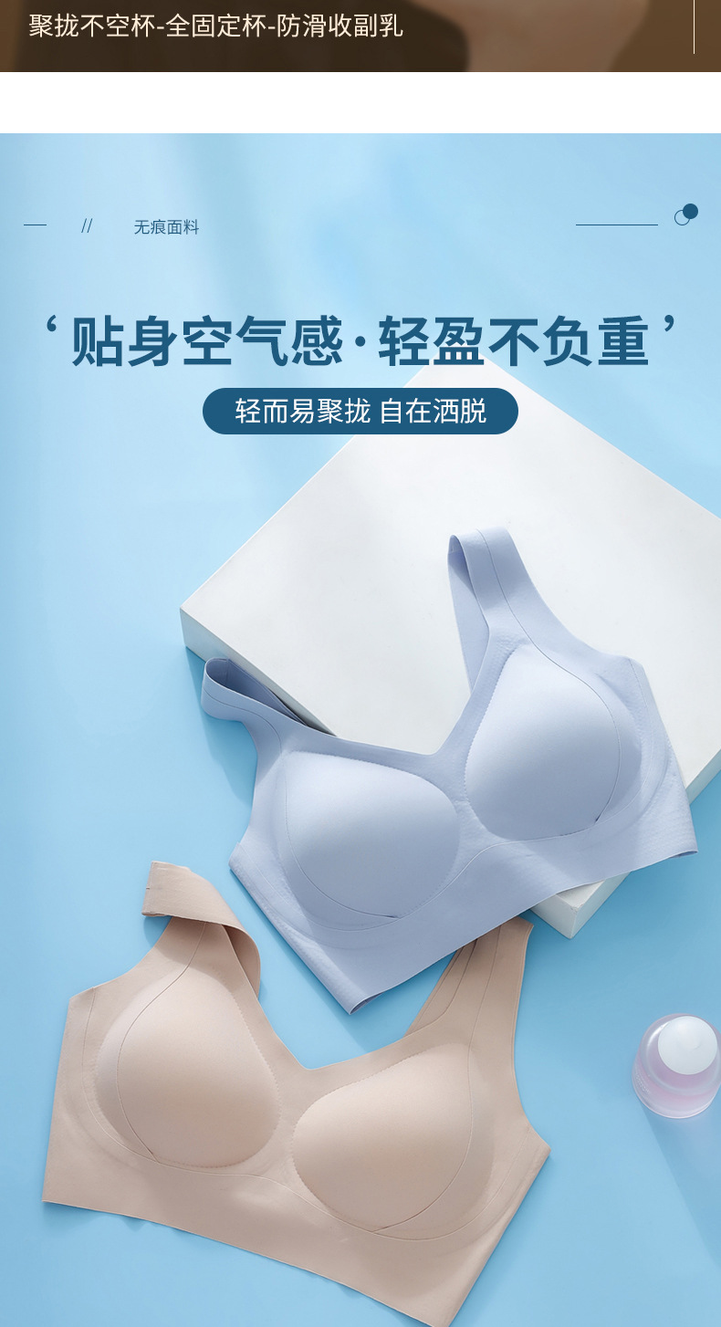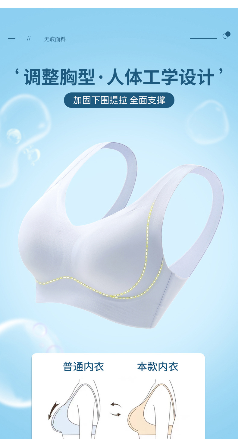 여성용 속옷, 작은 가슴을 모아주고, 옆가슴을 보정하고, 확장 방지, 부드러운 지지력, 처짐 방지, 백리스형 브라, 큰 가슴을 더 작게 보이게 합니다.