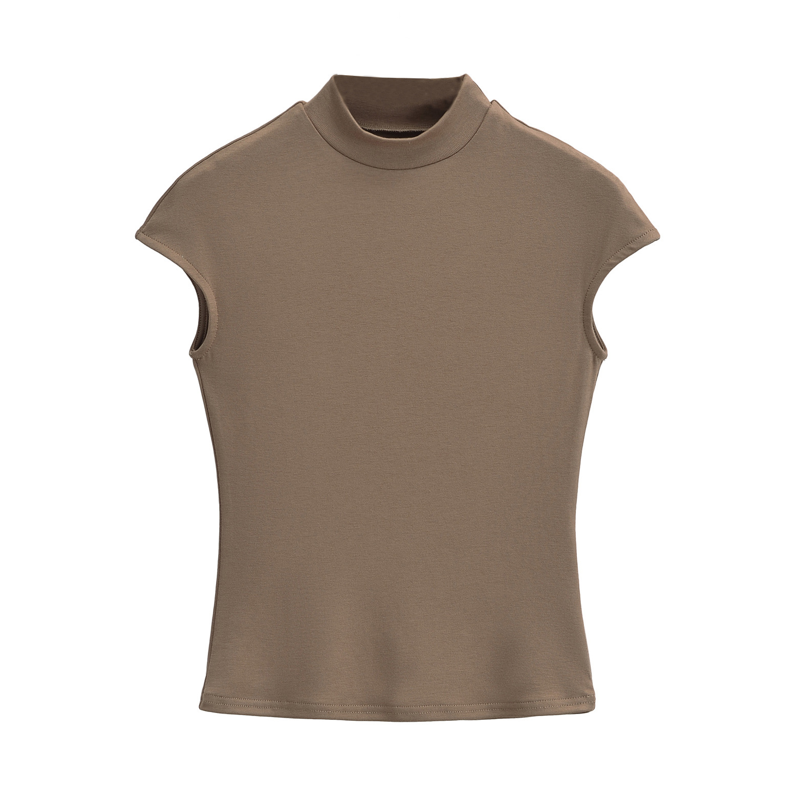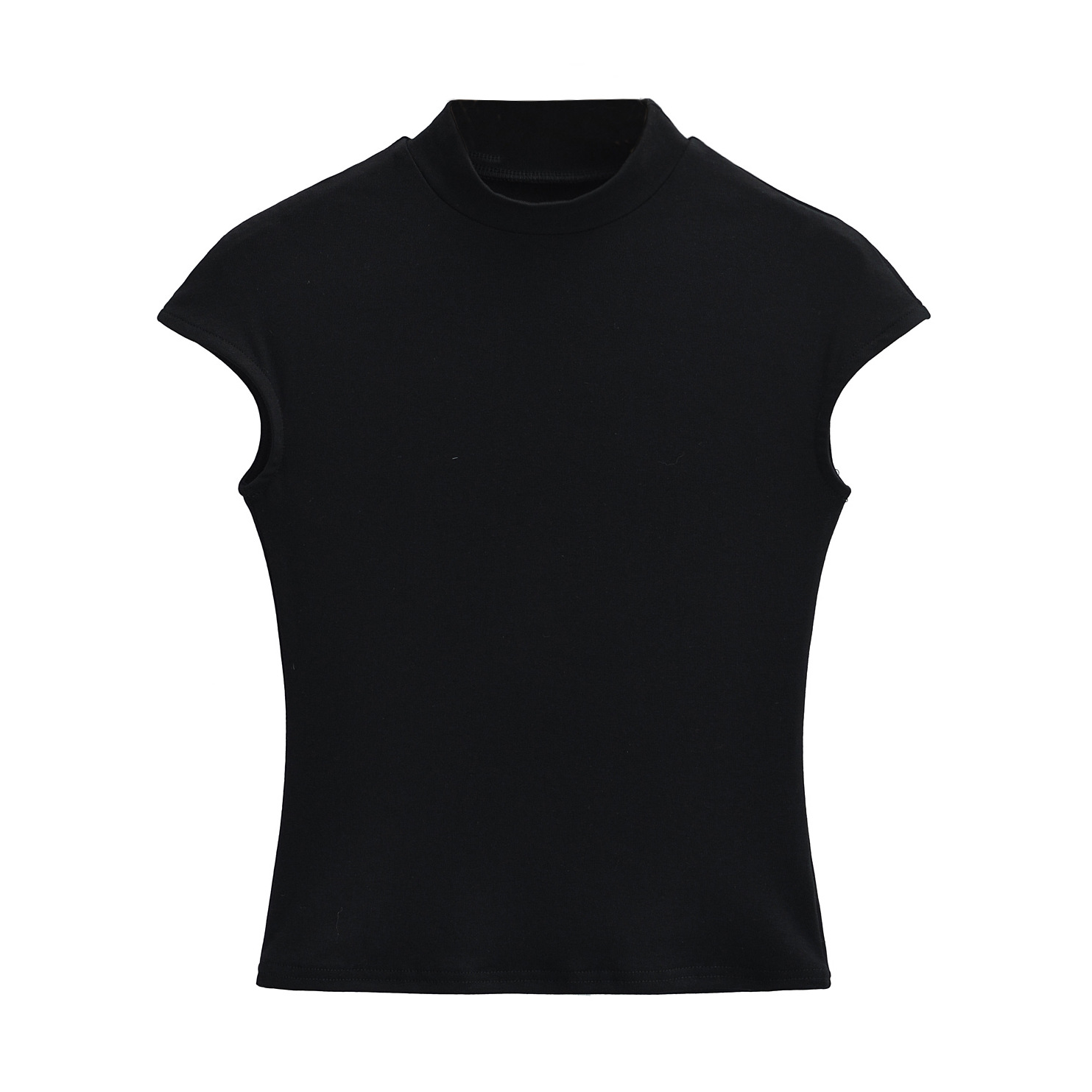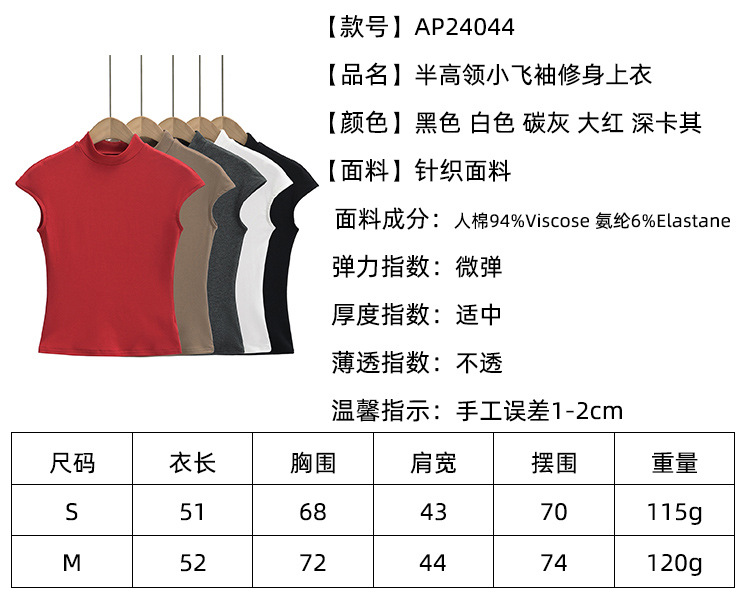 유럽과 미국 스타일 여름 섹시한 스파이스 소녀 스타일 반 높은 목 작은 비행 소매 타이트 보팅 티셔츠 슬림 핏 얇은 짧은 탑