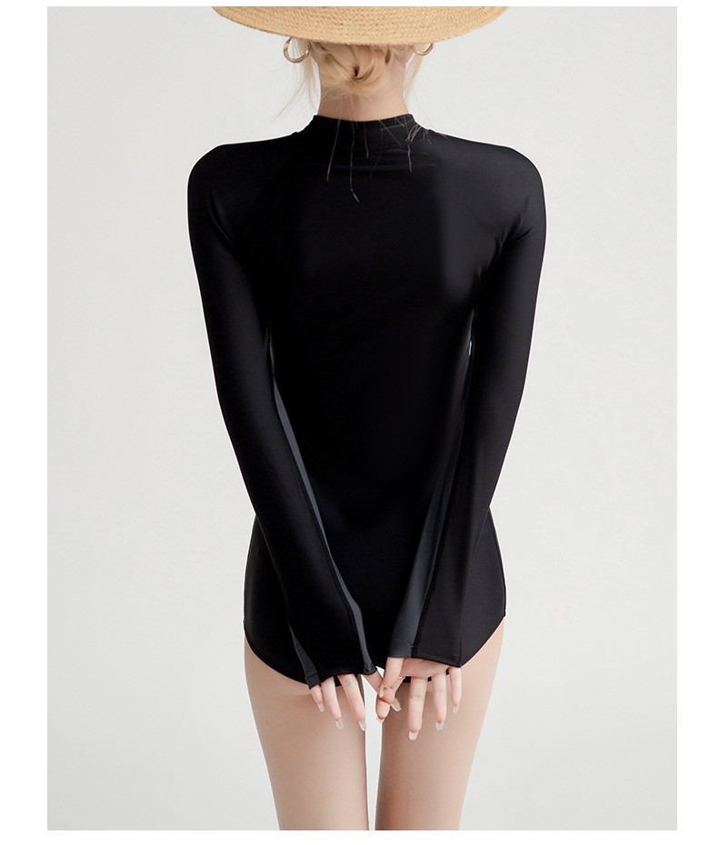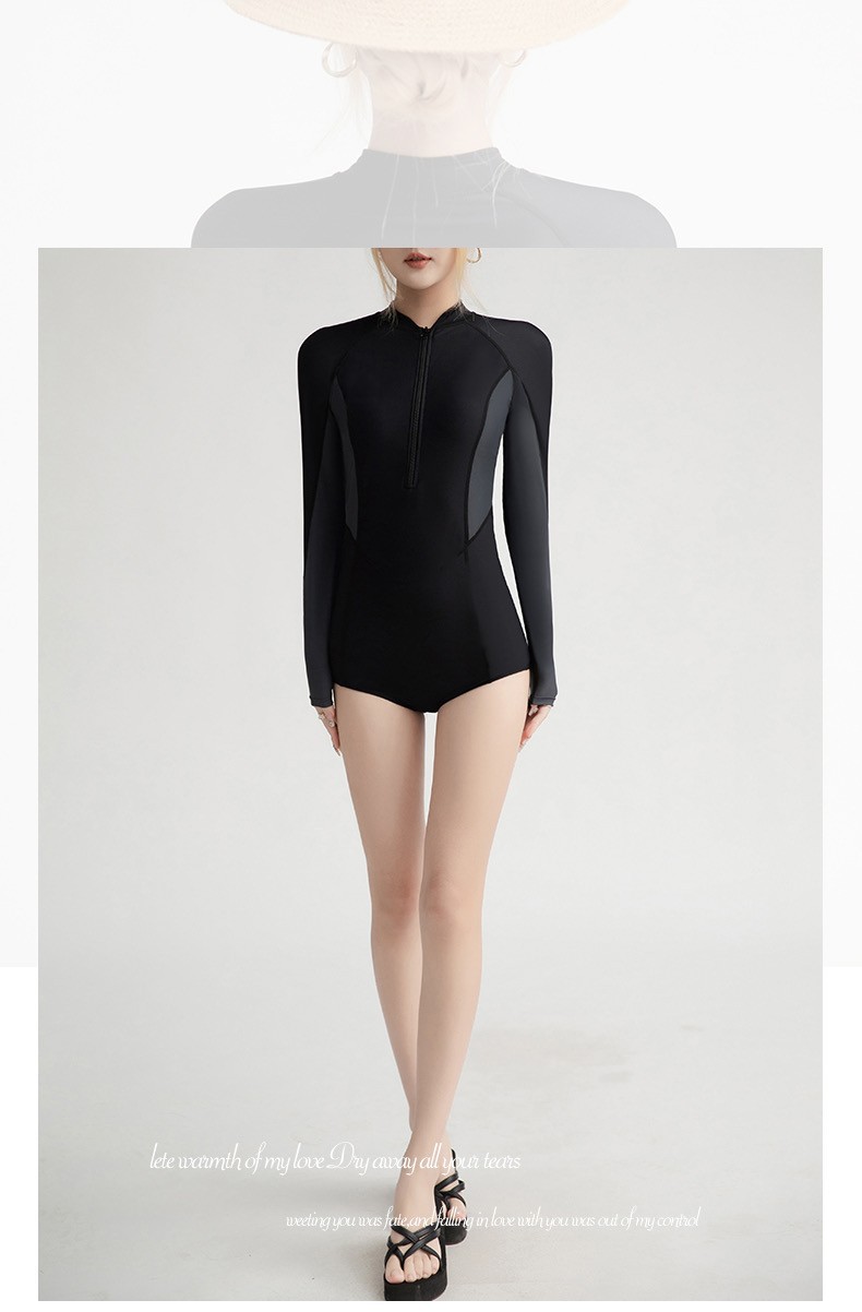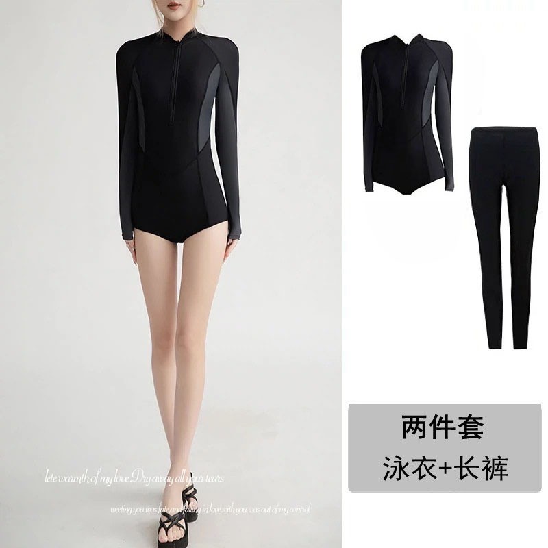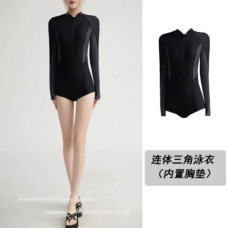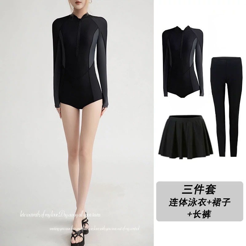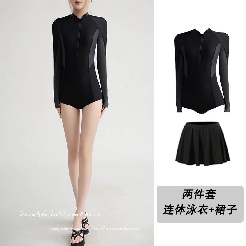 수영복 여성의 2024 새로운 빠른 건조 원피스 긴팔 태양 보호 벨리 커버 슬리밍 보수적 플랫 앵글 프로 스포츠 온천스토어 가기