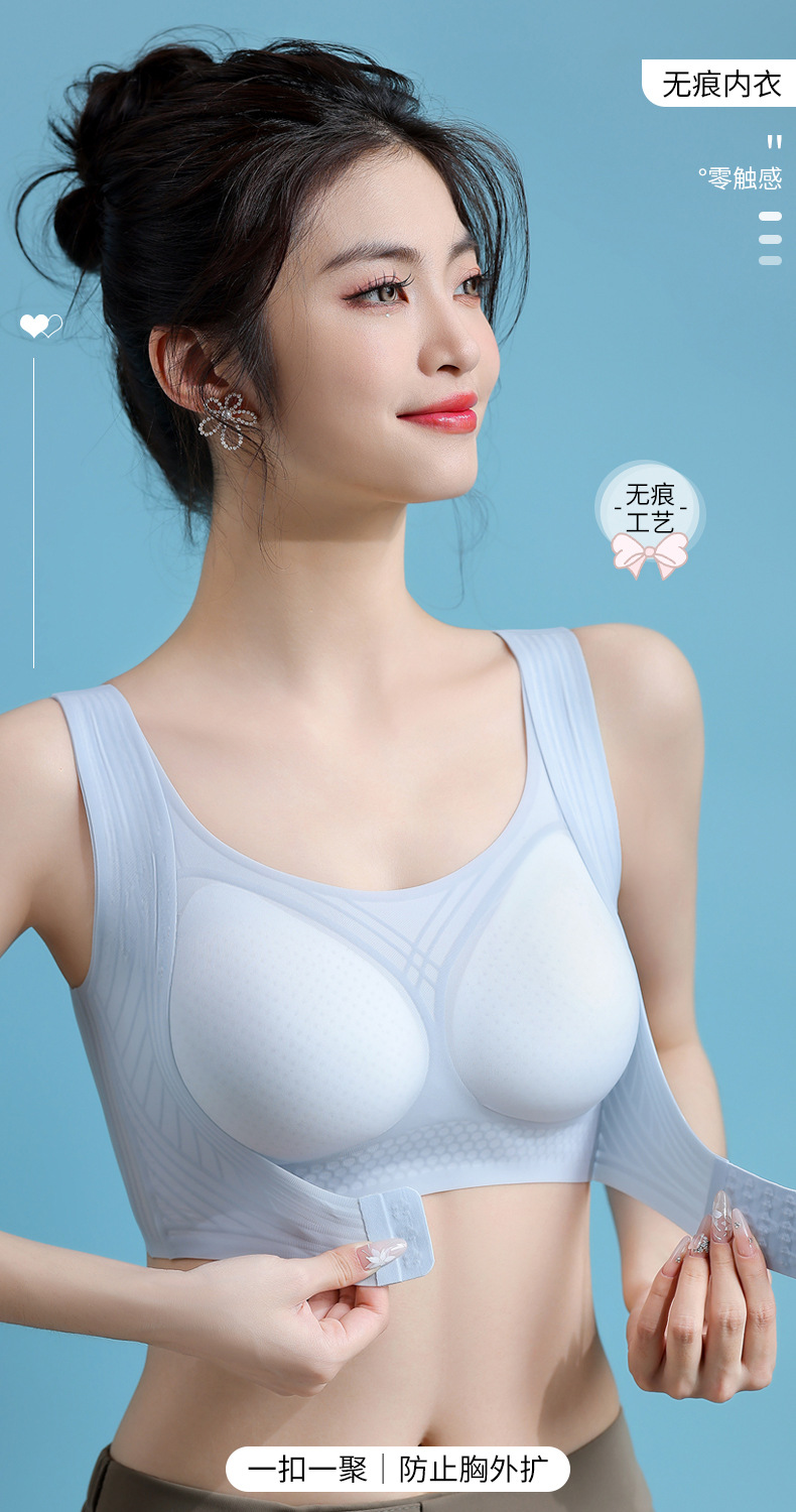 여름 울트라 얇은 프론트 브레스트 비 마킹 젤리 고정 컵 속옷 여성의 큰 가슴 작은 모임 처짐 방지 브라 브라 브라스토어 가기