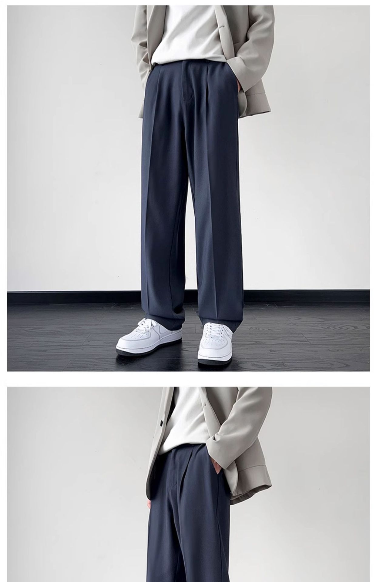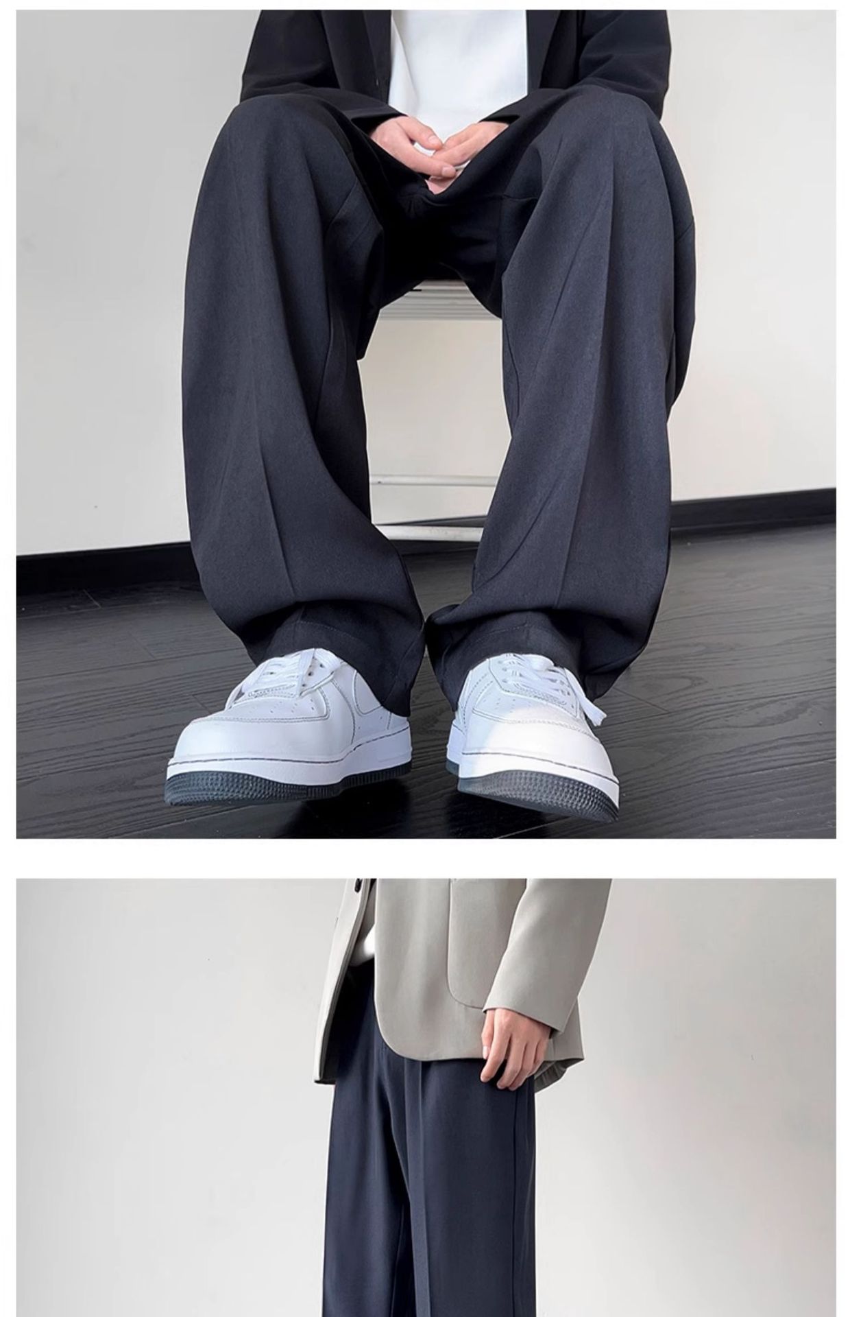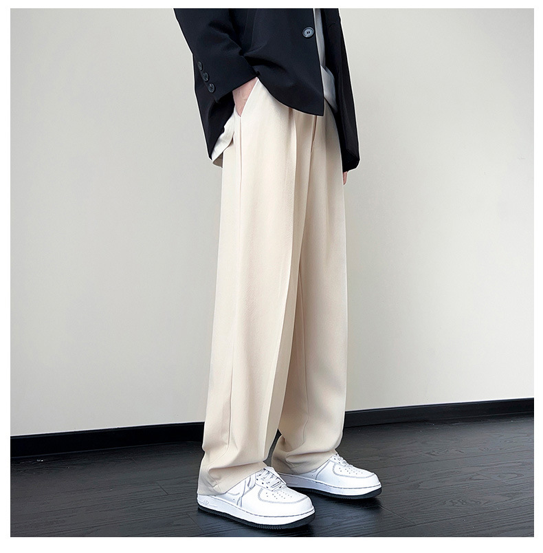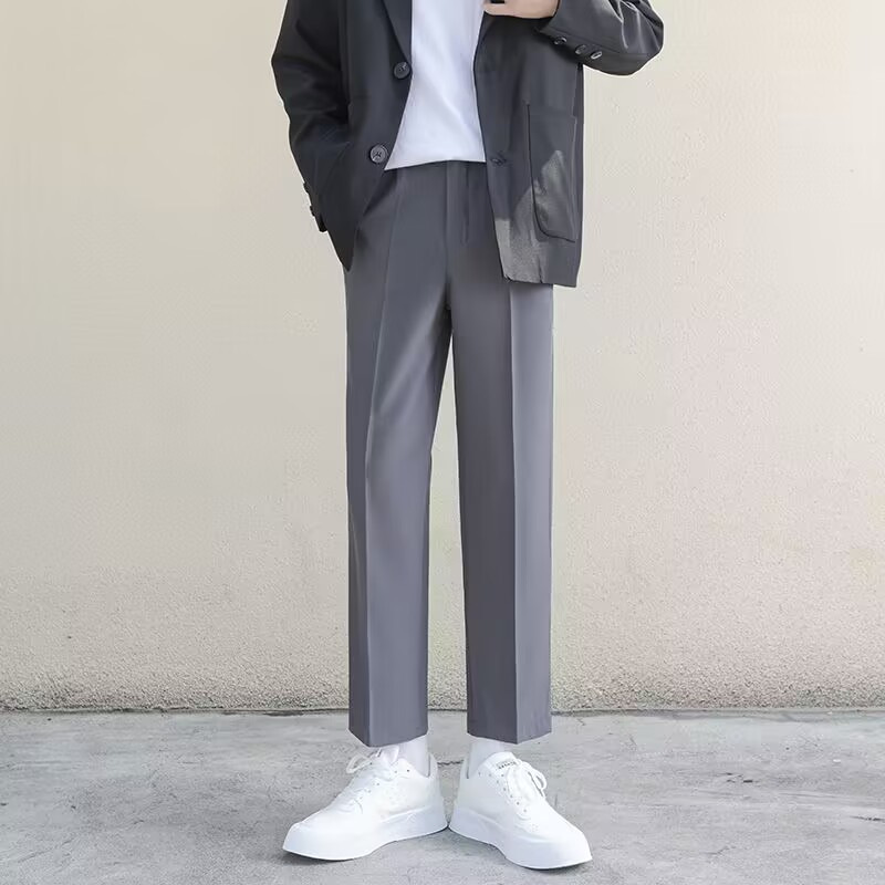 슈퍼 플러스 사이즈 블랙 세트 바지 남성용 감각 고급 세트 바지 여름 얇은 얼음 실크 스트레이트 캐주얼 바지스토어 가기