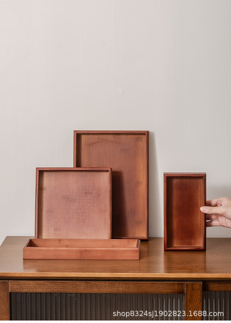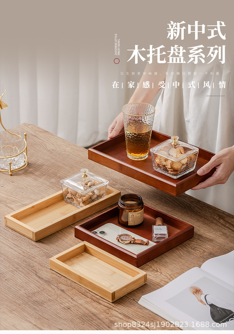 대나무 나무 차 쟁반 직사각형 상업용 가정용 차 컵 대나무 물 컵 저장 일본 스타일 간단한 큰 판스토어 가기