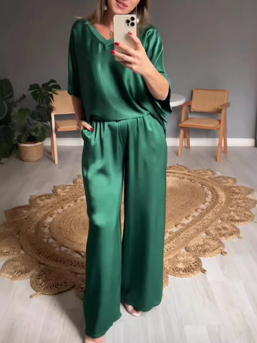 2024 유럽과 미국 국경 여름 독립 역 AliExpress 패션 단색 메리 드 v 칼라 캐주얼 세트 여성