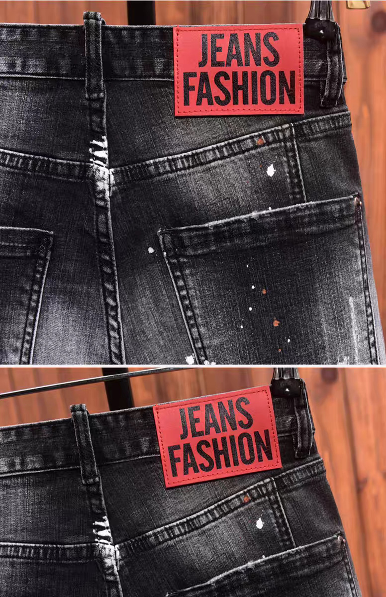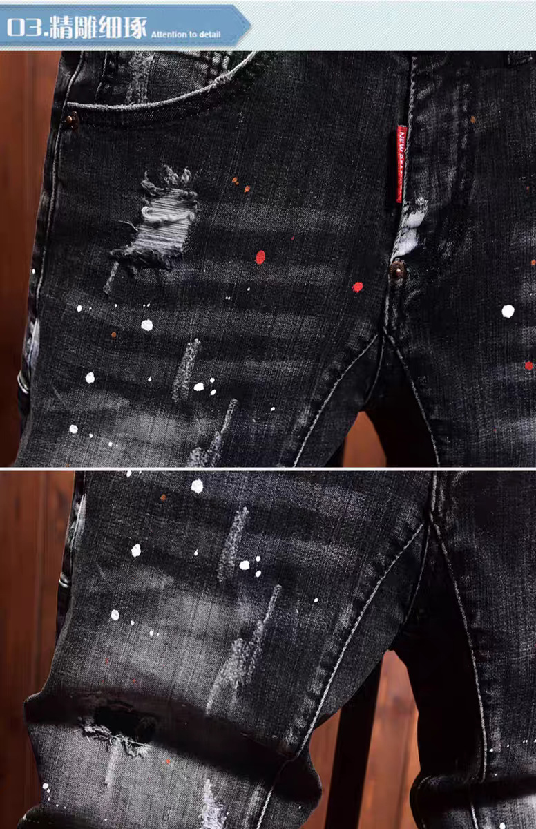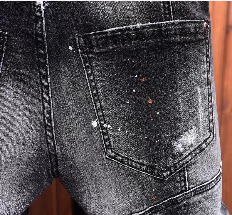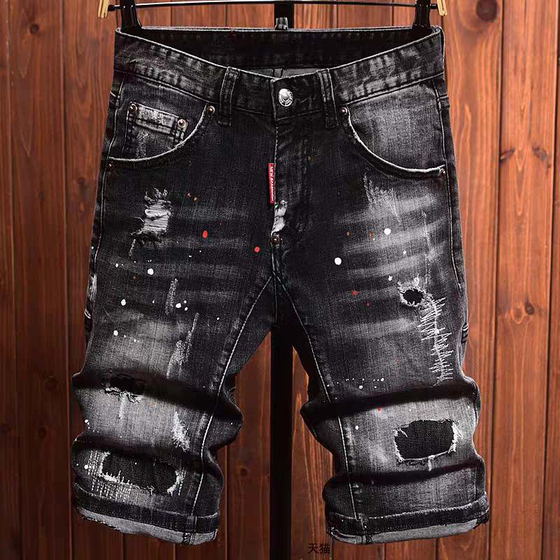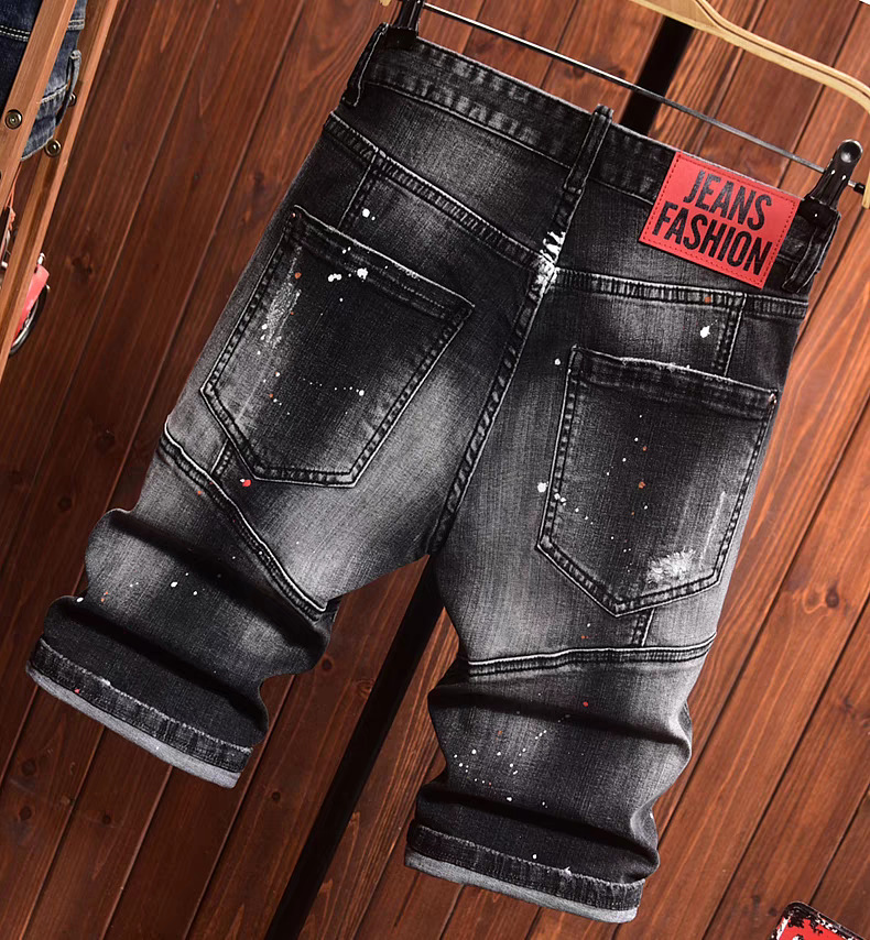 유럽과 미국의 거리 패션 릭 패치 데님 반바지 남성 페인트 낙서 5 점 패션 브랜드 맞춤형 청소년 중간 길이 바지