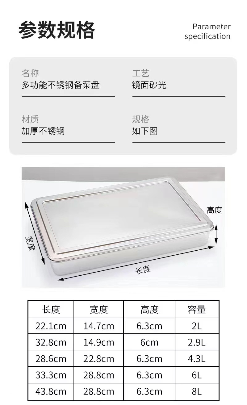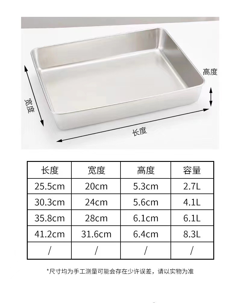 304 스테인레스 스틸 편평한 바닥 판 차가운 야채 판 김이 판을 찌르고 다용도 판 직사각형 티라미수 트레이
