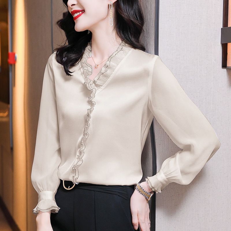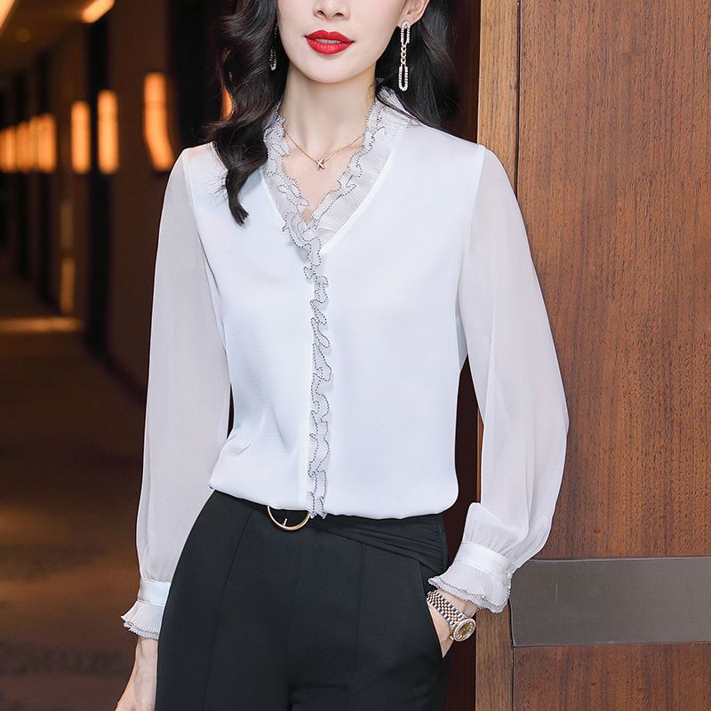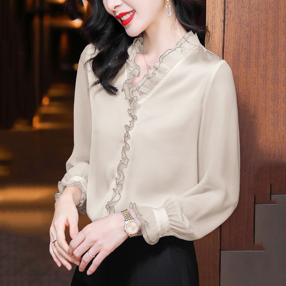 2024 봄과 가을 새로운 프랑스 스타일 셔츠 짧은 쉬폰 탑 여성용 긴팔 세련된 아름다운 서양식 러플 셔츠스토어 가기