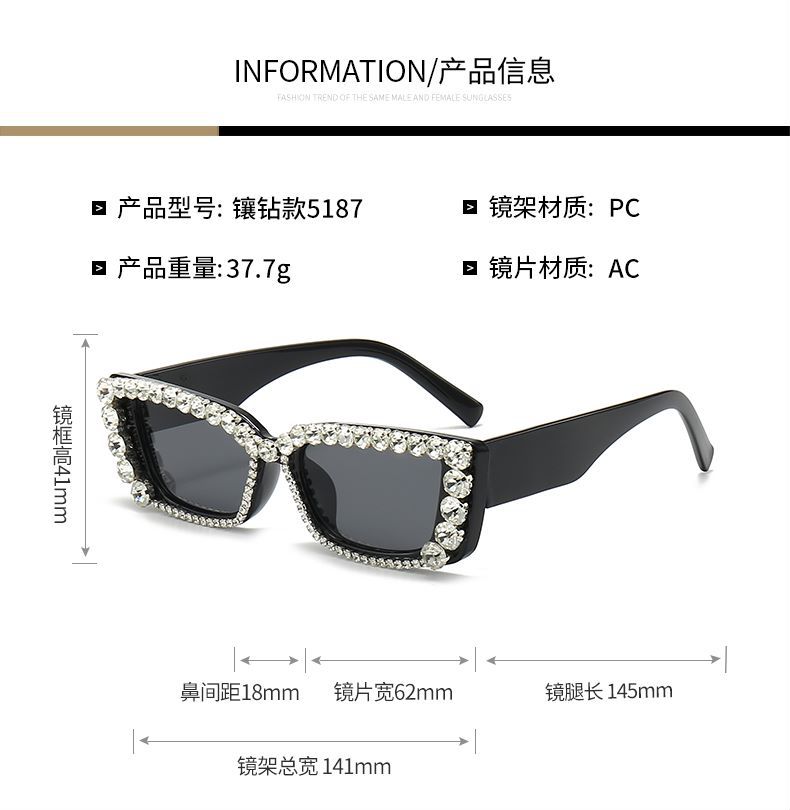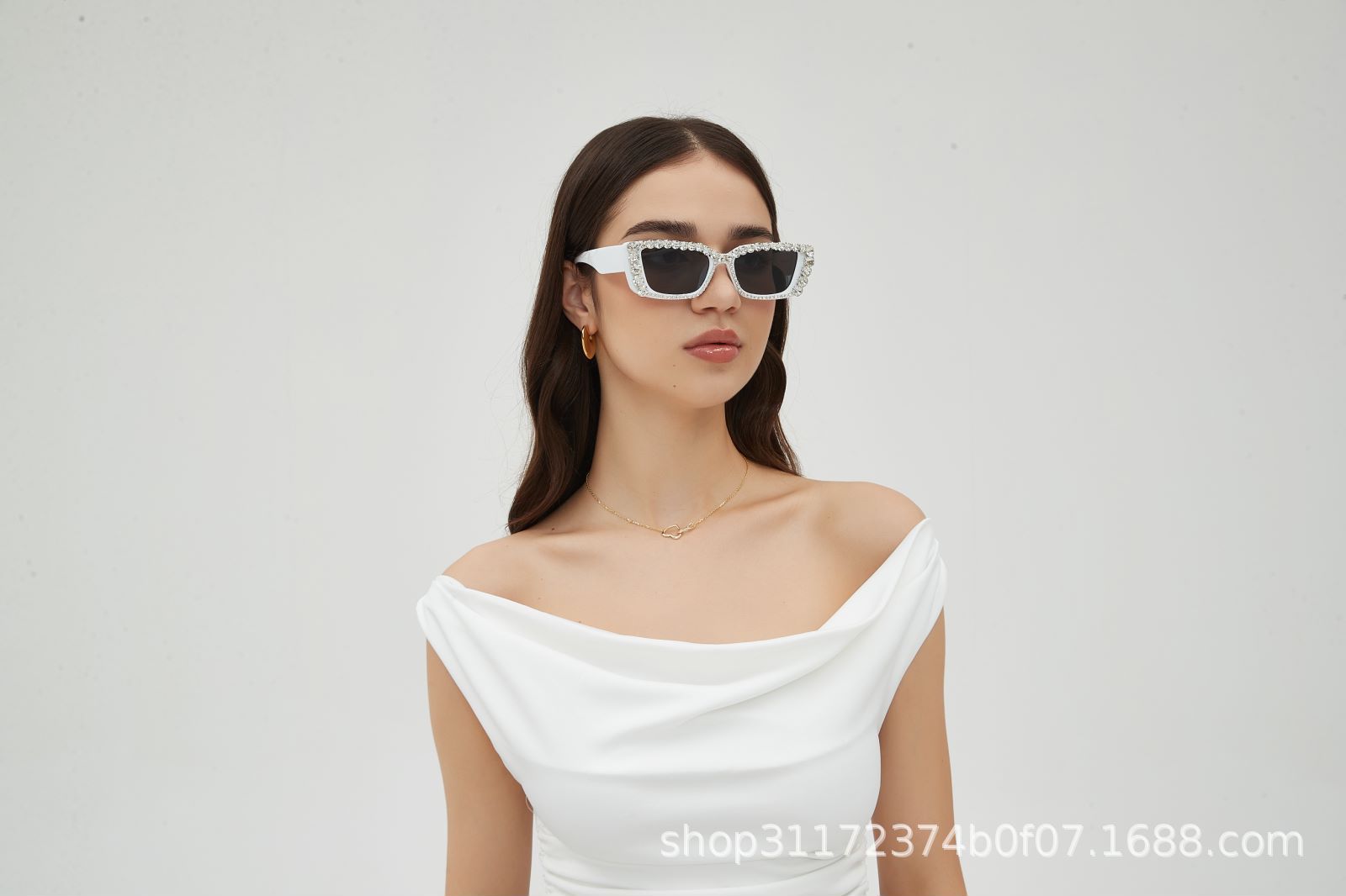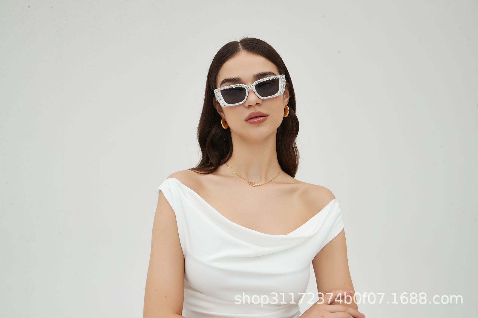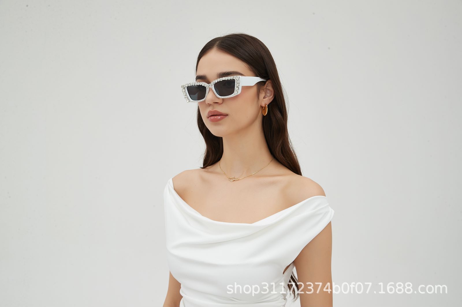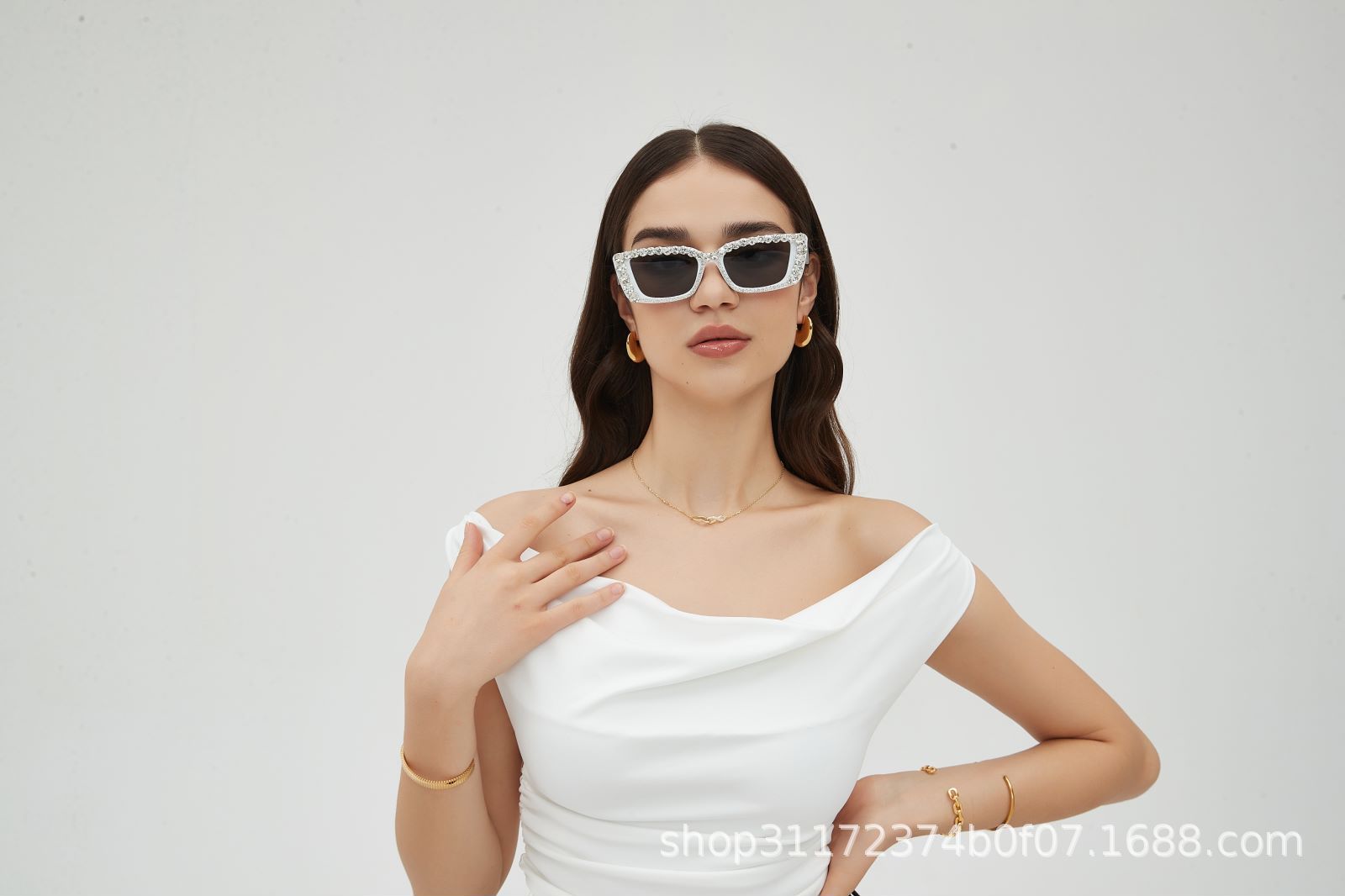 2024 스퀘어 풀 프레임 다이아몬드 패션 트렌드 선글라스 무대 공연 파티 선글라스 남성과 여성스토어 가기