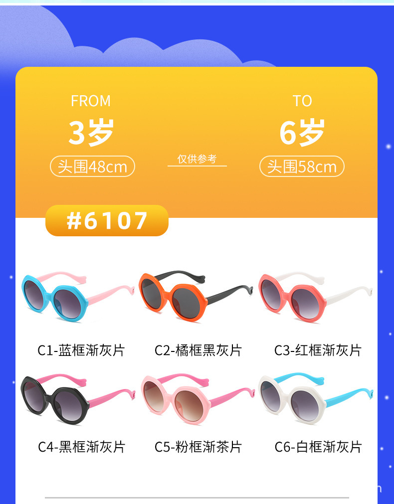 새로운 2-6 세 아기 장식 선글라스 트렌디 한 어린이 선글라스 어린이 귀여운 어린이 프로스트 플라스틱 pc6107스토어 가기