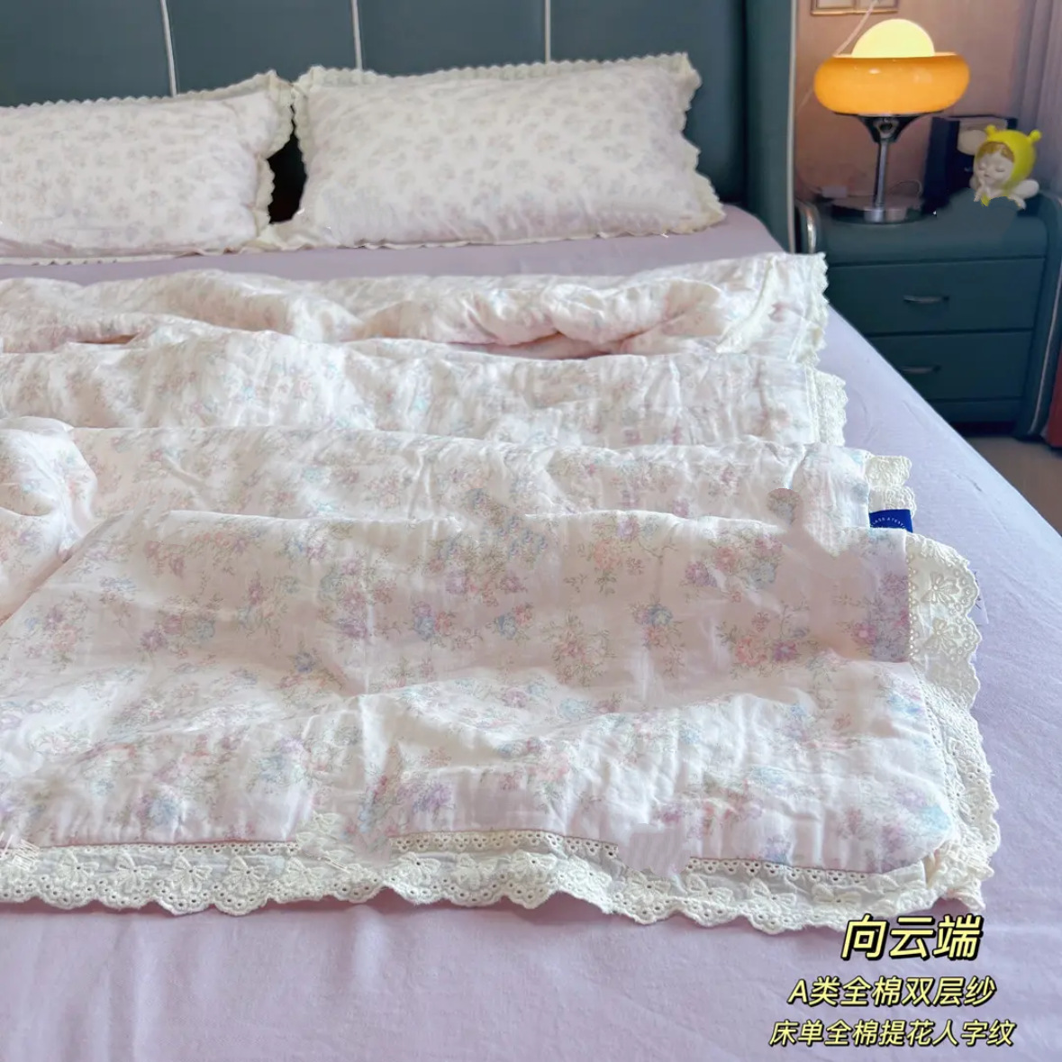 클래스 A 모성 및 유아면 이중층 원사 여름 시원한 만화 학생 주름진 가장자리 에어컨 이불 얇은 이불 기계 빨 수 있는 도매