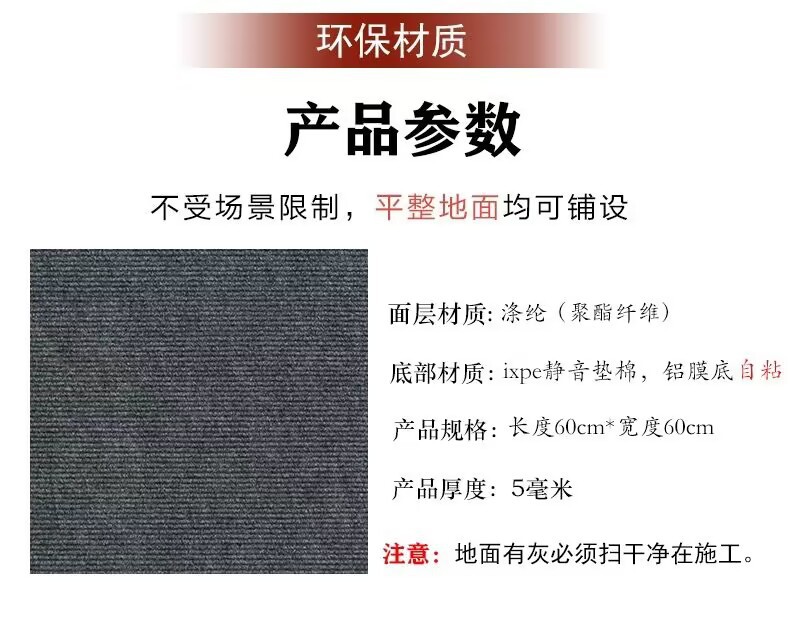 사각 스티칭 자체 접착 카펫 거실 먼지 방지 사무실 넓은 지역 전체 상점 사무실 상업용 바닥 매트