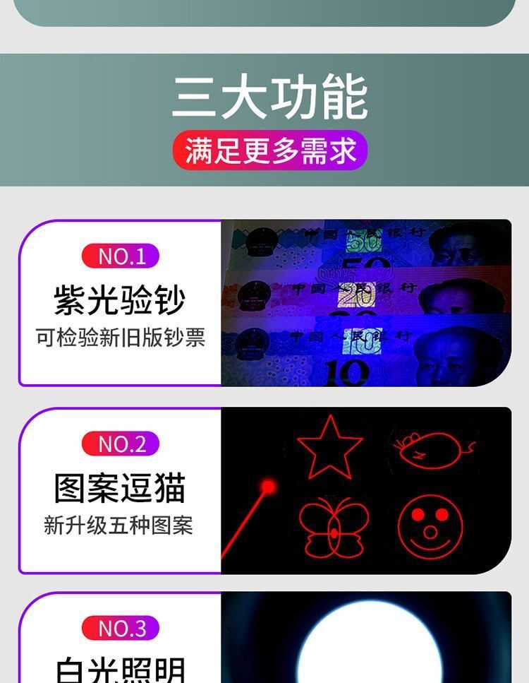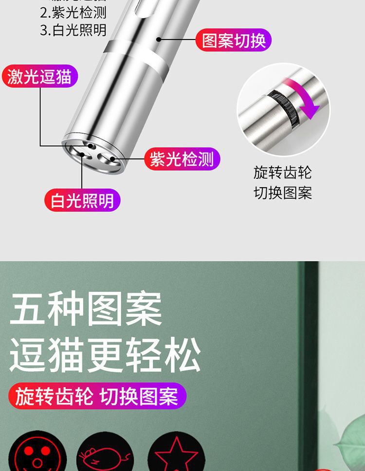产品功能: LED照明+多图案红外线激光+紫光照宠物癣
