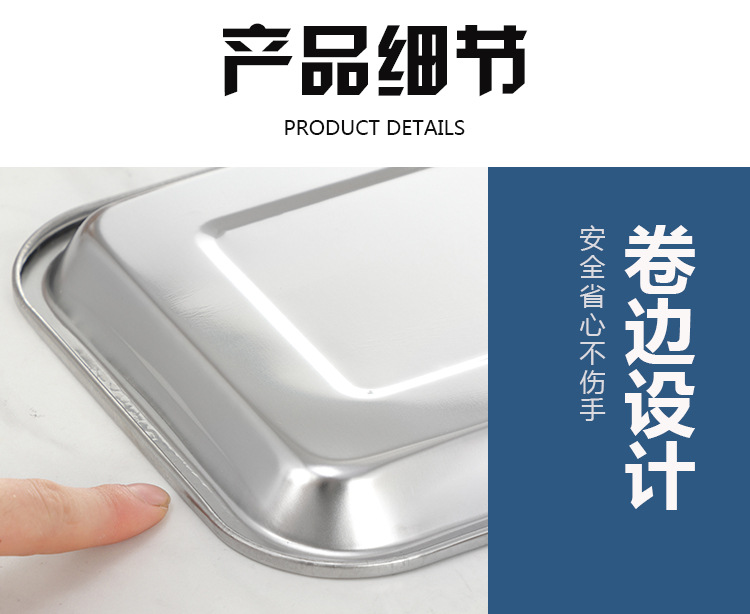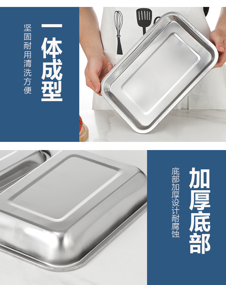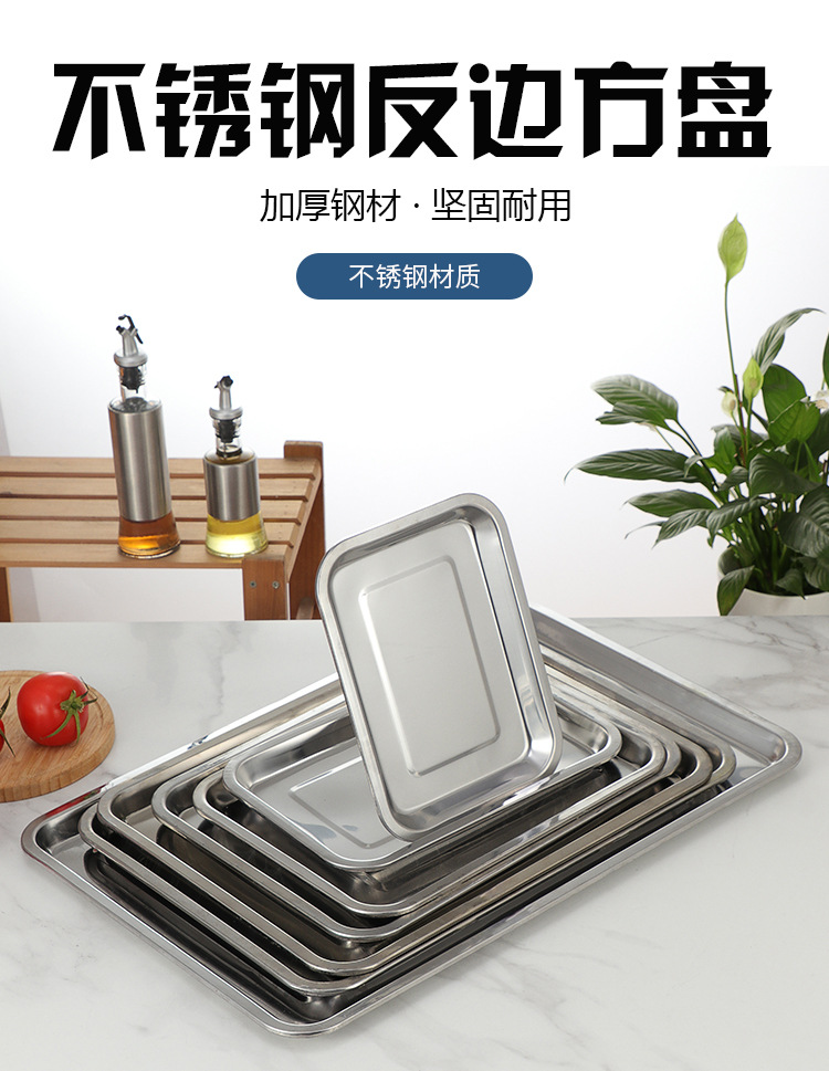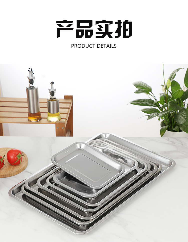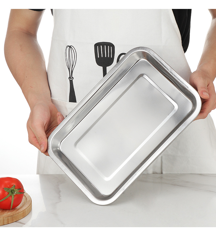 스테인레스 스틸 플랫 하단 스퀘어 플레이트 직사각형 찐 쌀 플레이트 바베큐 플레이트 디너 플레이트 만두 플레이트 스퀘어 분지 주방 트레이