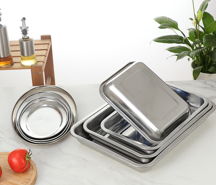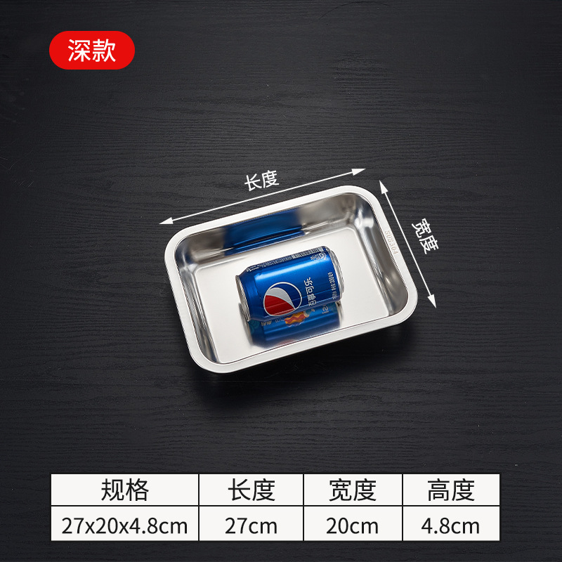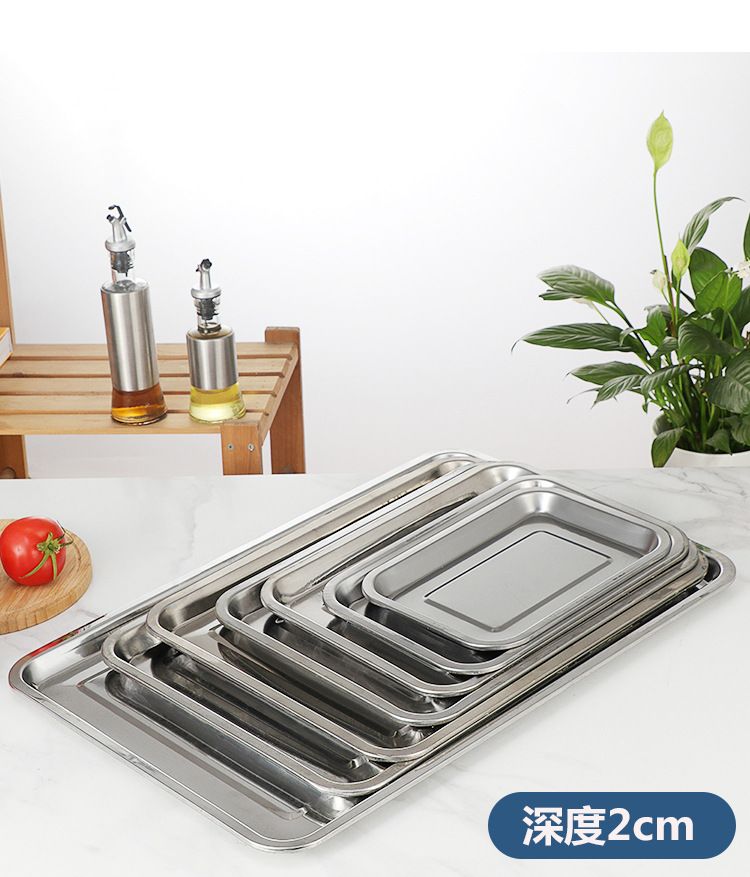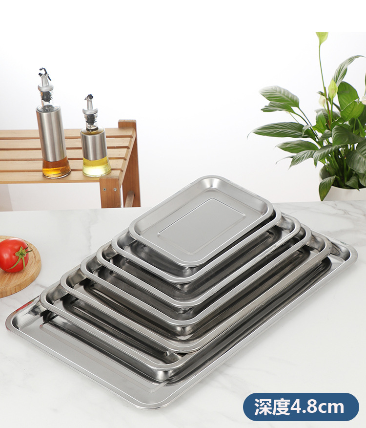 스테인레스 스틸 플랫 하단 스퀘어 플레이트 직사각형 찐 쌀 플레이트 바베큐 플레이트 디너 플레이트 만두 플레이트 스퀘어 분지 주방 트레이스토어 가기