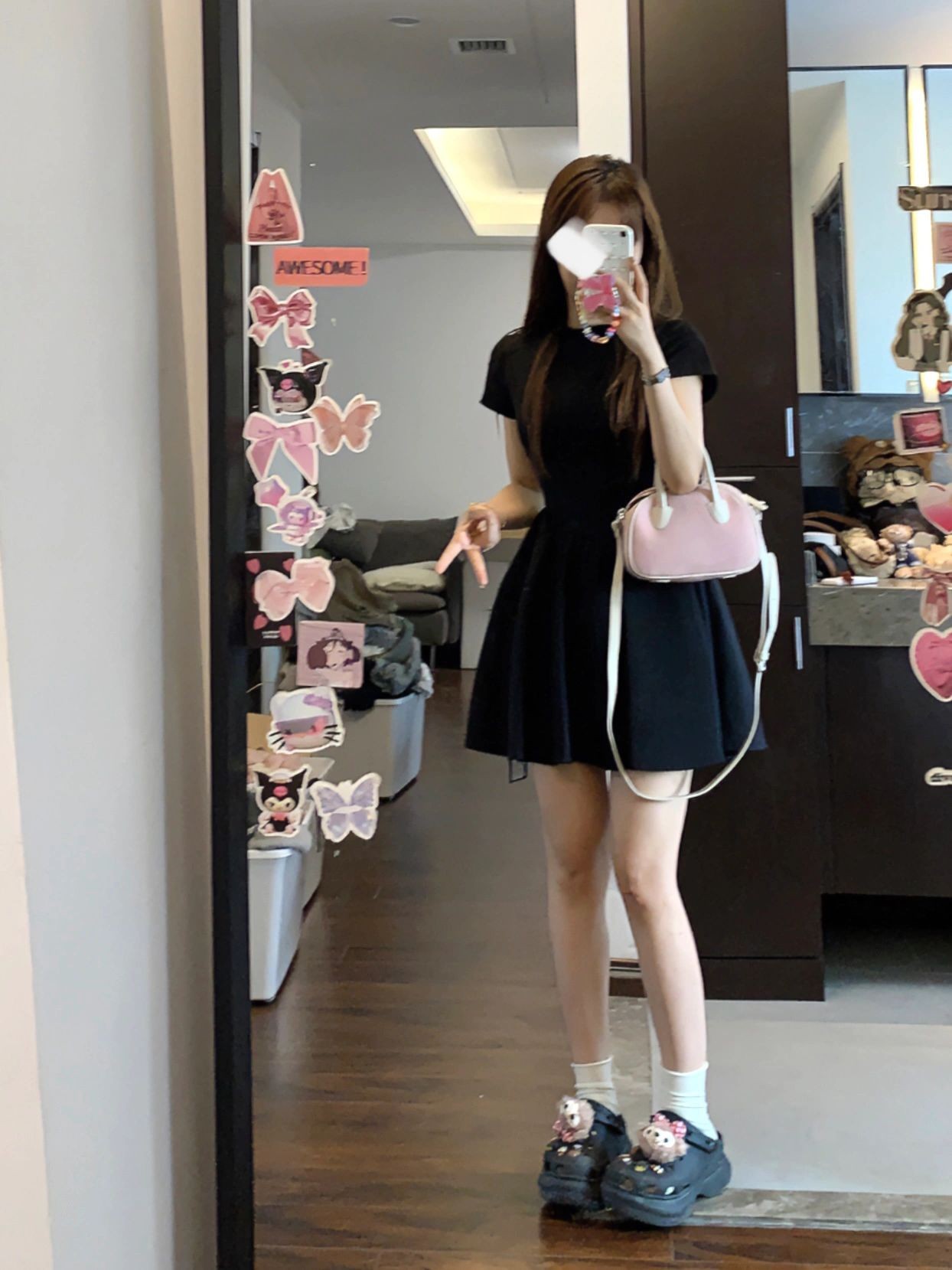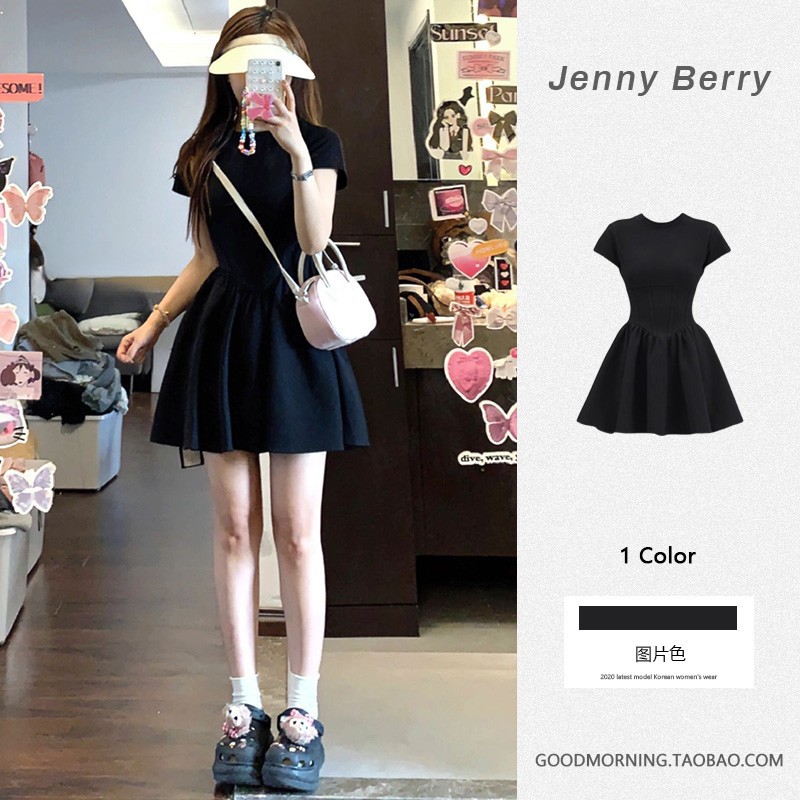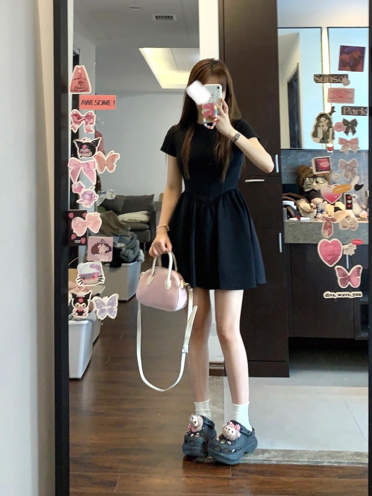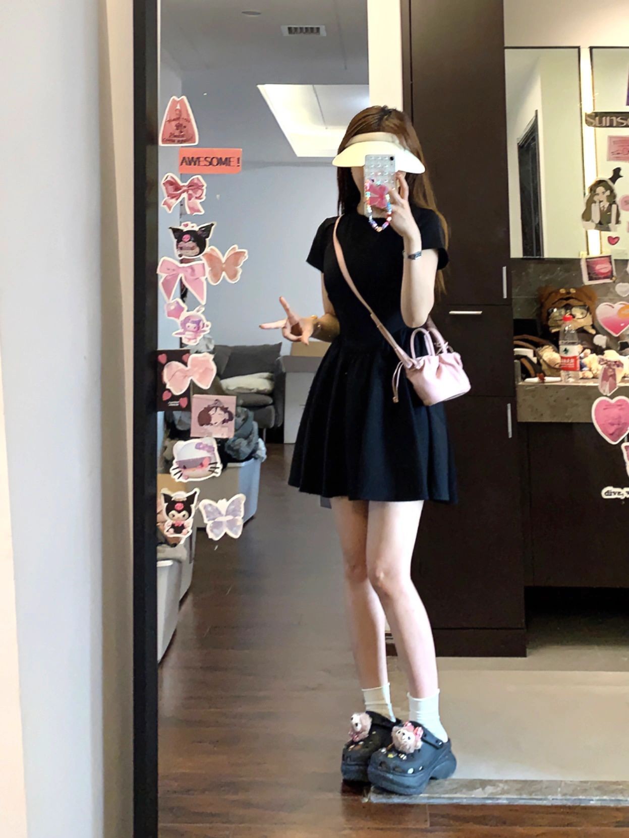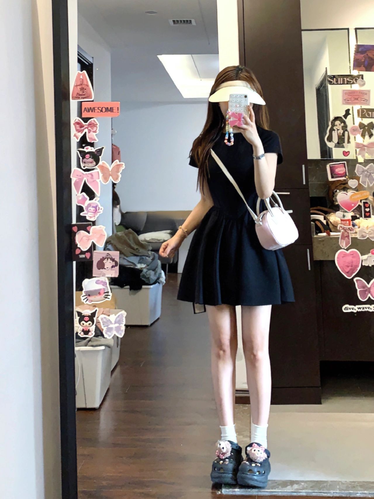 프랑스 레트로 헵번 스타일 슬림 핏 작은 검은 원피스 순수한 여름을위한 슬리밍 우아한 A 라인 치마를 원합니다