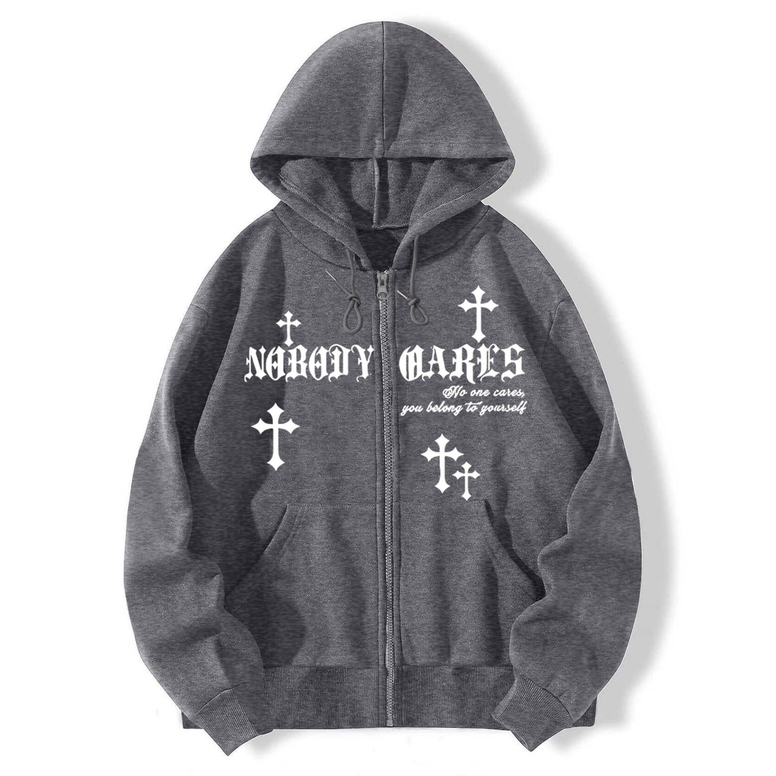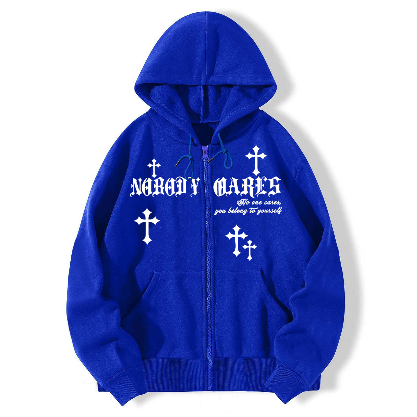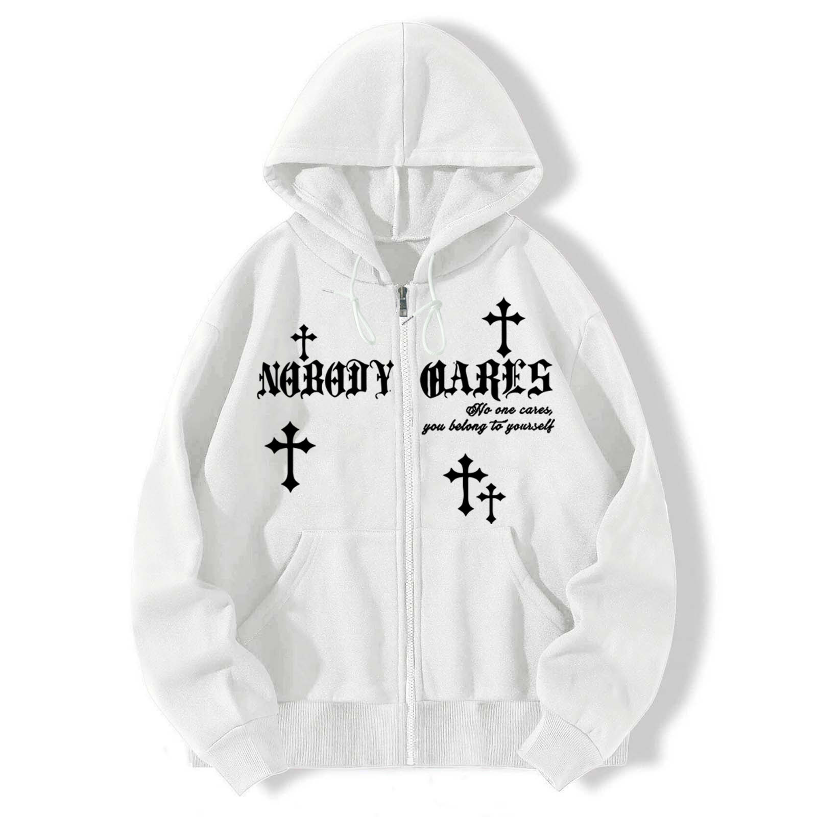 2024 국경 간 고딕 편지 인쇄 후드 스웨터 남성 봄과 가을 한국 스타일 남성 지퍼 스웨터