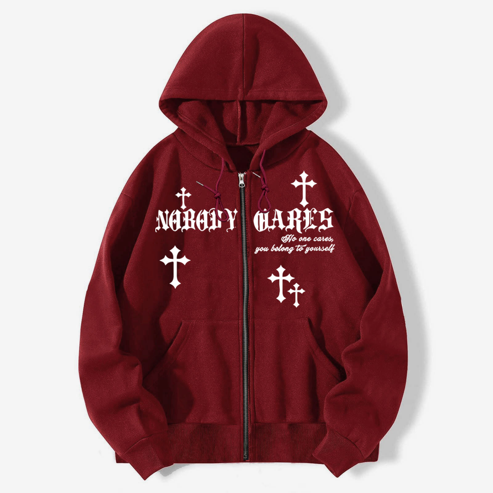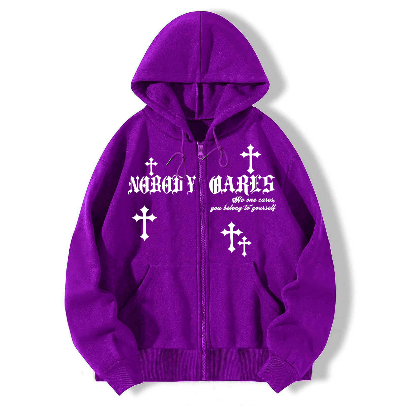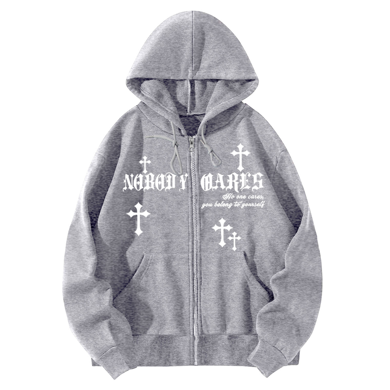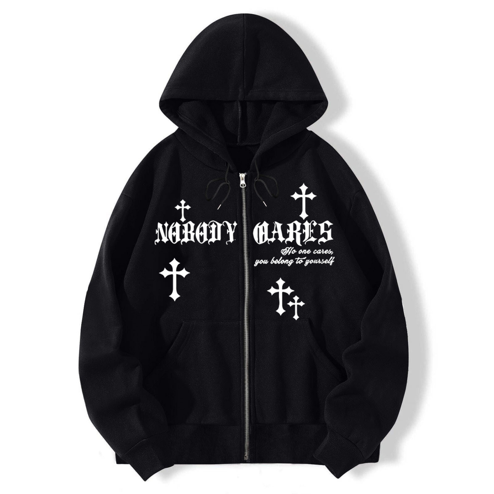 2024 국경 간 고딕 편지 인쇄 후드 스웨터 남성 봄과 가을 한국 스타일 남성 지퍼 스웨터