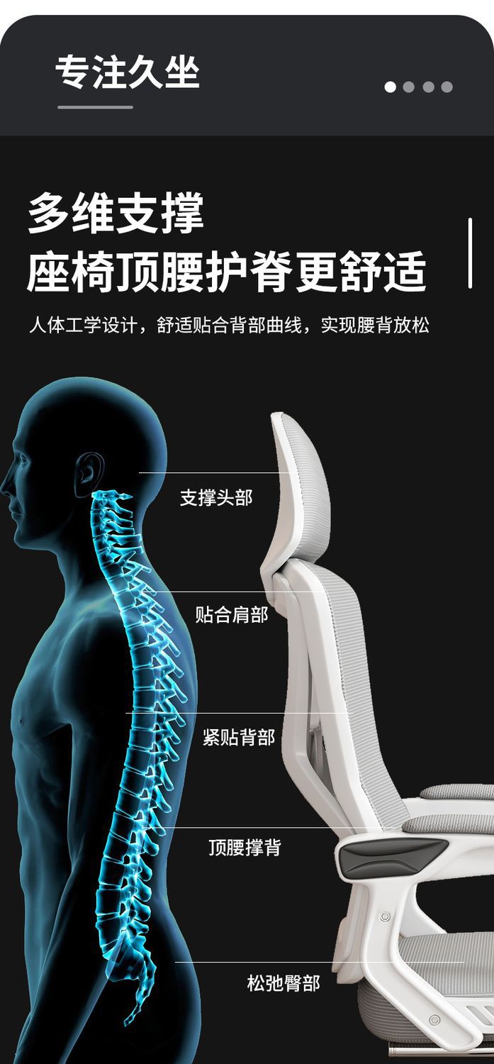 • 고급스러운 리클라이닝 + 화이트 백 그레이 메쉬 + 샤오야오